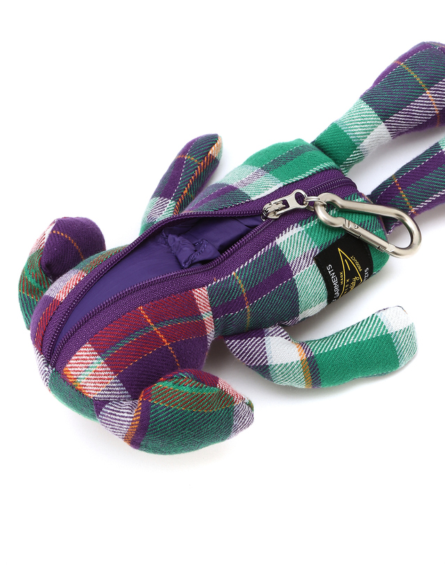 Игрушка выполнена из натуральной хлопковой ткани. Материал мягкий, приятный на ощупь, гипоаллергенный. Сумка — из прочной и долговечной нейлоновой ткани.