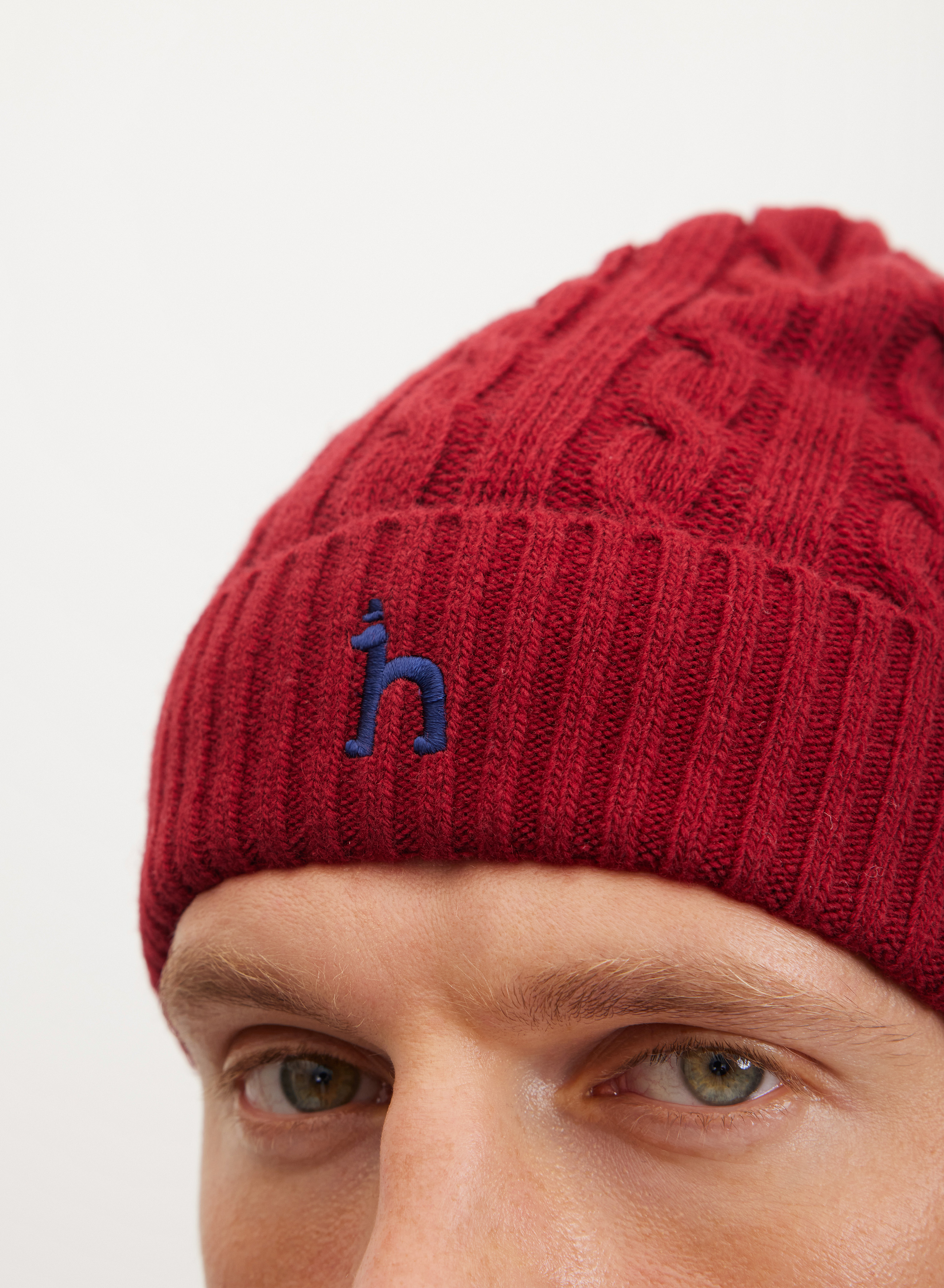 Стильная шапка с узором «косы». Объемная вязка придает мягкой поверхности пряжи динамичную текстуру и дополнительную толщину. Нижний край выполнен в технике гладкой вязки. Завершает стиль вышитый фирменный логотип бренда Hazzys.