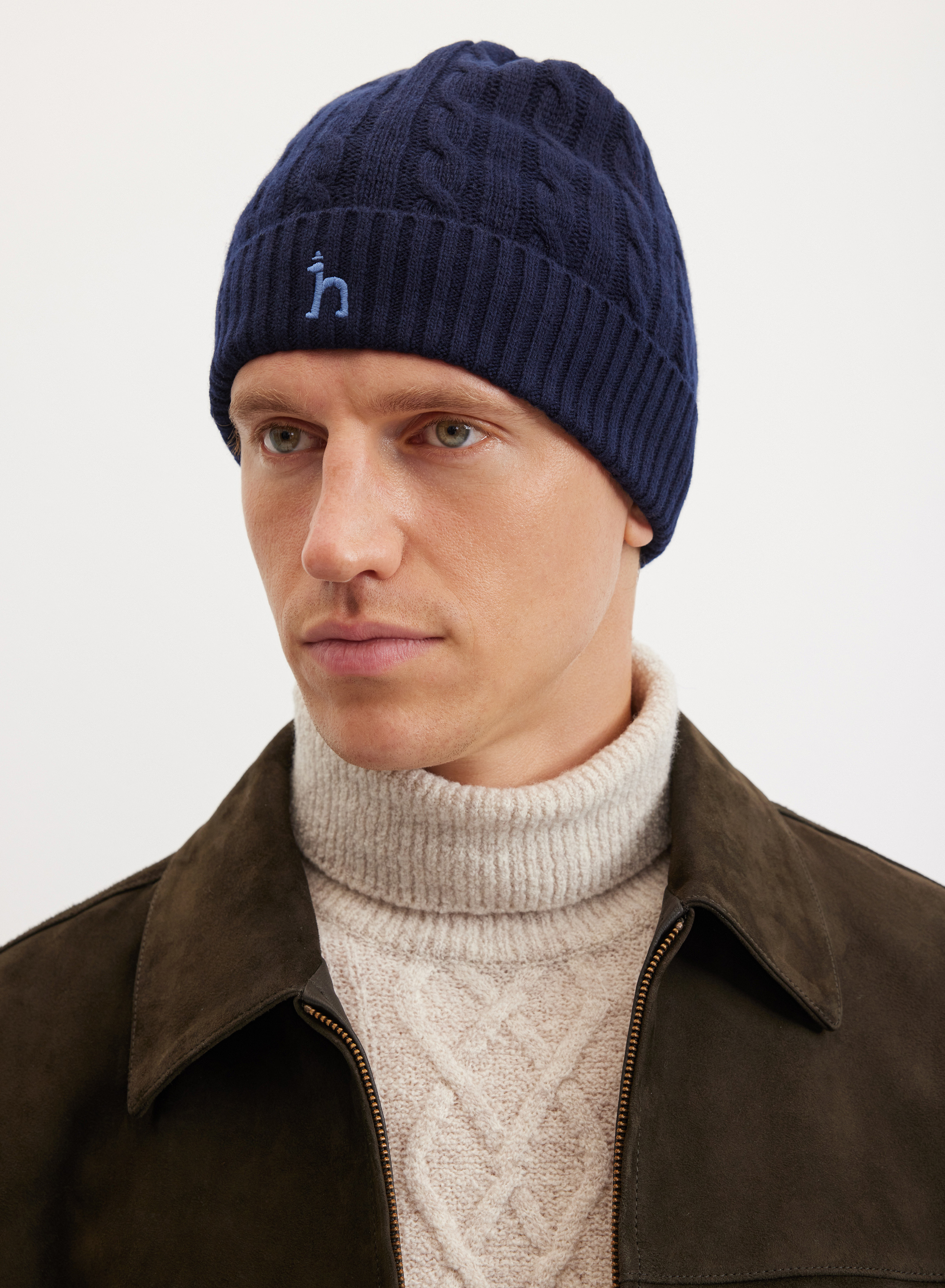 Стильная шапка с узором «косы». Объемная вязка придает мягкой поверхности пряжи динамичную текстуру и дополнительную толщину. Нижний край выполнен в технике гладкой вязки. Завершает стиль вышитый фирменный логотип бренда Hazzys.