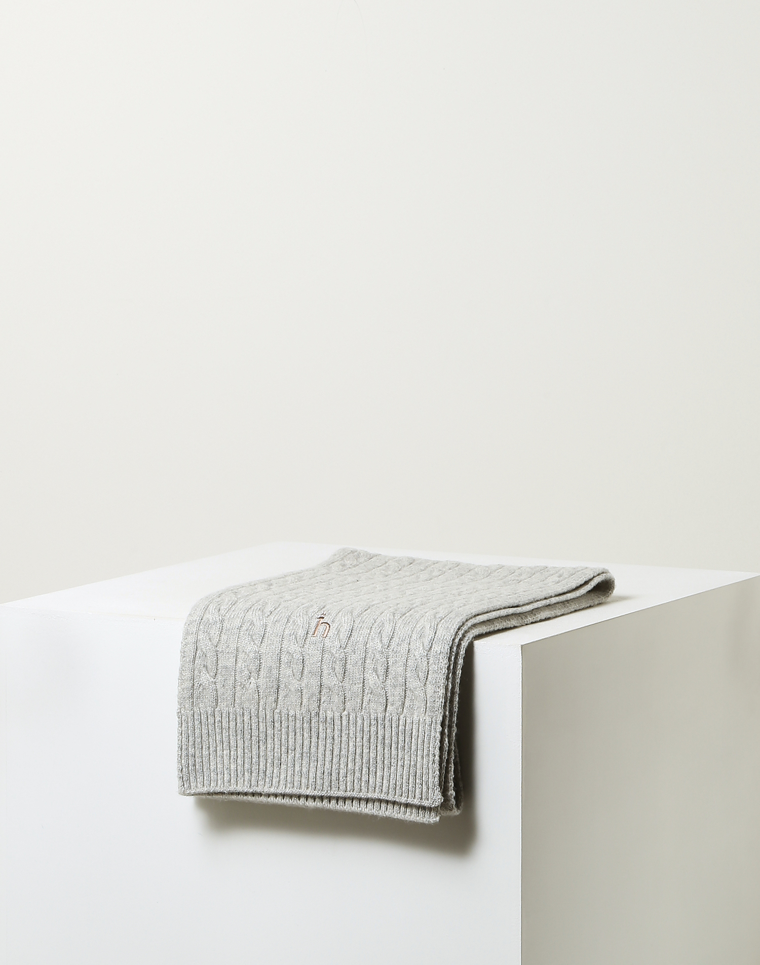 Широкий шарф свободно драпируется вокруг шеи и предлагает различные способы стильного завязывания. Рельефный узор «косы» в виде переплетающегося рисунка становится главным акцентом аксессуара, придает фактурность и глубину. Лаконичный внешний вид модели подчеркнут идеально обработанными краями на концах изделия.