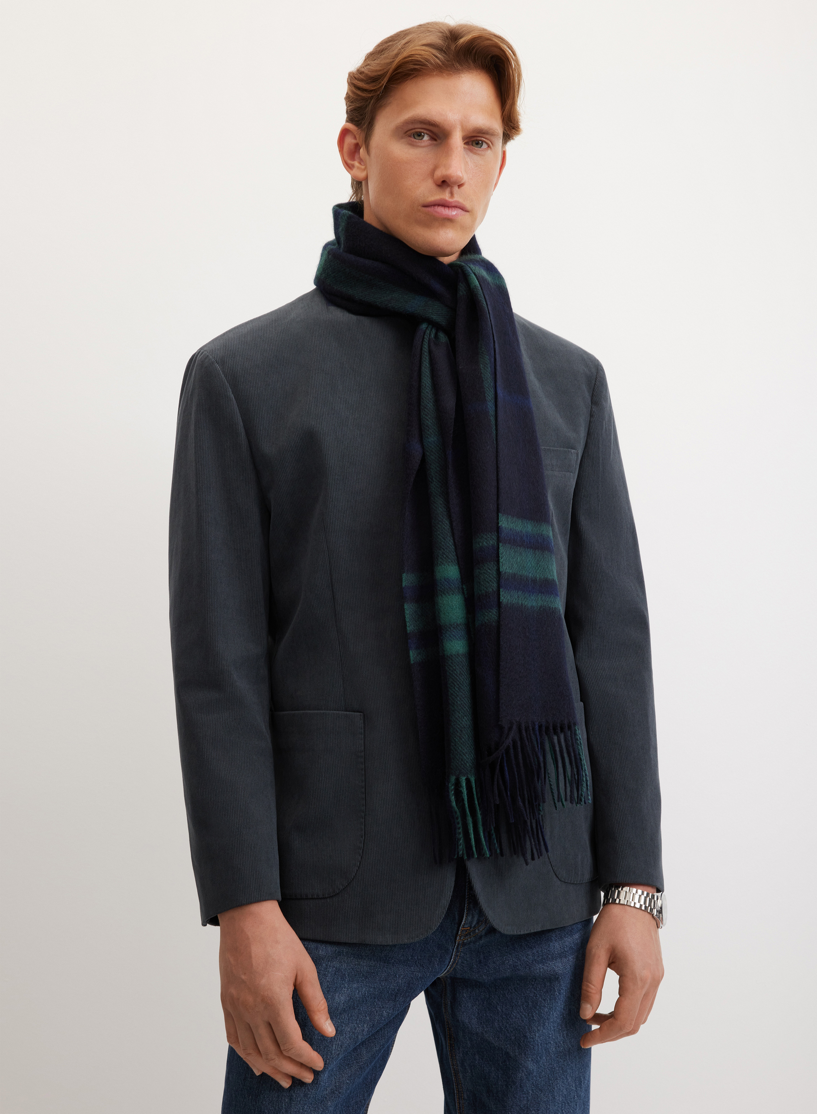 Широкий шарф свободно драпируется вокруг шеи, предлагая несколько способов стильного завязывания. Аксессуар эффективно защитит от холода зимой и послужит оригинальным украшением в межсезонье. Дополненный длинной бахромой, он привносит нотку элегантности и завершает образ.