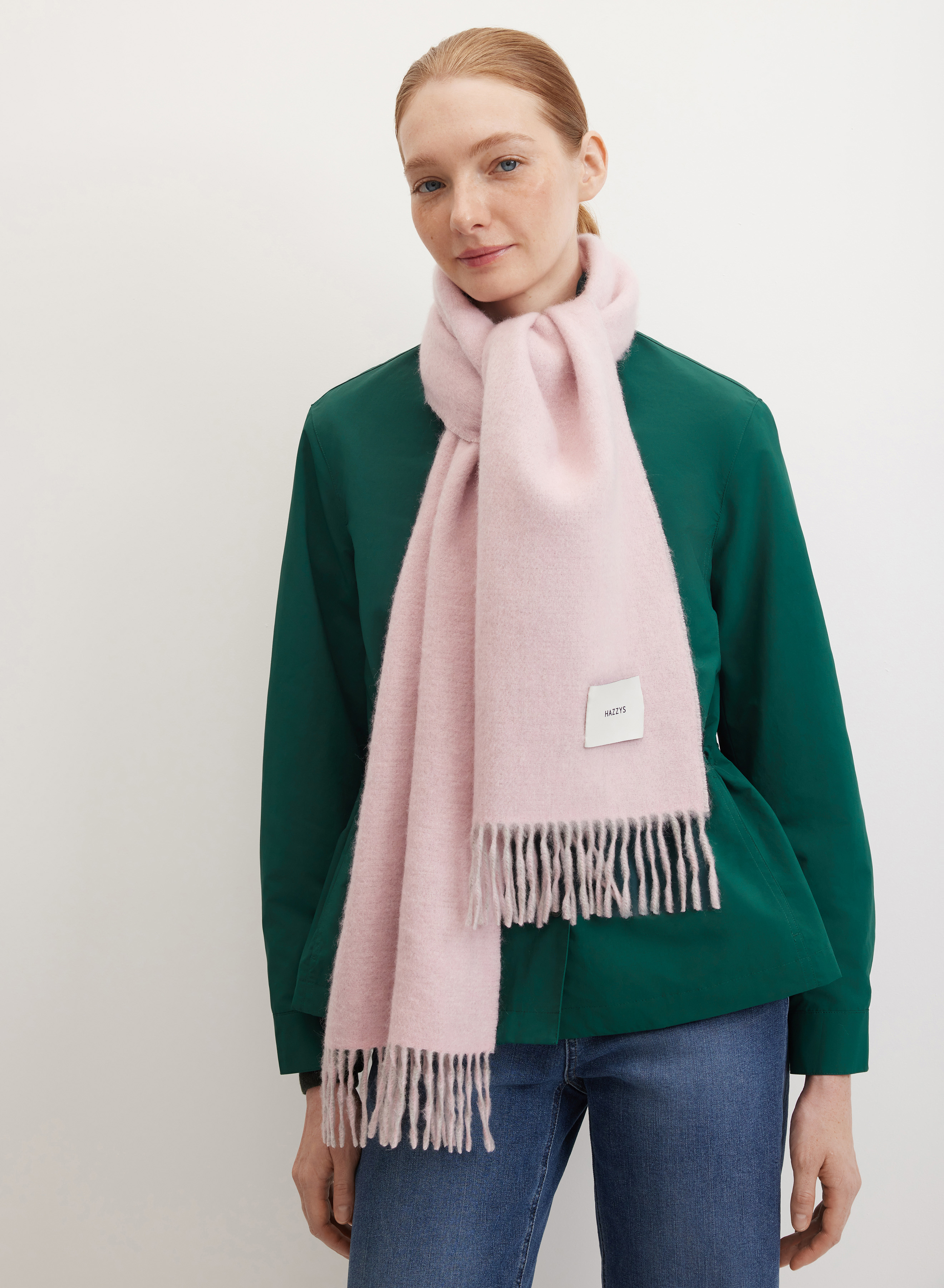 Аксессуар выполнен из смеси премиальной шерсти и кашемира. Окутывая нежностью и теплом, он поддерживает уют и создает хорошее настроение в непогожие дни.