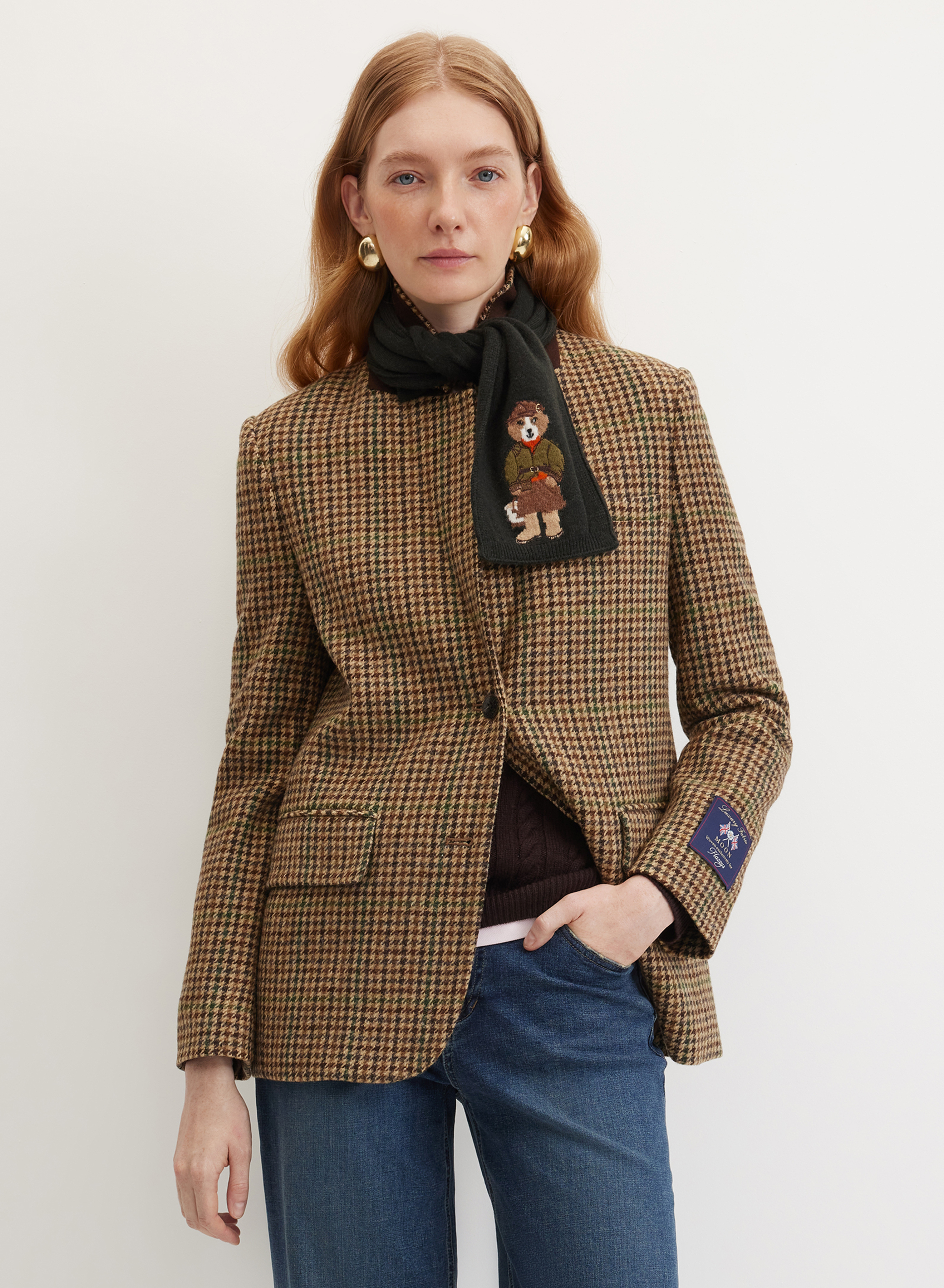 Шарф с широким кроем и прямыми краями. Средняя длина полотна позволяет моделировать разнообразные силуэты: от классического объемного узла до снуда или накидки-пелерины. Завершает образ вышитый логотип Hazzys — акцентная деталь, подчеркивающая наследие бренда.
