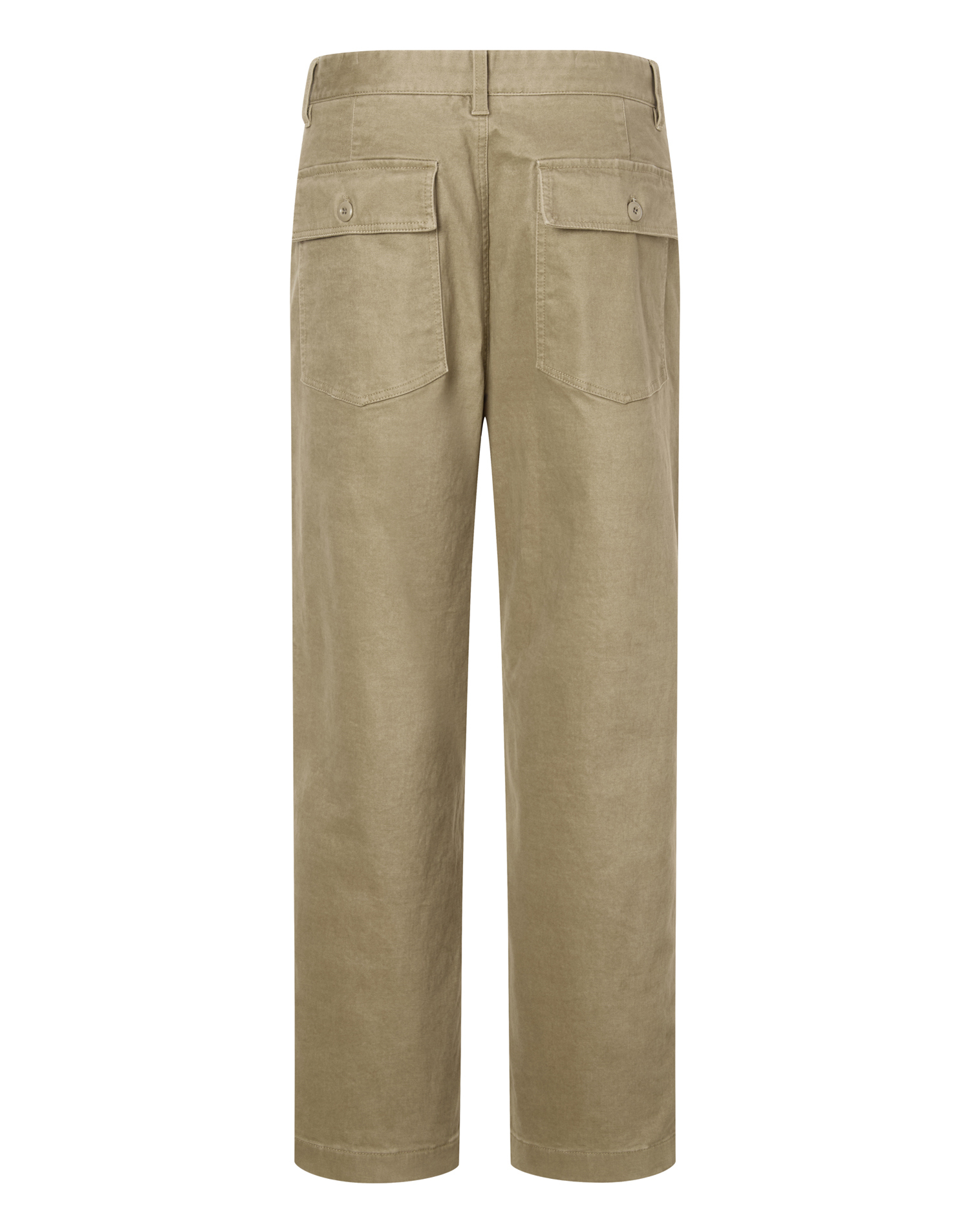 Легкие прямые брюки в стиле casual для активного отдыха и городских будней. Застегиваются на аккуратную молнию в центральном переднем шве и пуговицу. Притачной пояс дополнен шлевками под ремень. Крупные накладные карманы в передних боковых швах и накладные карманы с клапаном на пуговице в области ягодиц добавляют функциональности и вносят современный акцент.