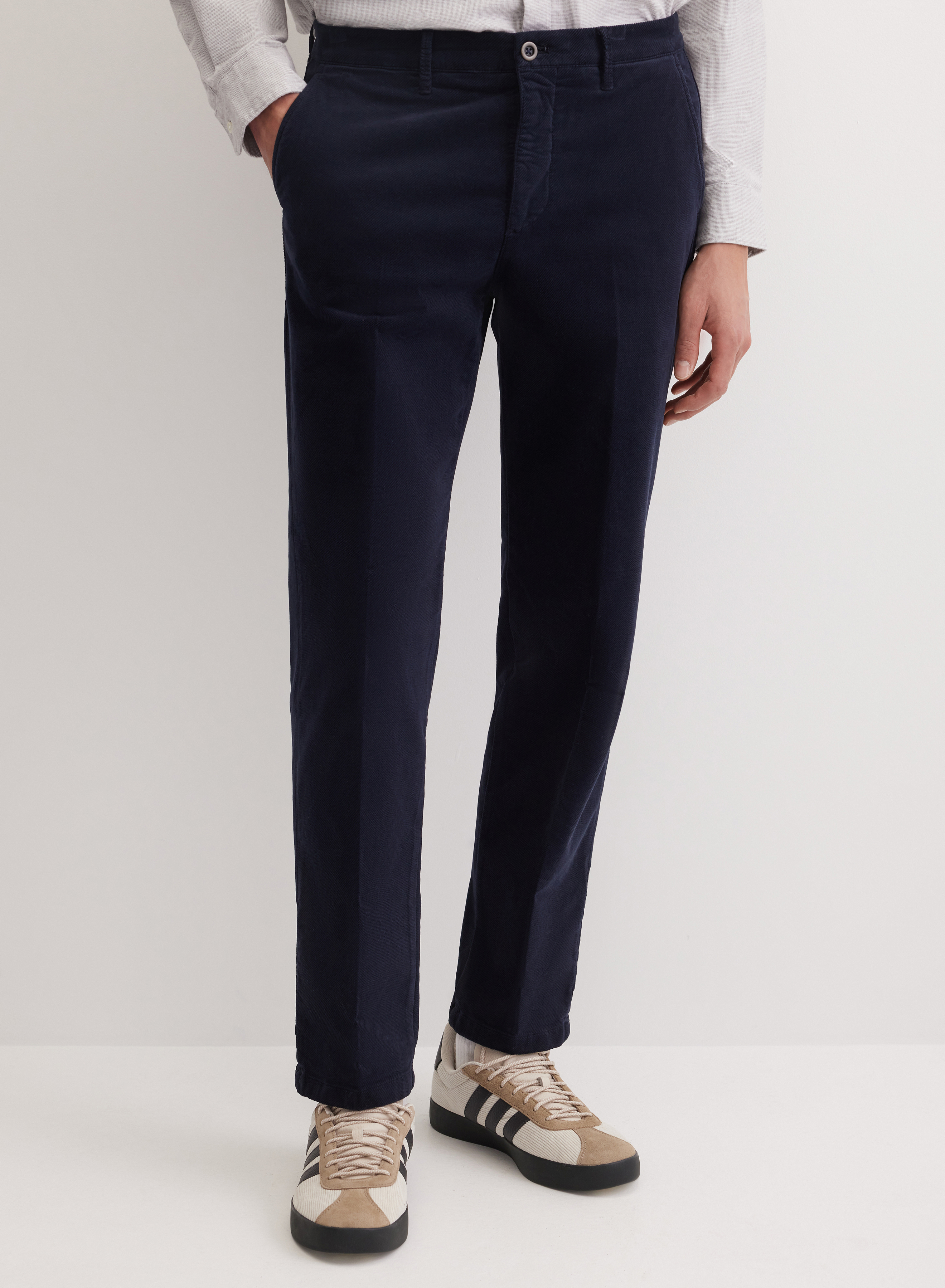 Выполнены из эластичной ткани на основе хлопка, что обеспечивает идеальную посадку по фигуре. Материал обладает высокой воздухопроницаемостью и сохраняет форму в течение всего дня. Мягкая текстура ткани приятна к телу и гарантирует комфорт.