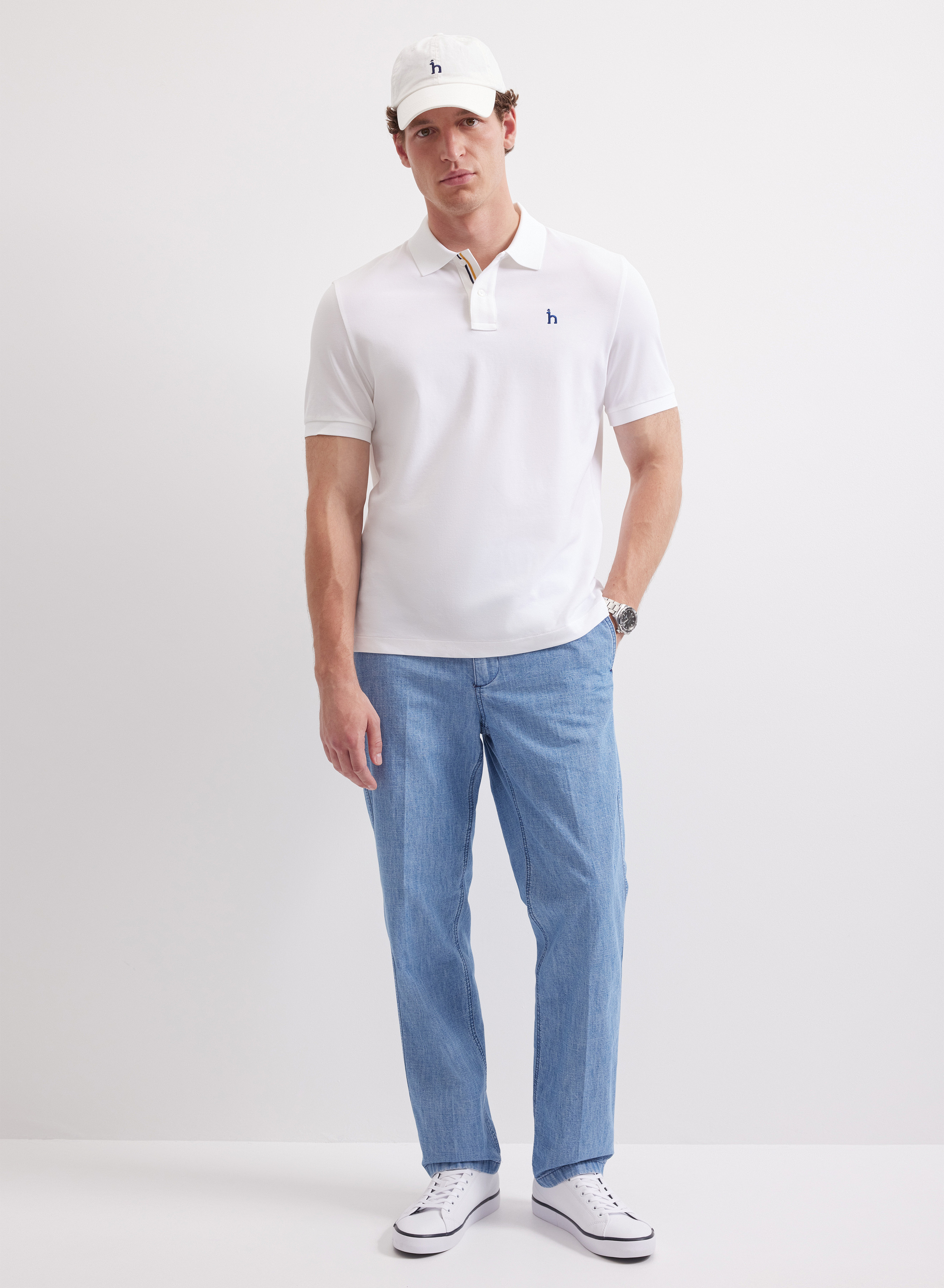 Классические джинсы прямого кроя с контрастной строчкой. Усиленные швы с контрастной строчкой, повышающей износостойкость. Застежка на пуговицу и потайную молнию с гульфиком обеспечивает аккуратную посадку, а четыре кармана (два боковых и два задних) добавляют практичности. Шлевки для ремня позволяют регулировать посадку по фигуре.