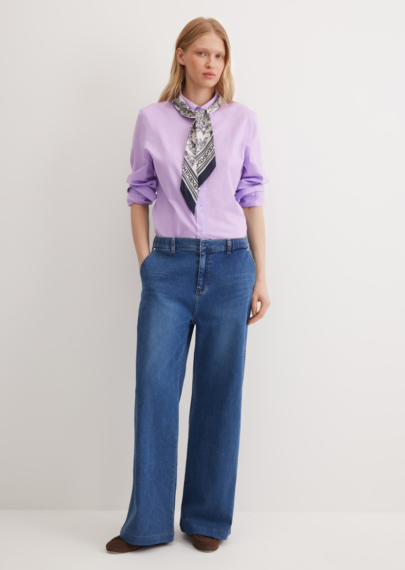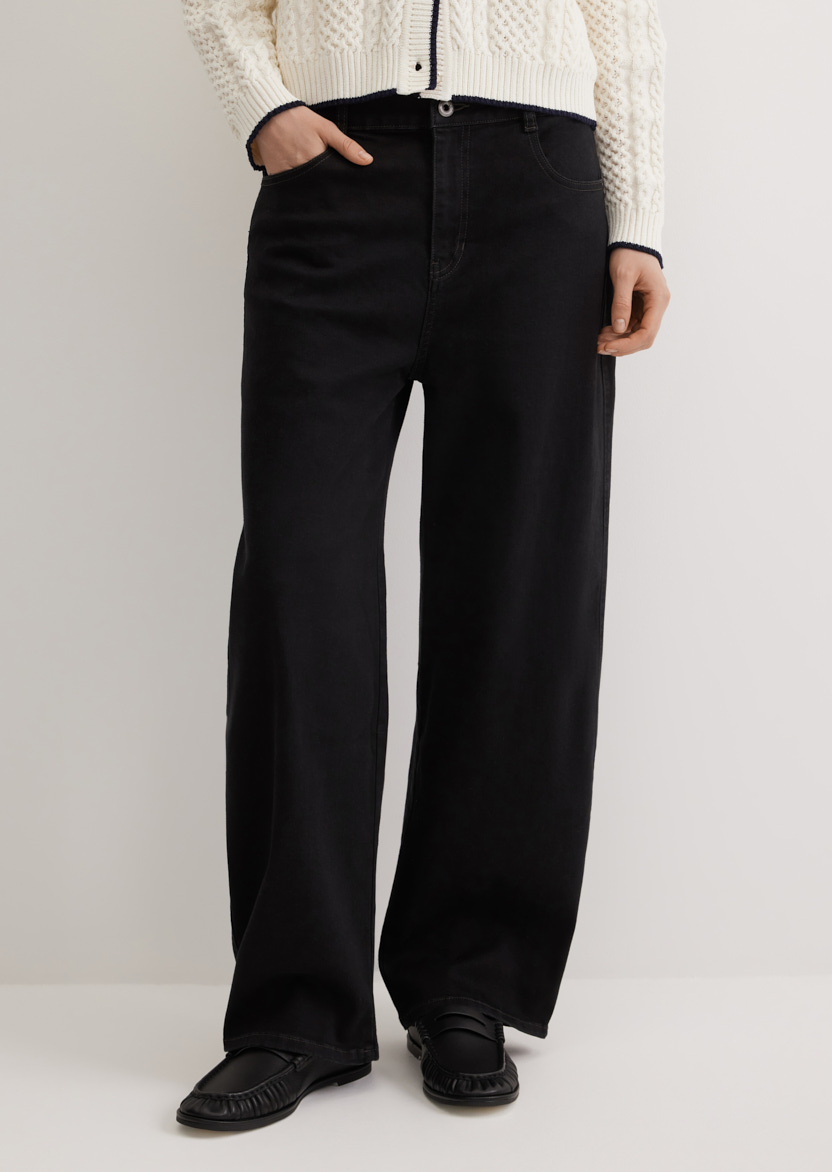 Прямые широкие джинсы с мягкой резинкой на поясе