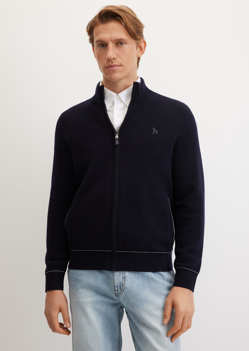 Шерстяной кардиган на молнии с вышитым логотипом бренда