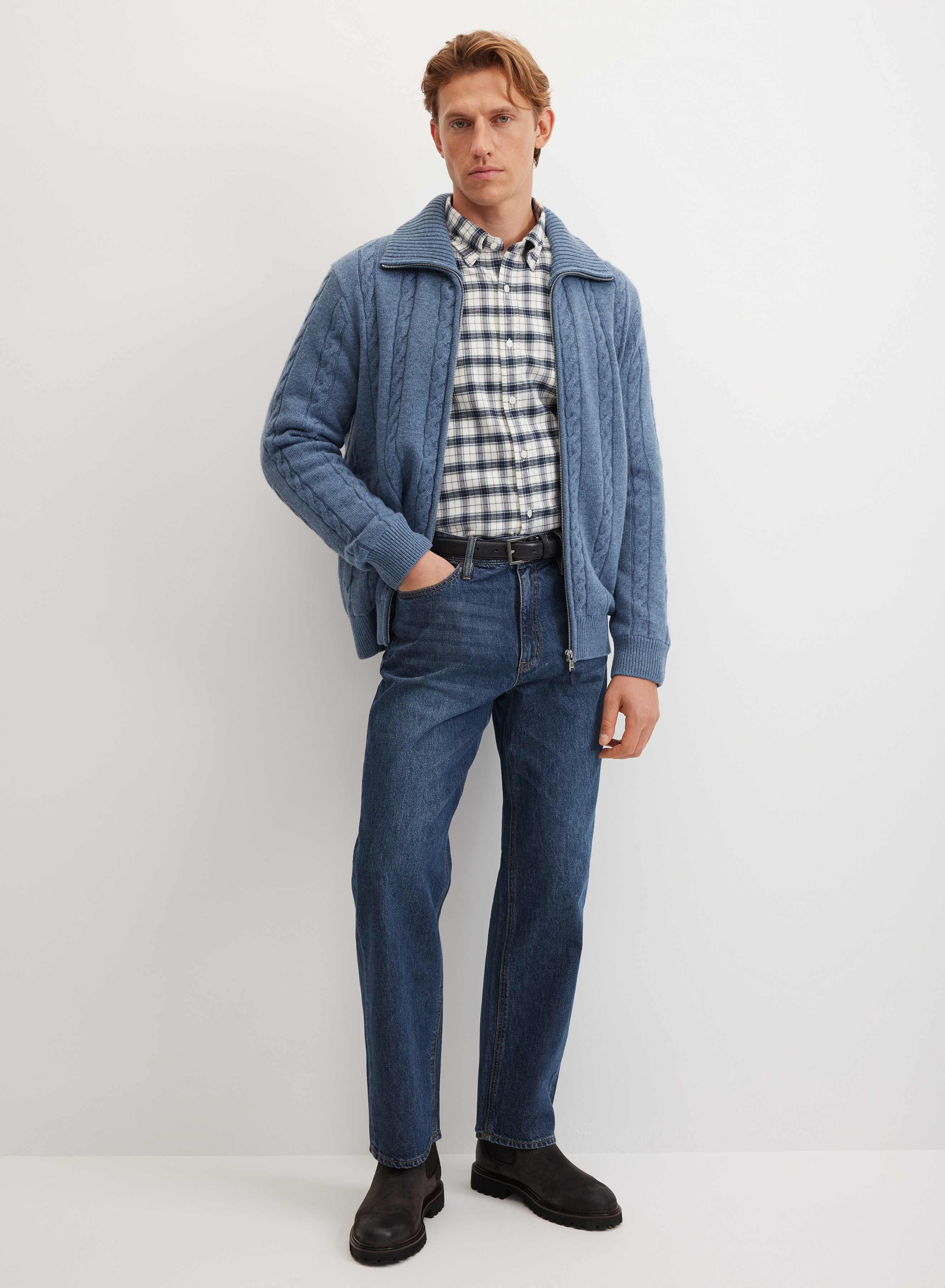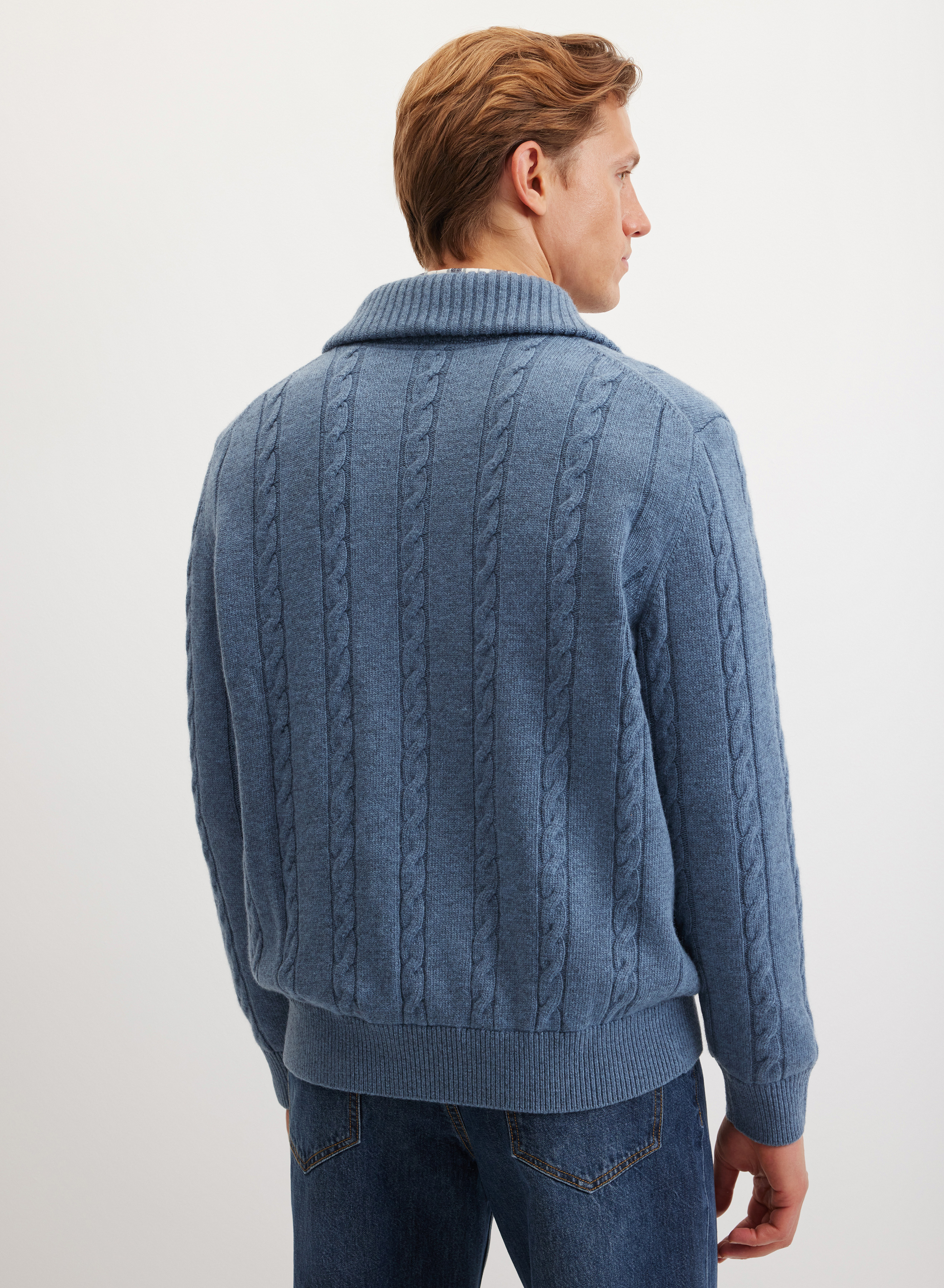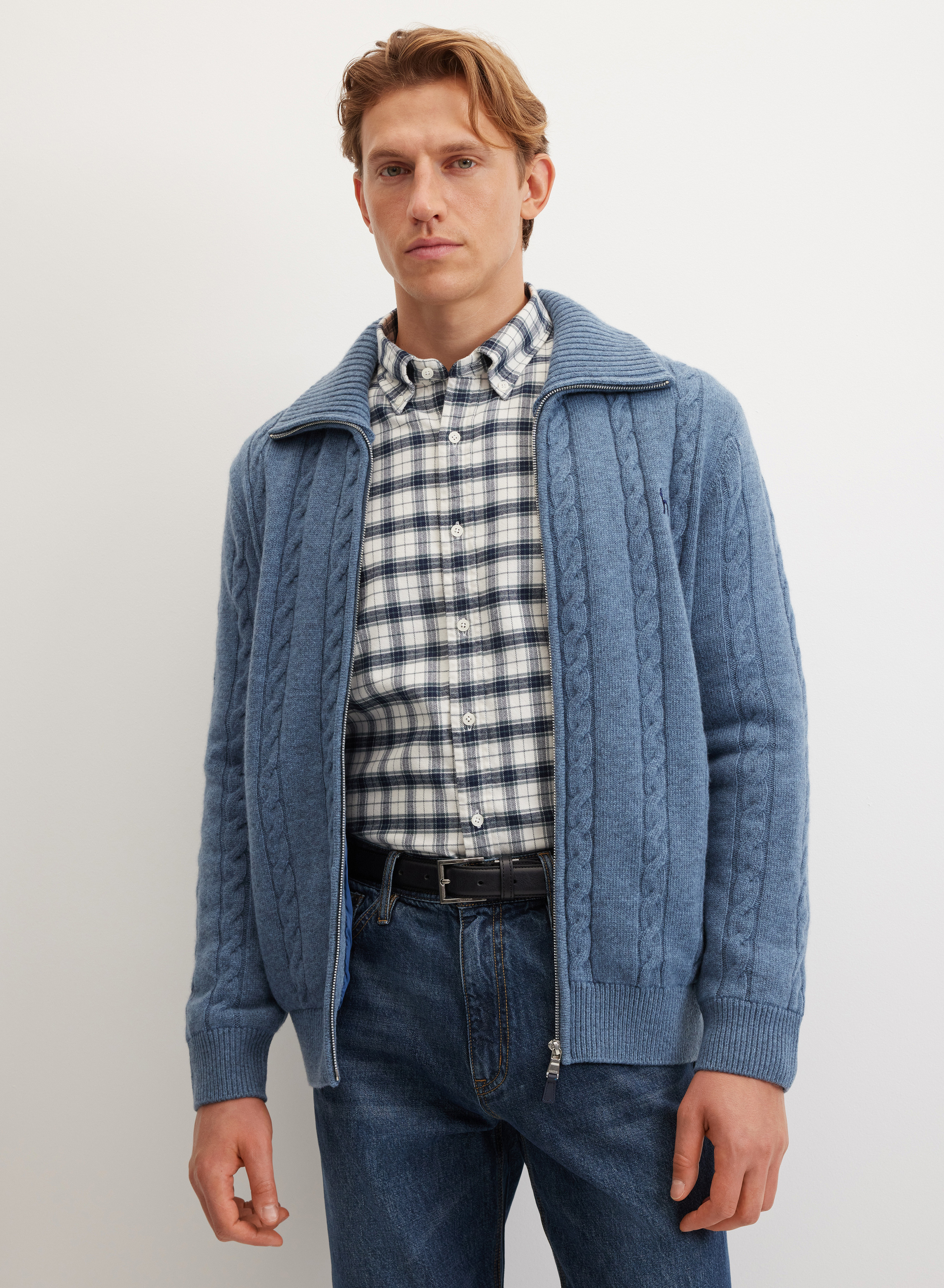 Кардиган прямого кроя с длинными рукавами обеспечивает комфортную посадку и свободу движений. Застежка-молния по всей длине позволяет регулировать степень открытости в зависимости от погоды. Изделие дополнено объемными узорами-косами, которые создают рельефную поверхность.