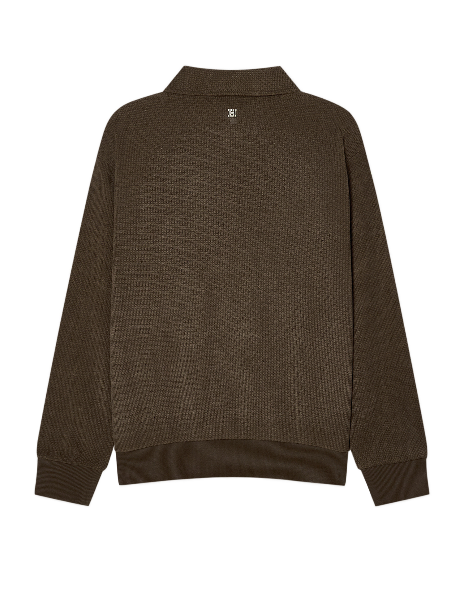 Джемпер свободного кроя со слегка спущенной линией плеч. Эластичные края по горловине, манжетам и низу обеспечивают точную посадку по фигуре. Высокий классический воротник в тон изделия. Металлическая застежка-молния до груди защищает от ветра и добавляет акцент изделию.