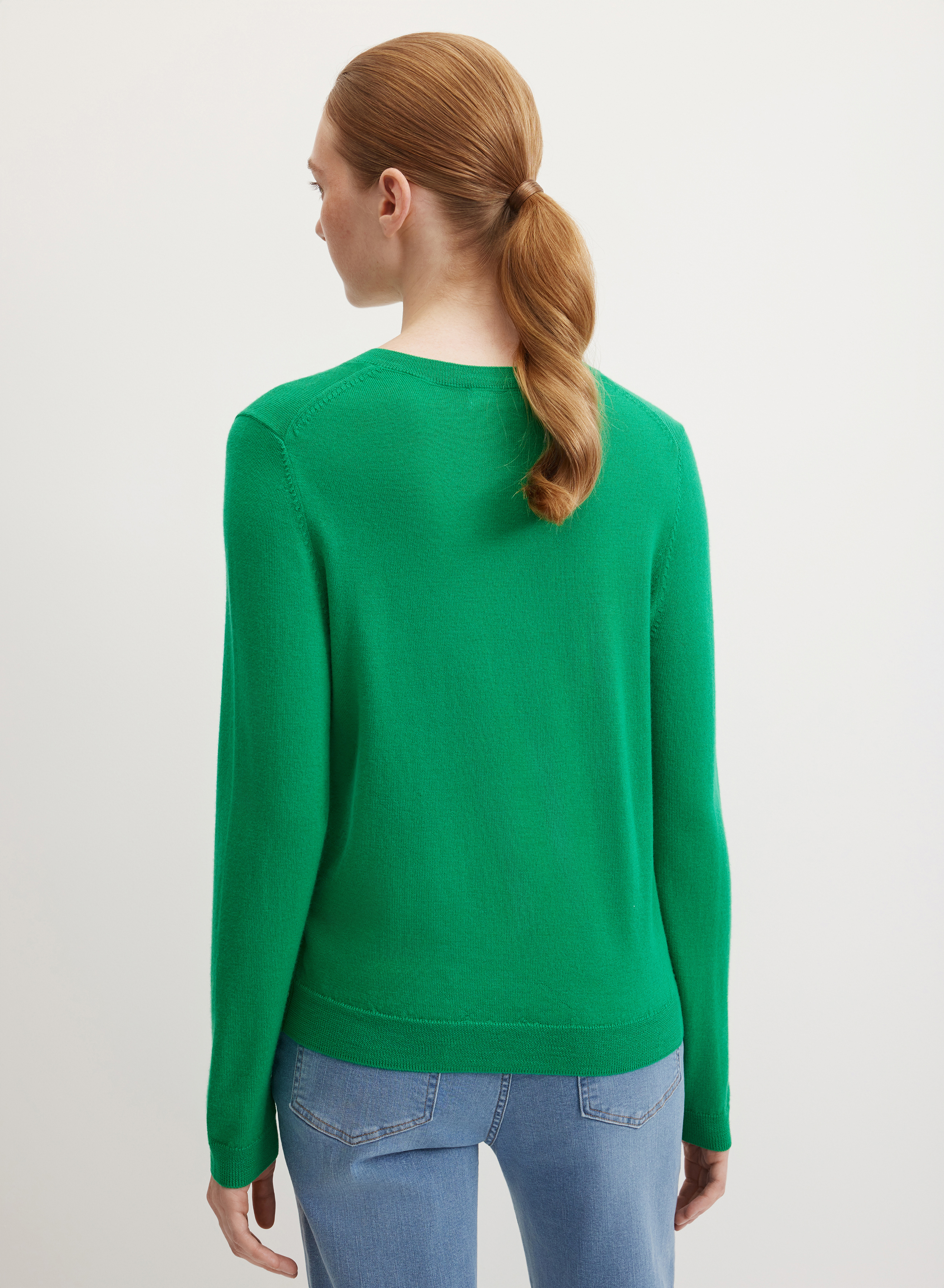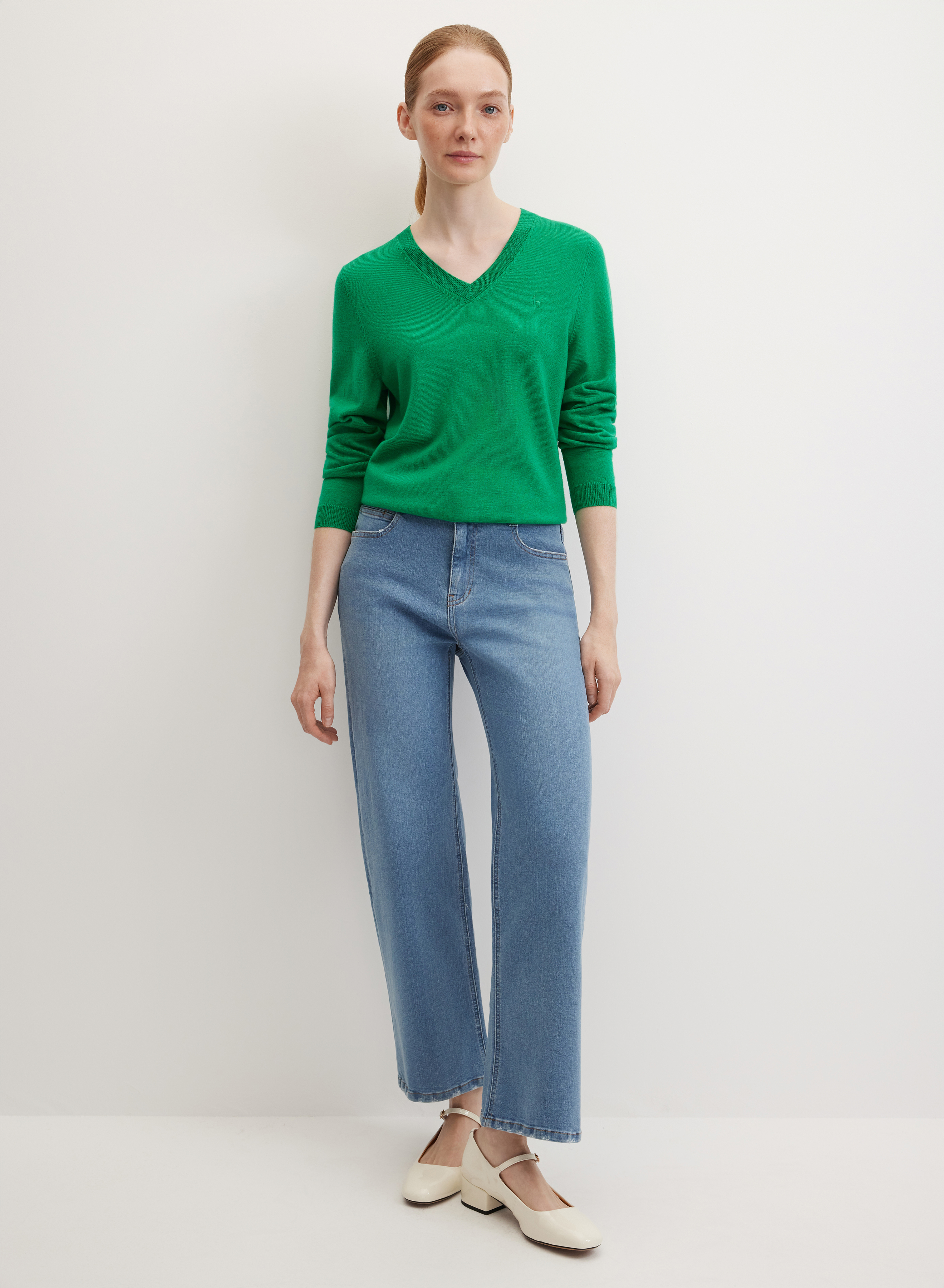 Элегантный удлиненный кардиган до середины бедра. Отличается лаконичным дизайном без застежки, что создает чистые линии и подчеркивает качество кроя. Глубокий V-образный вырез визуально вытягивает силуэт, а длинные рукава-реглан с узкими манжетами обеспечивают идеальную посадку. Широкая трикотажная резинка по низу сохраняет форму изделия.