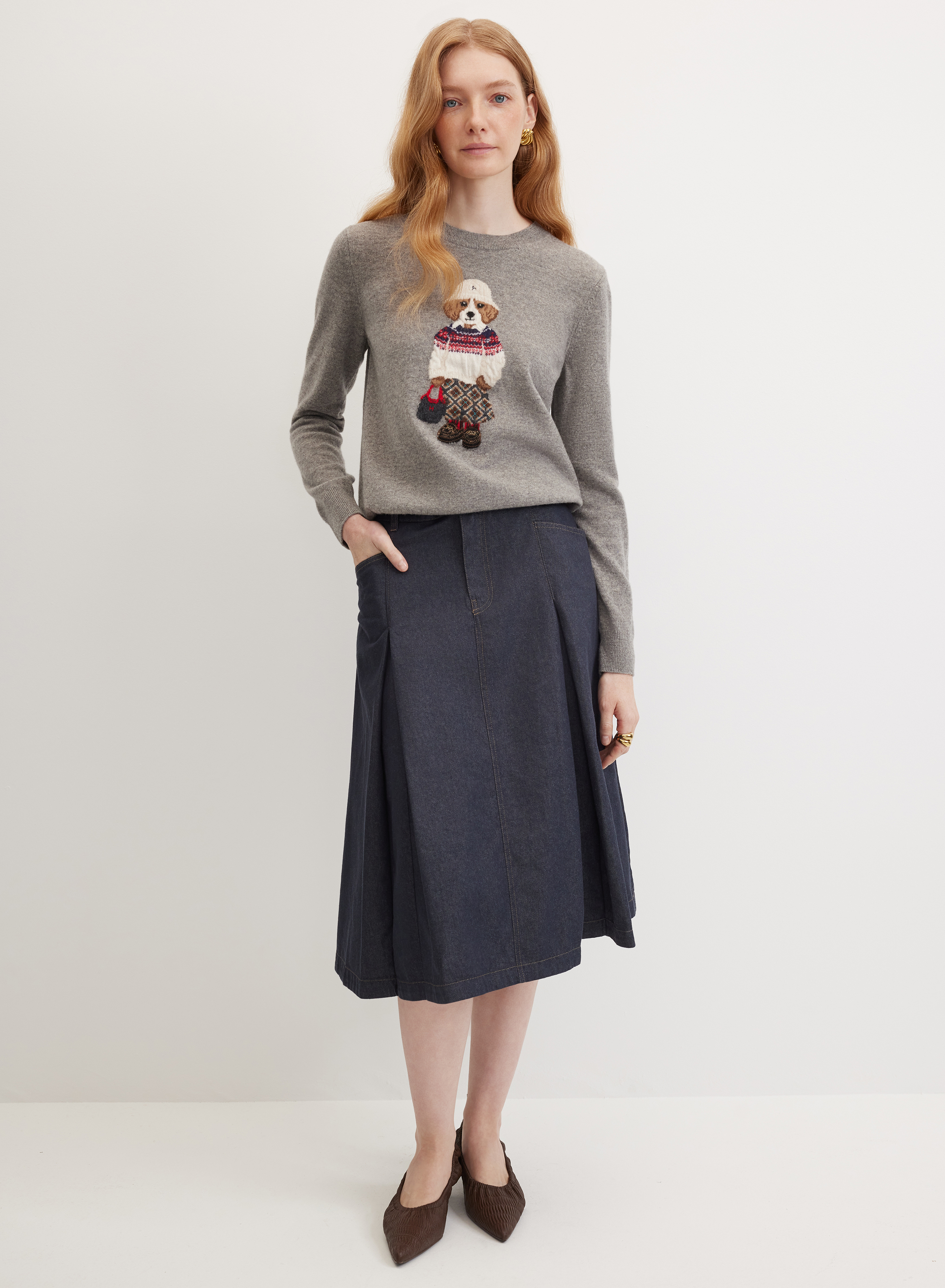 Джемпер станет хорошим дополнением к повседневному осенне-зимнему гардеробу. Он легко сочетается с джинсами, брюками, теплыми шортами и юбками любой длины, создавая непринужденные образы для прогулок по городу и уютных вечерних встреч.