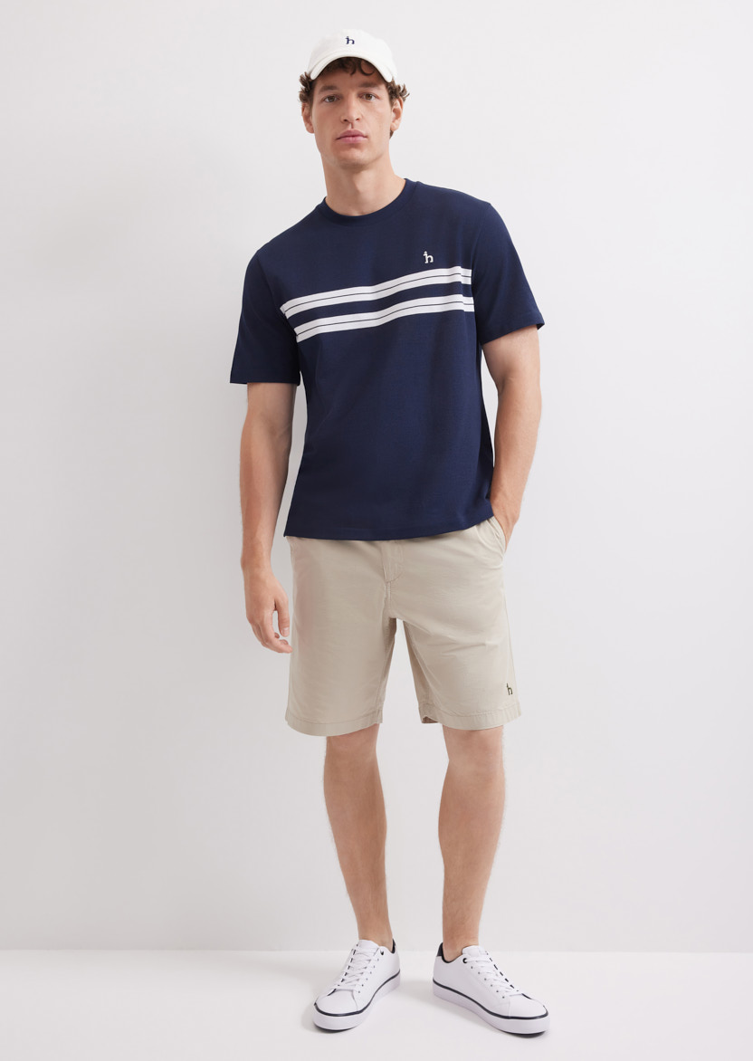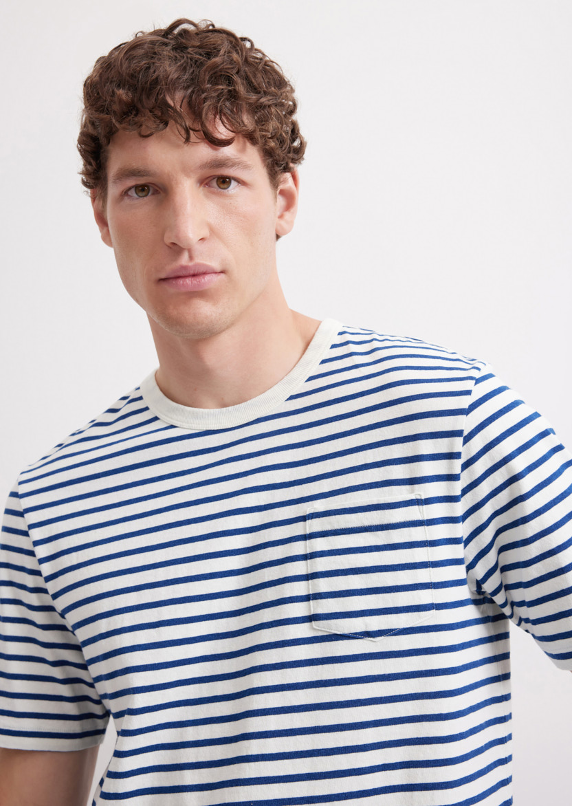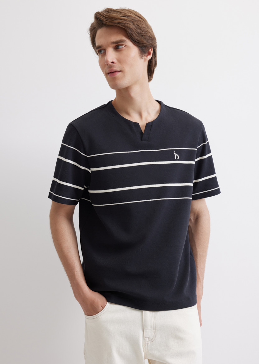 Классическая темно-синяя футболка свободного кроя с контрастными полосками