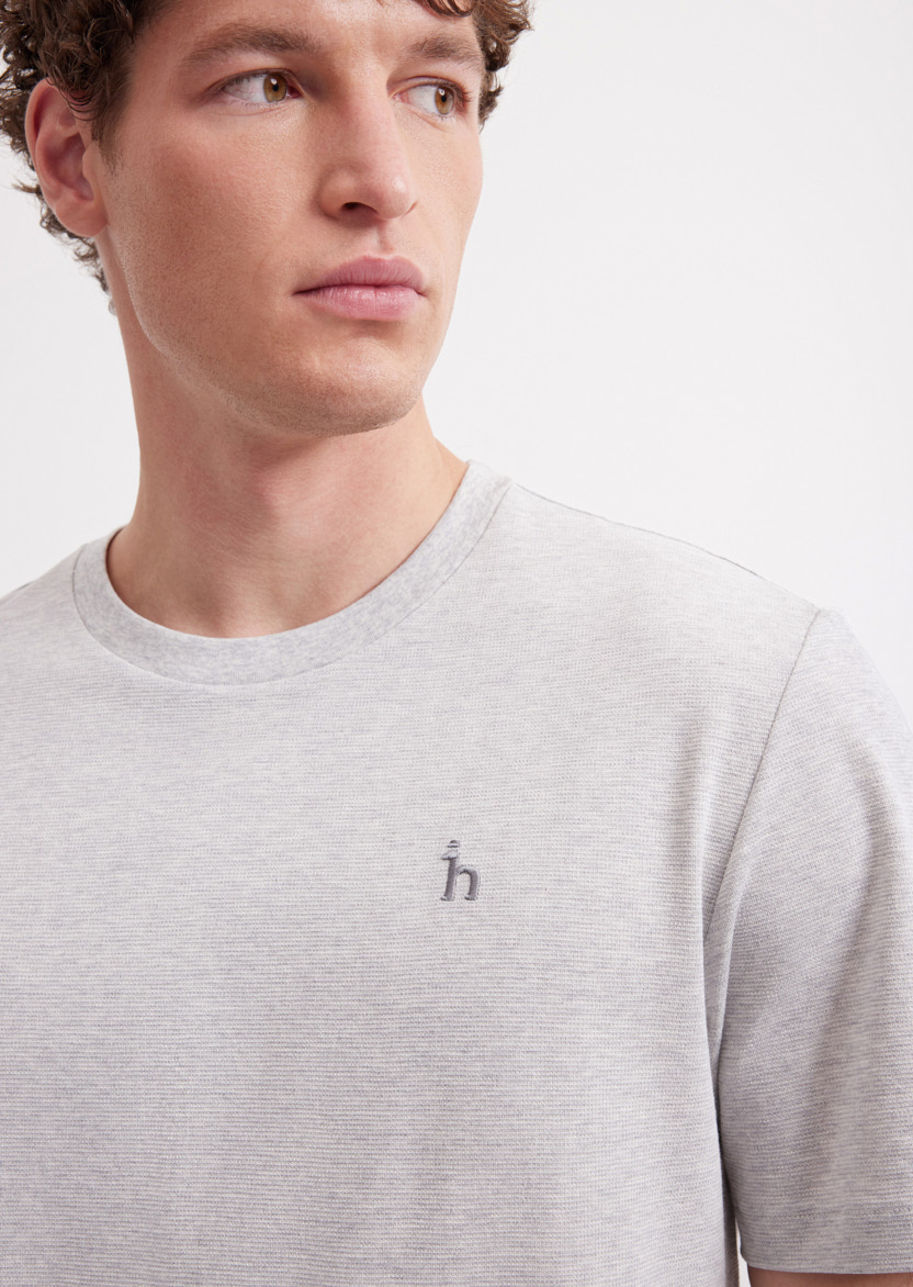 Серая хлопковая футболка с фирменной вышивкой