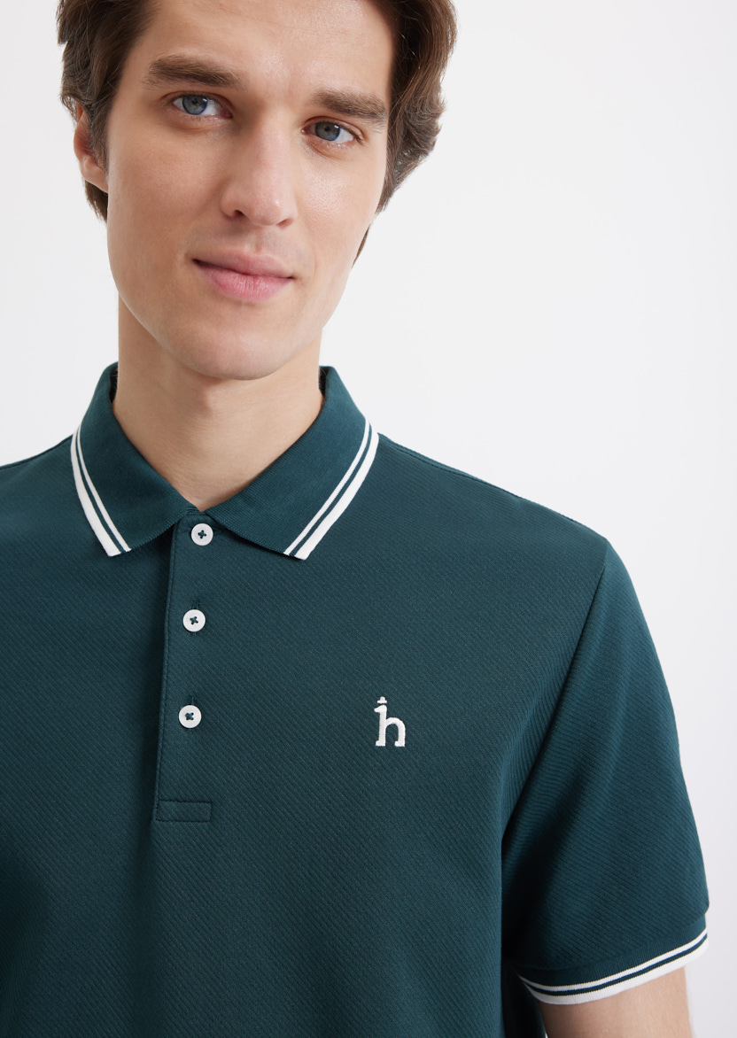 Темно-зеленое поло с декоративными полосками