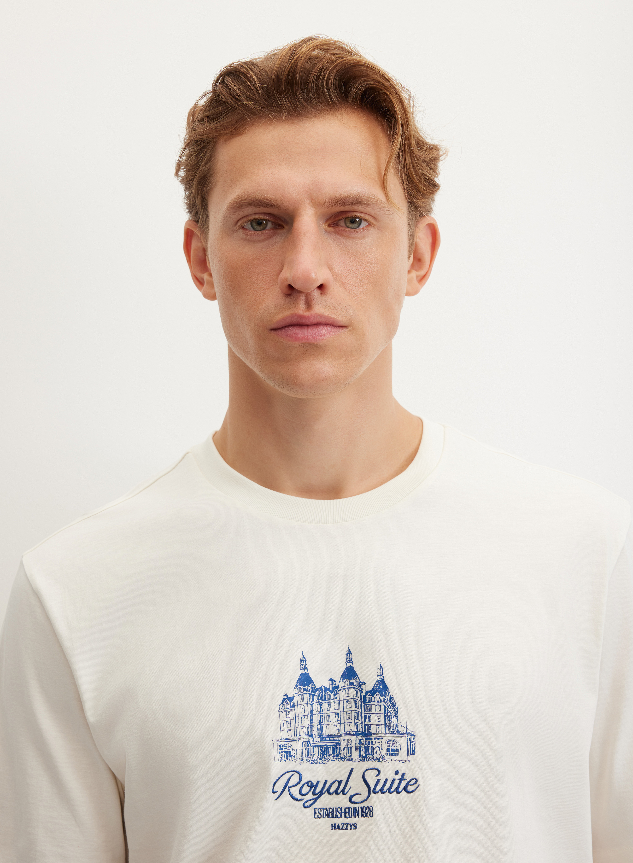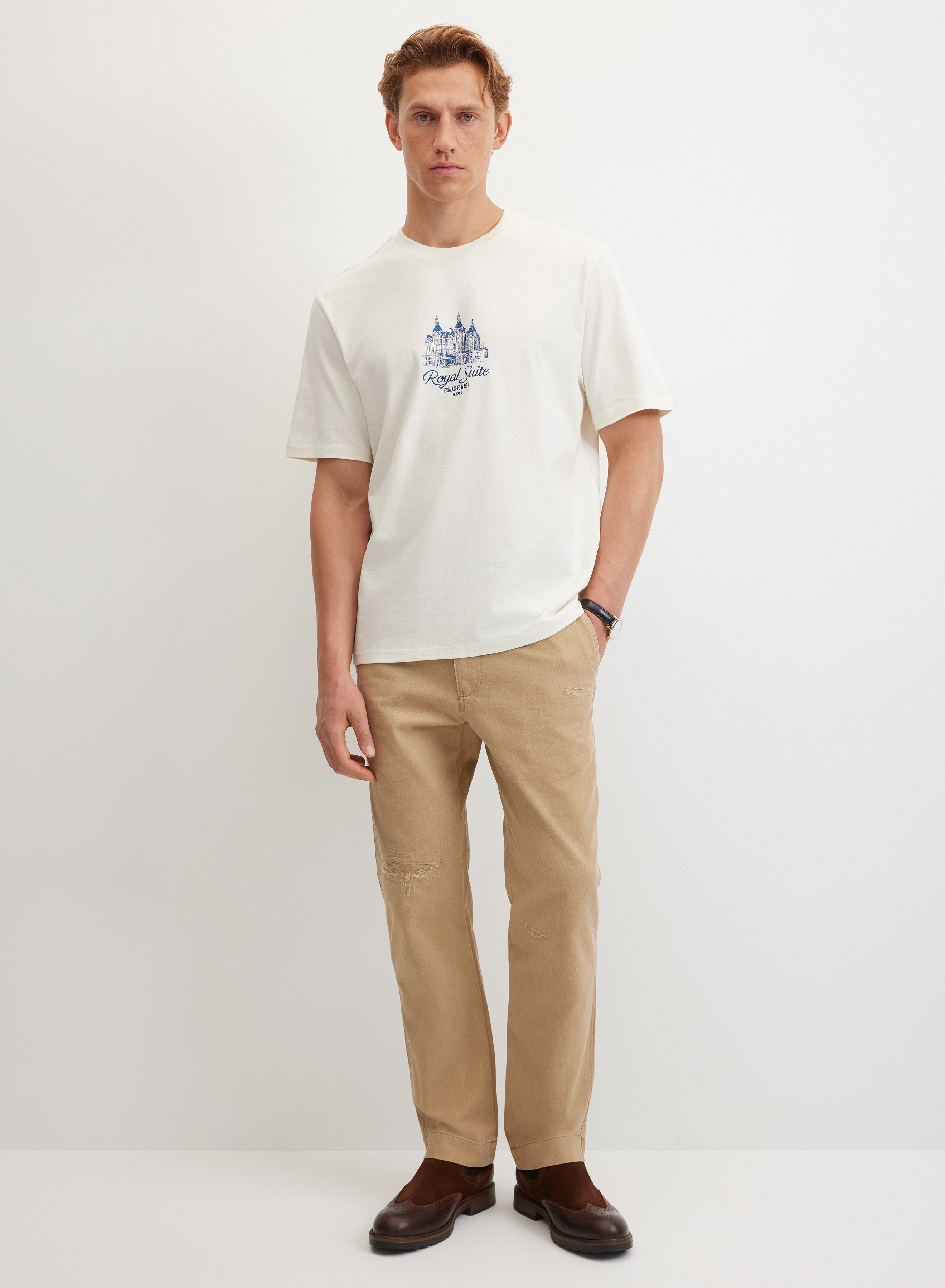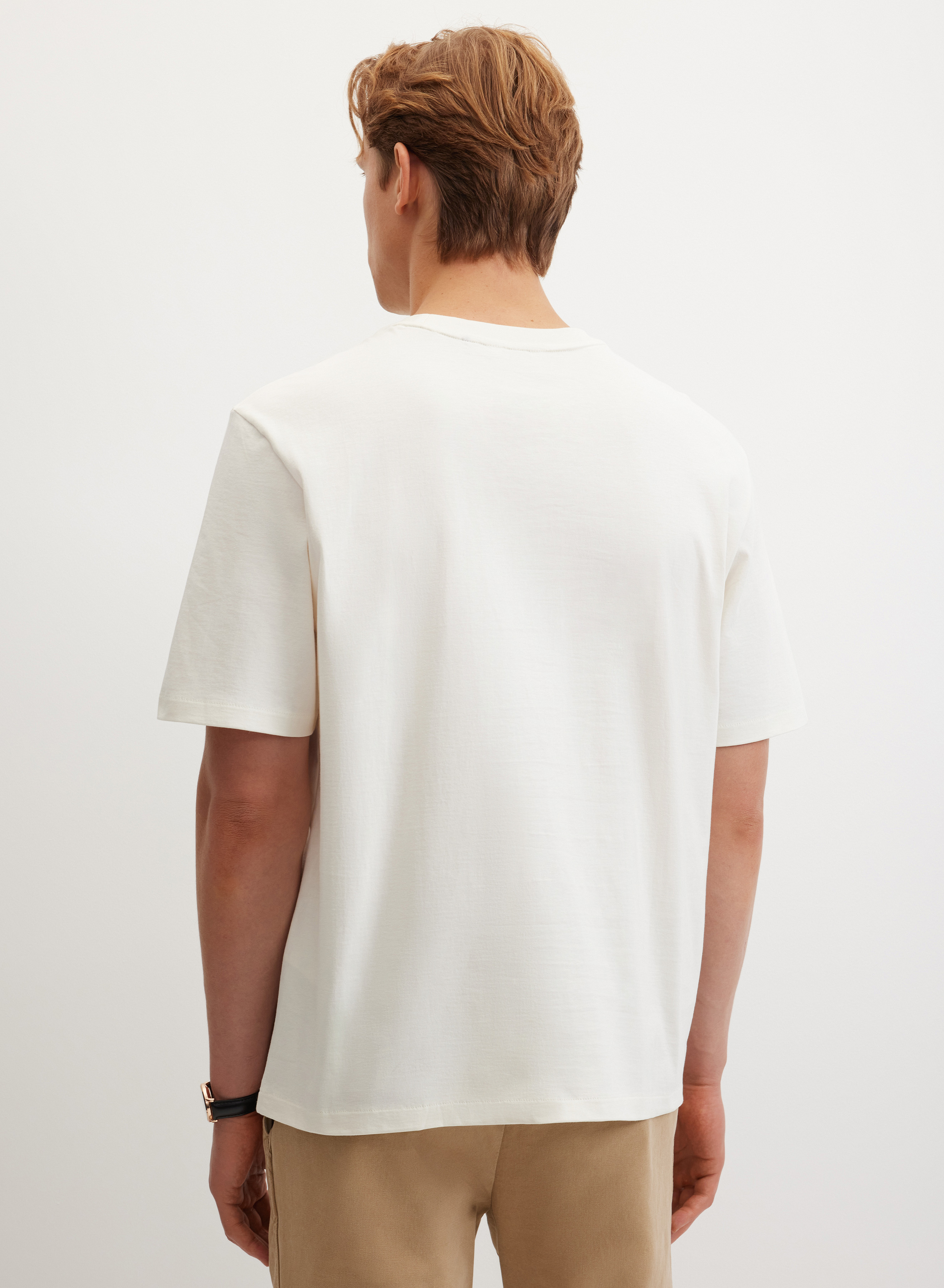 Футболка органично впишется в повседневные образы. Хорошо сочетается с джинсами, шортами и спортивными брюками, а в комбинации с рубашками и легкими куртками создает интересные многослойные образы.