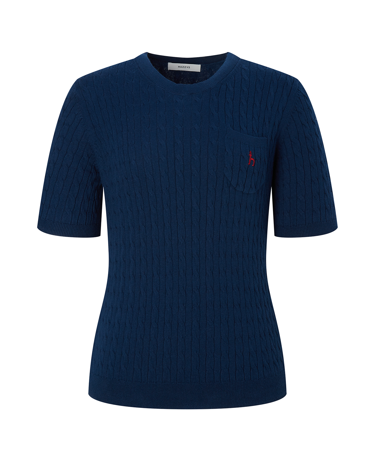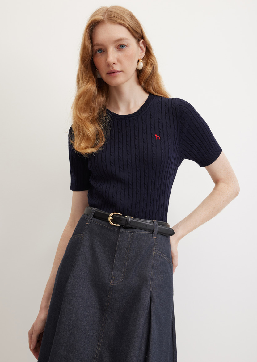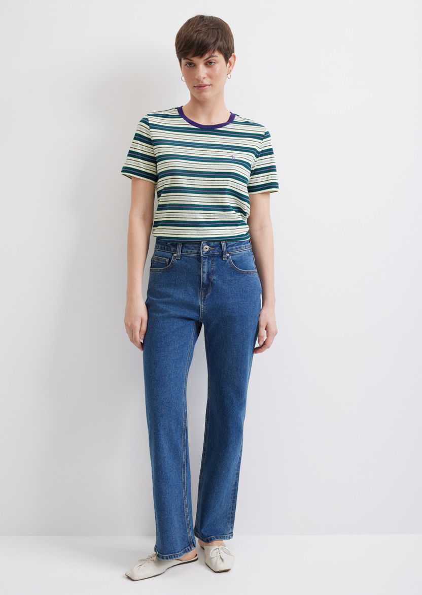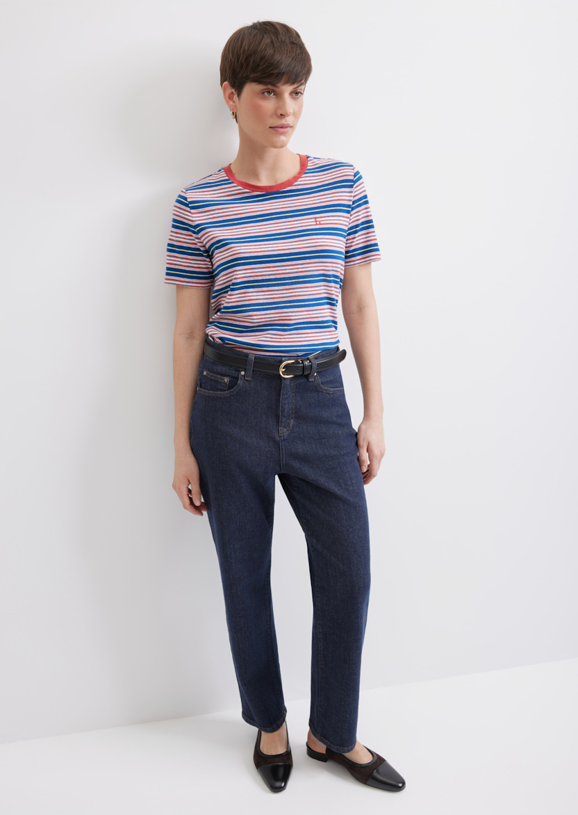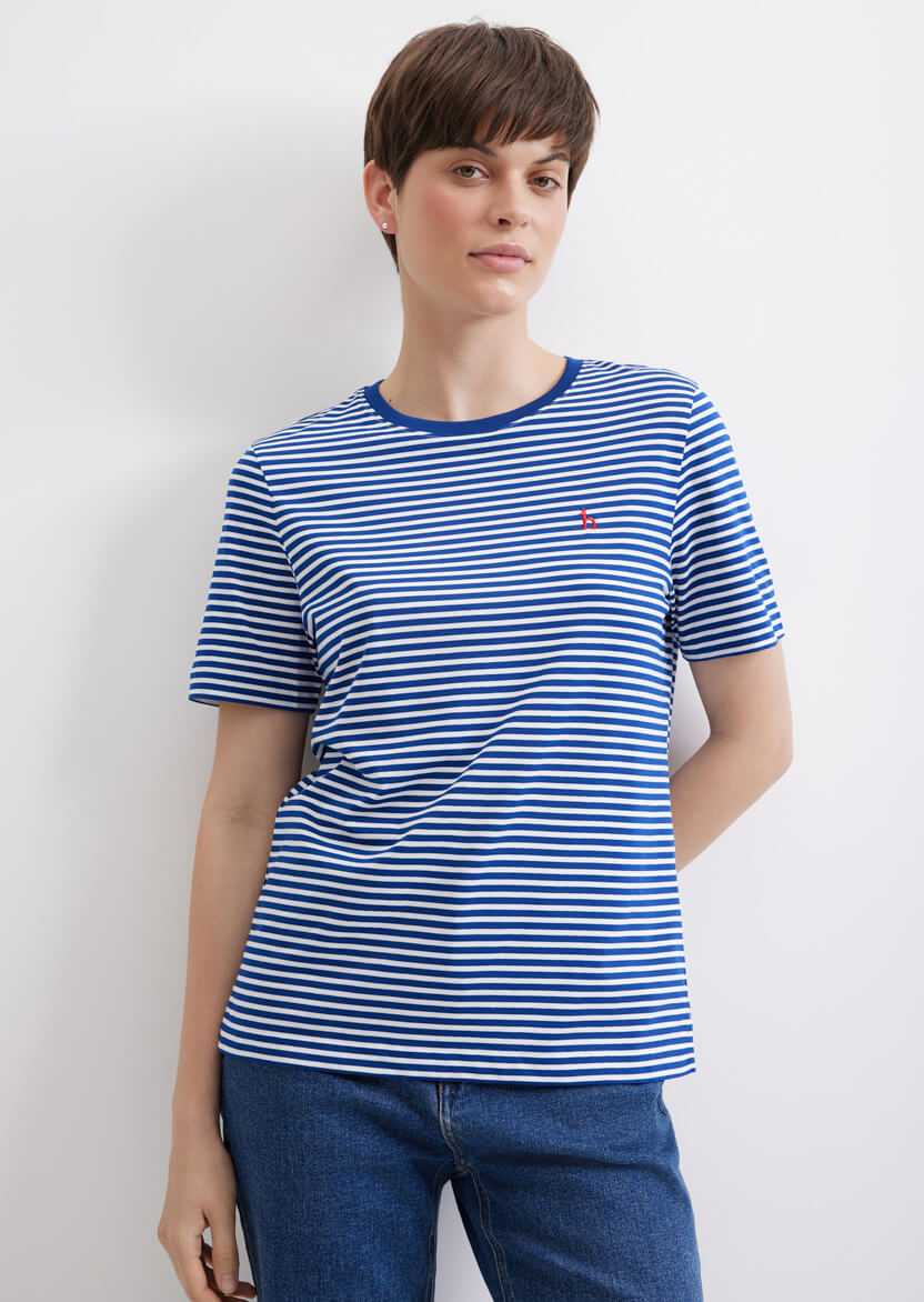 Темно-синяя футболка в полоску с контрастной горловиной и вышитым логотипом