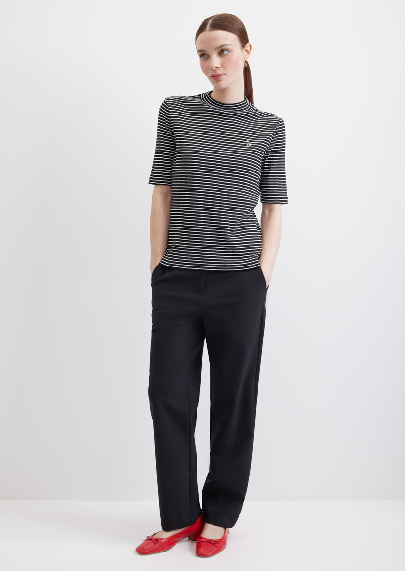 Полосатая черная футболка с воротом-стойкой и короткими рукавами