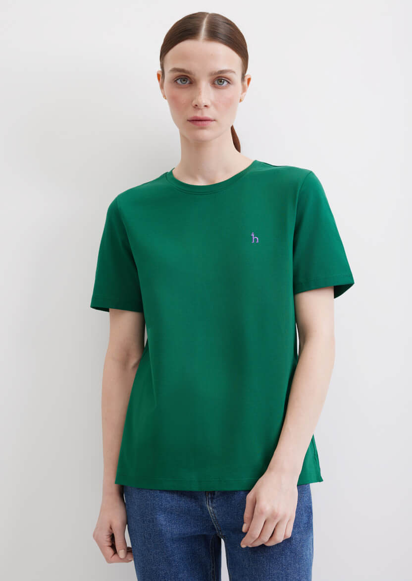 Базовая зеленая футболка с круглым вырезом и логотипом