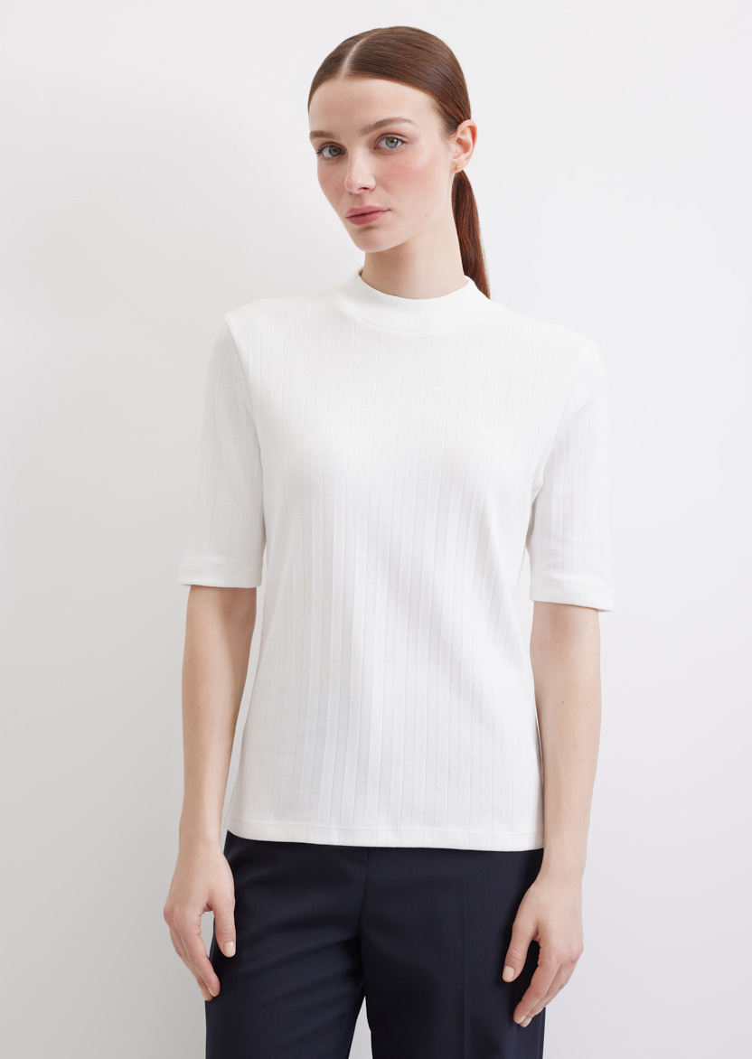 Футболка цвета слоновой кости с воротом-стойкой и короткими рукавами