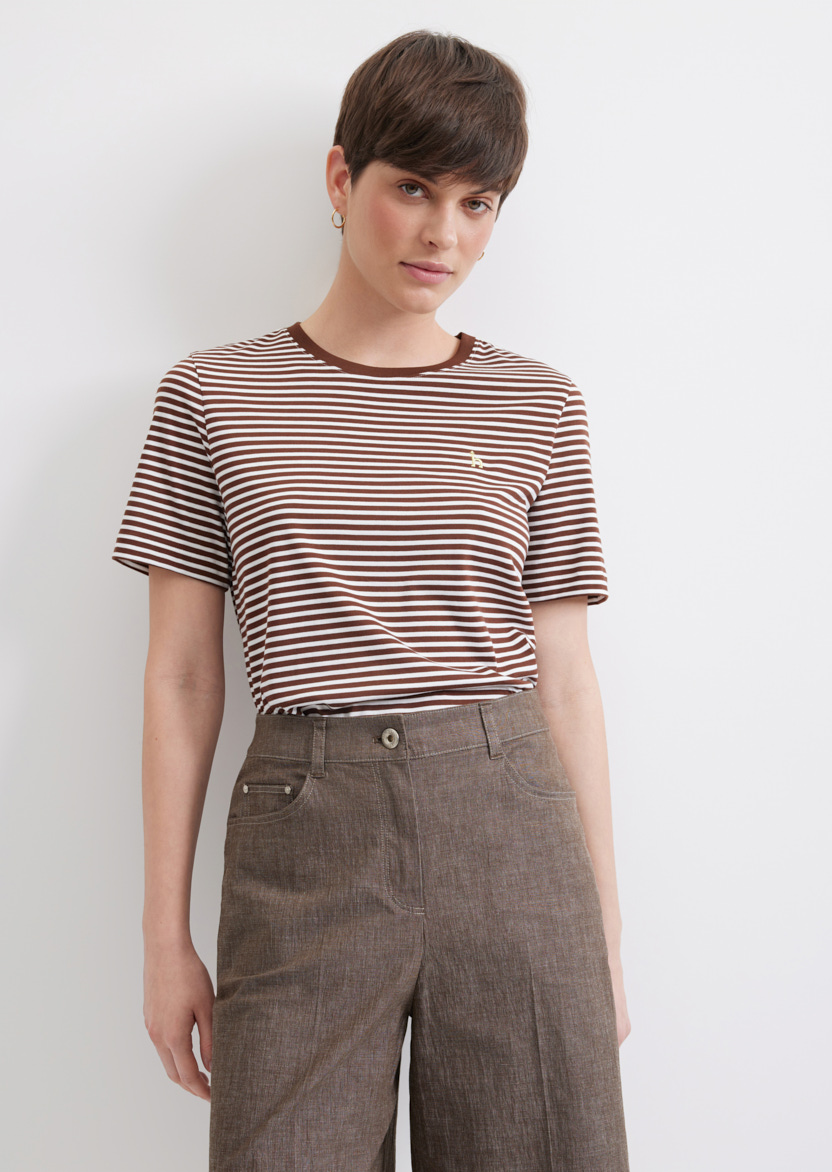 Коричневая футболка в полоску с контрастной округлой горловиной