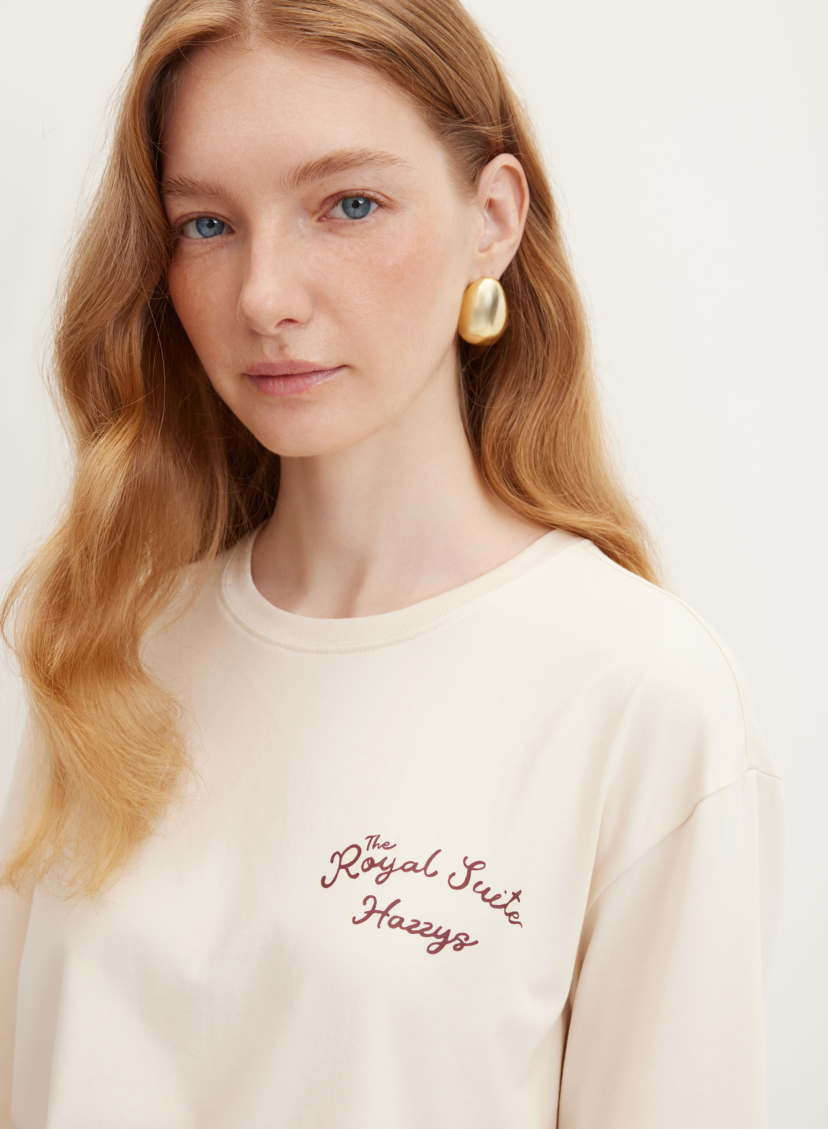 Светло-бежевая футболка с минималистичным принтом