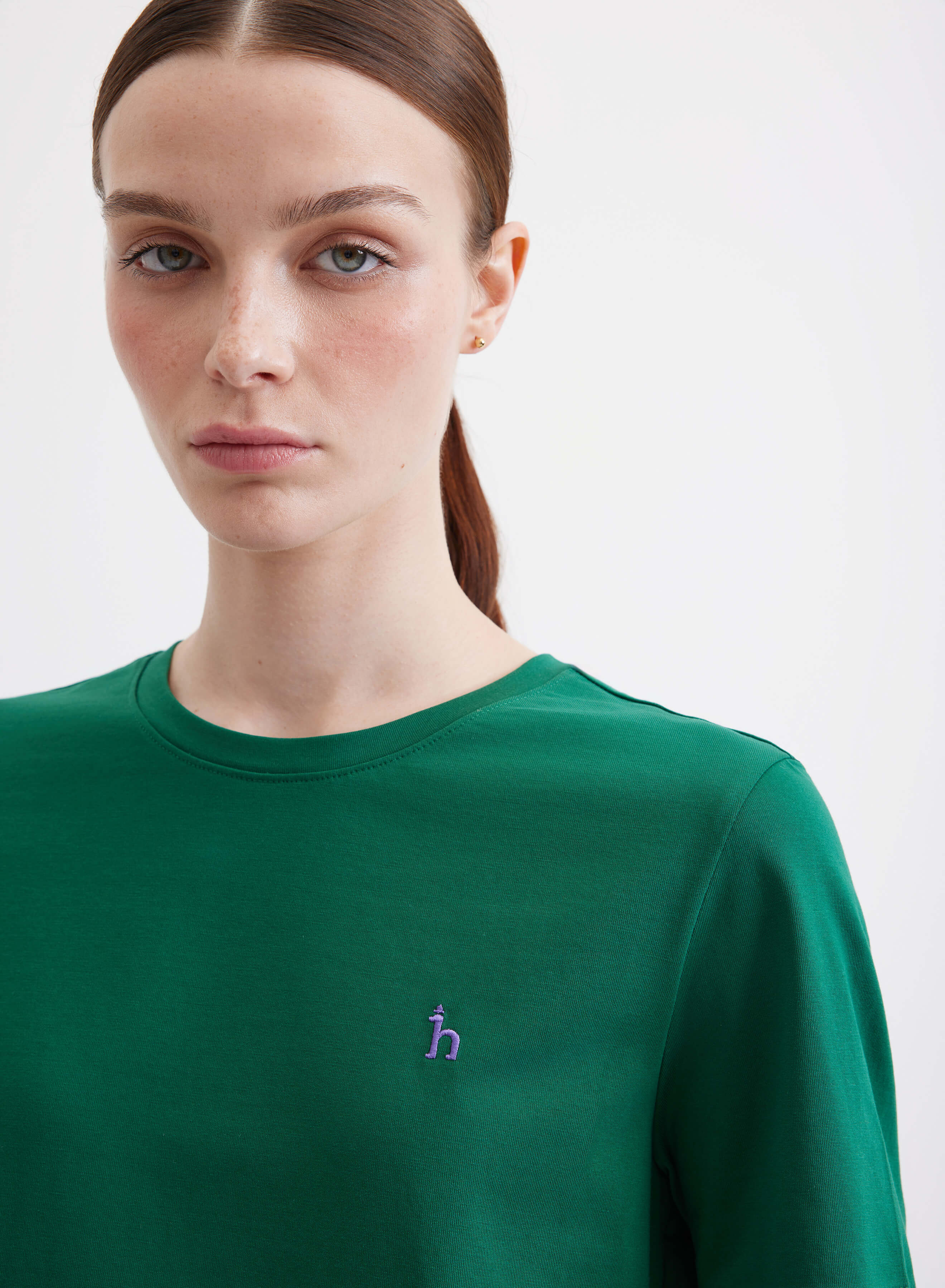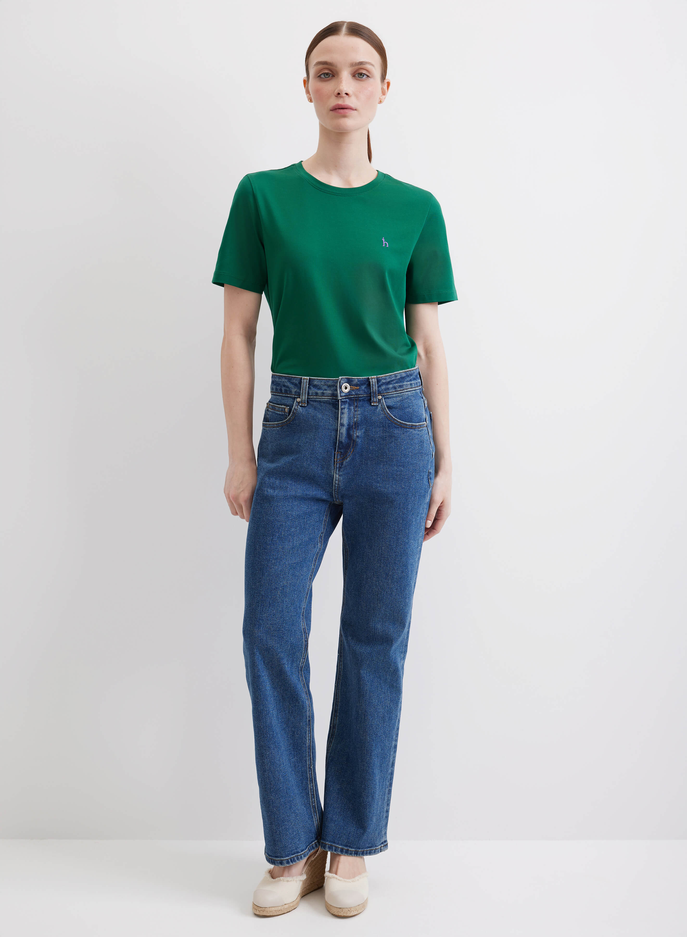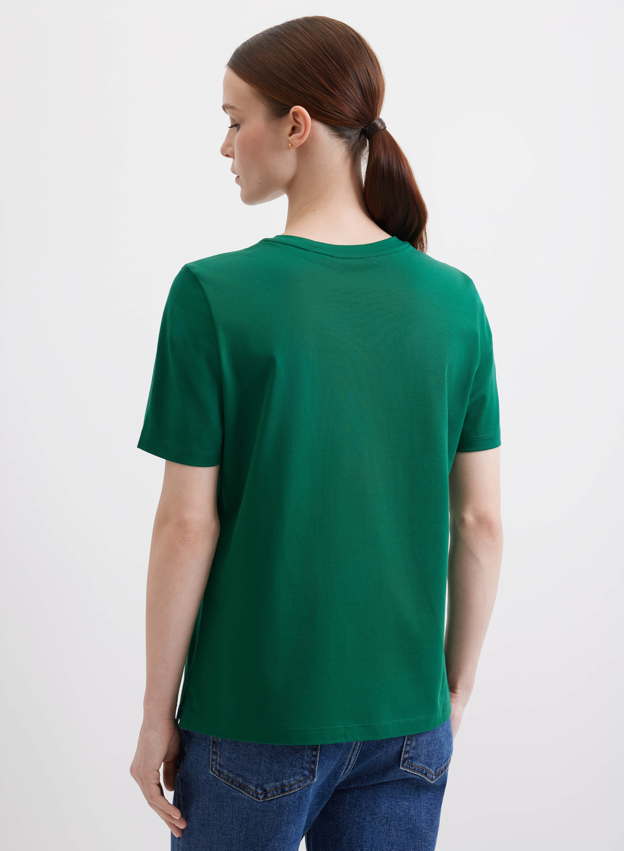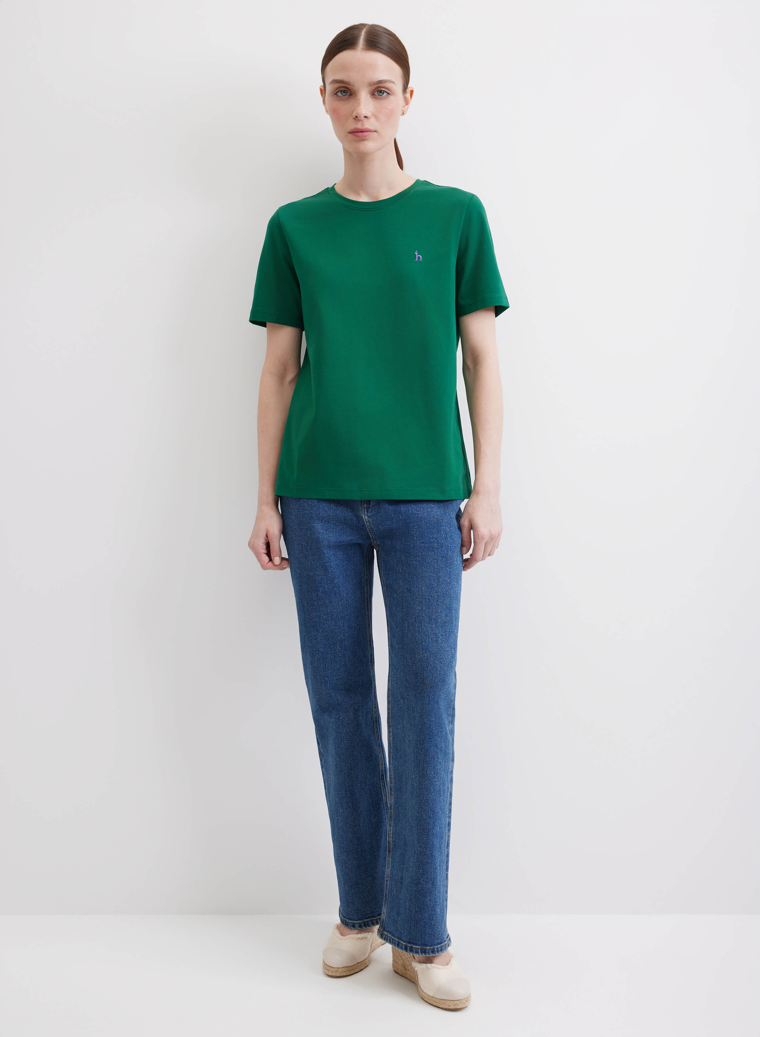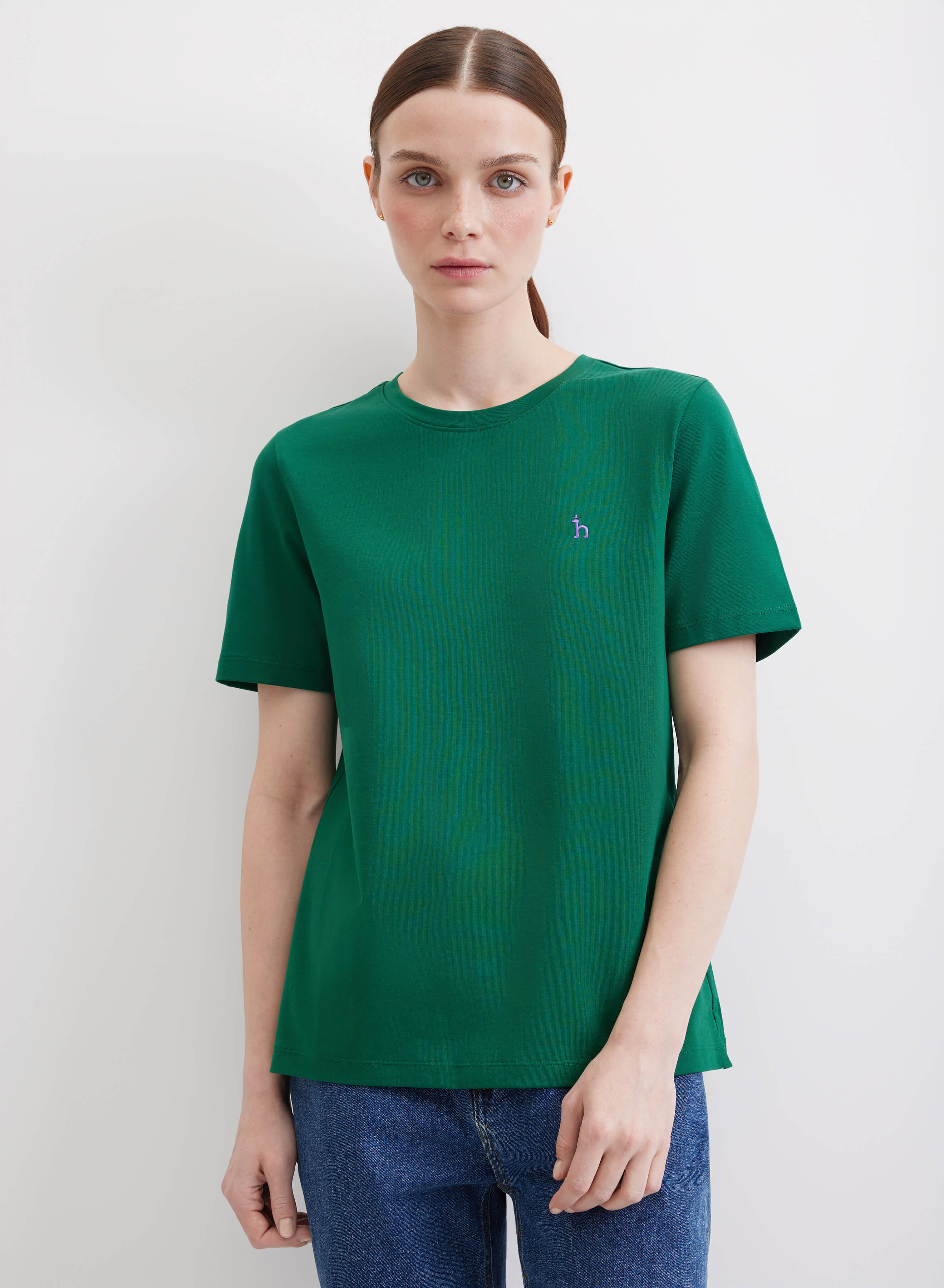 Футболка прямого силуэта с классическим круглым вырезом и короткими рукавами. Аккуратная вышивка на груди выделяется на фоне однотонной ткани и добавляет изделию индивидуальности. Минималистичный дизайн делает вещь универсальной для любого гардероба.