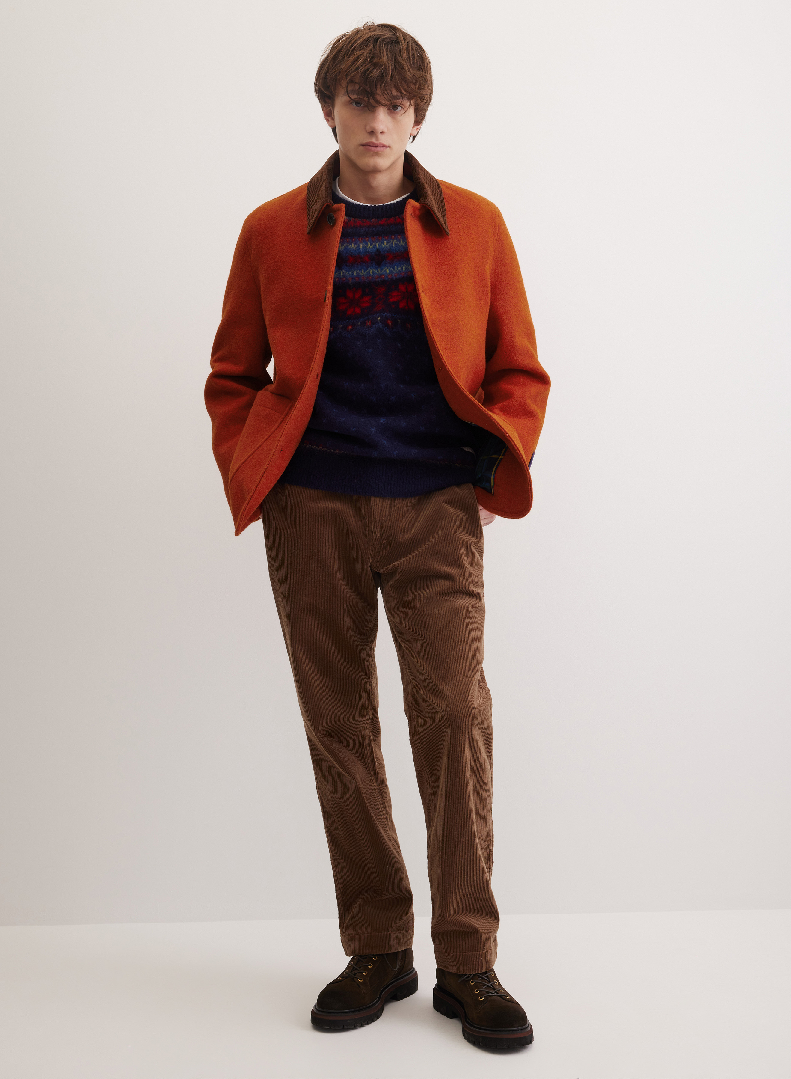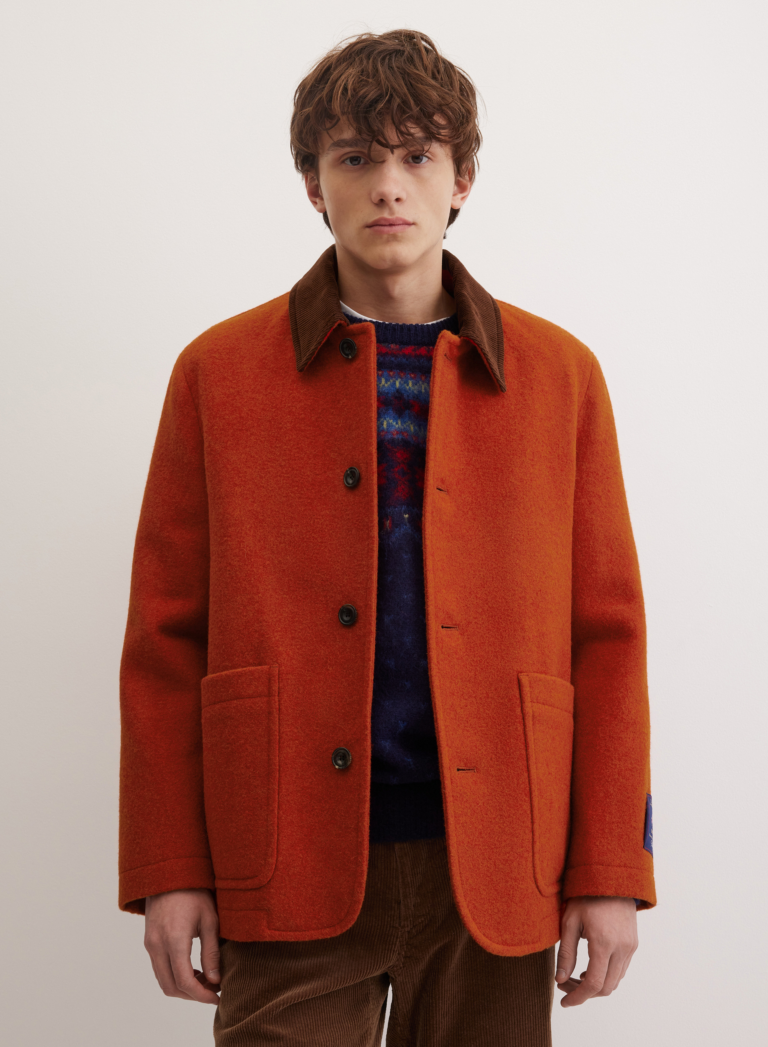 Пальто выполнено из чистой шерсти, что обеспечивает плотную, структурированную фактуру с естественным объемом и отличными теплосберегающими свойствами. Гладкая подкладка внутри делает ношение комфортным.