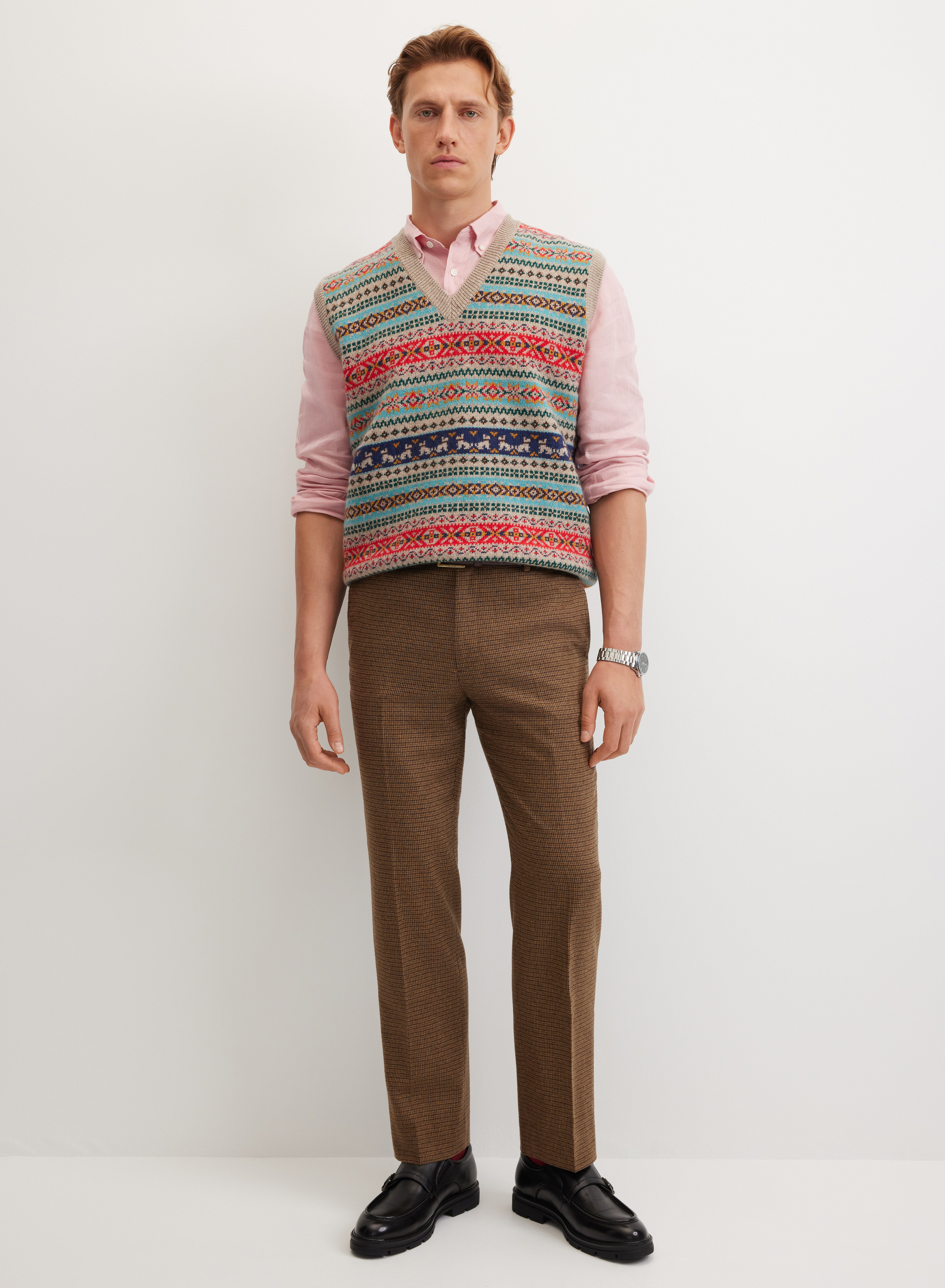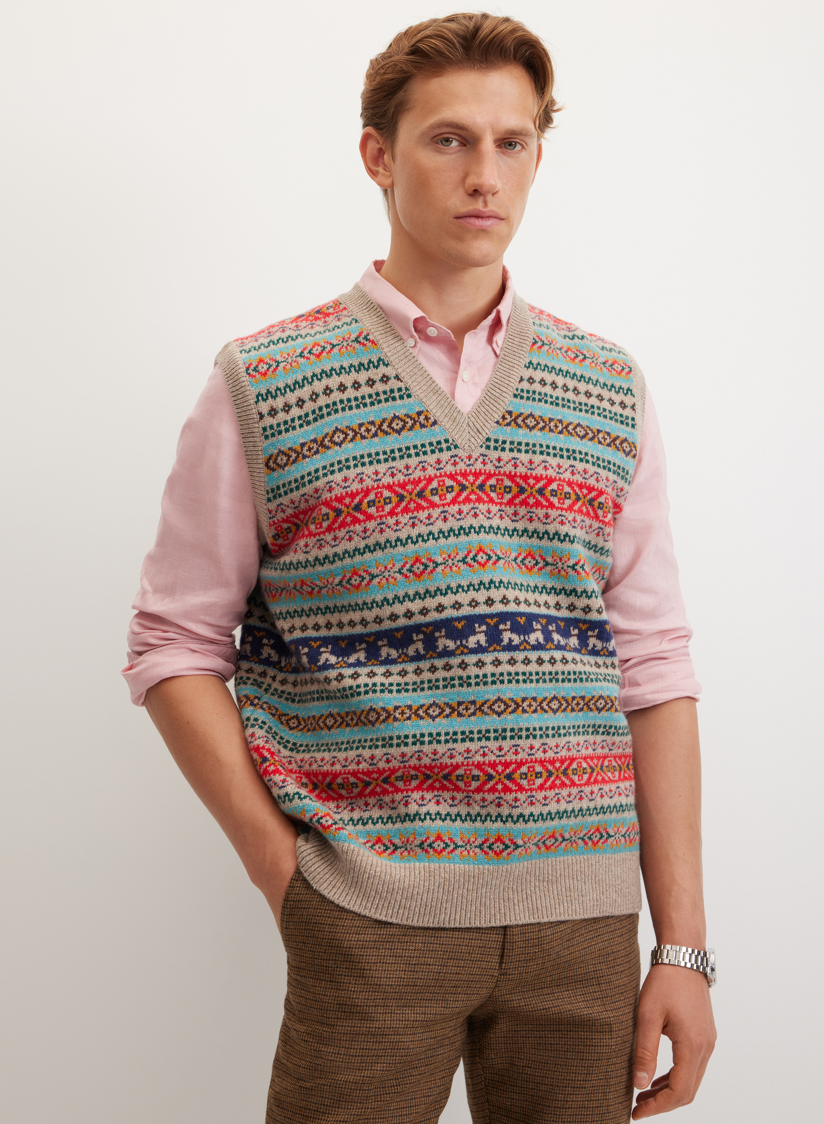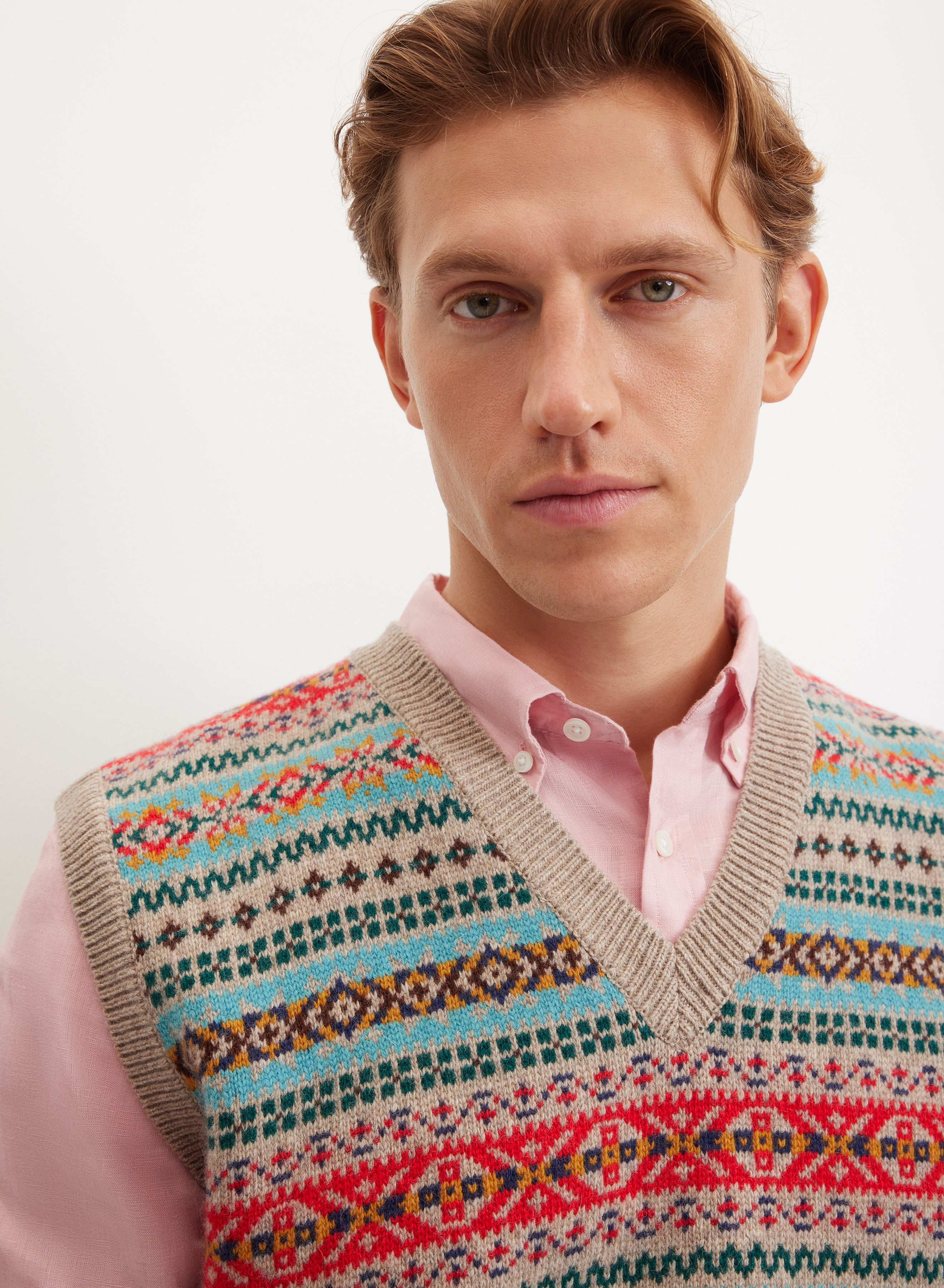 Безрукавка выполнена из премиальной английской шерсти, которая обладает отличной термоизоляцией, не вызывает аллергии и обладает антистатическими свойствами. Мягко облегая тело, она согревает в прохладные дни, защищает от ветра и поддерживает комфорт.