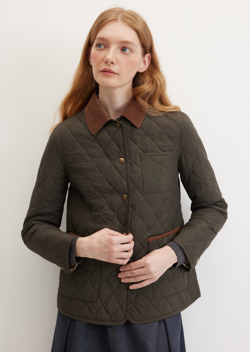 Стеганая демисезонная куртка с контрастной подкладкой и накладными карманами