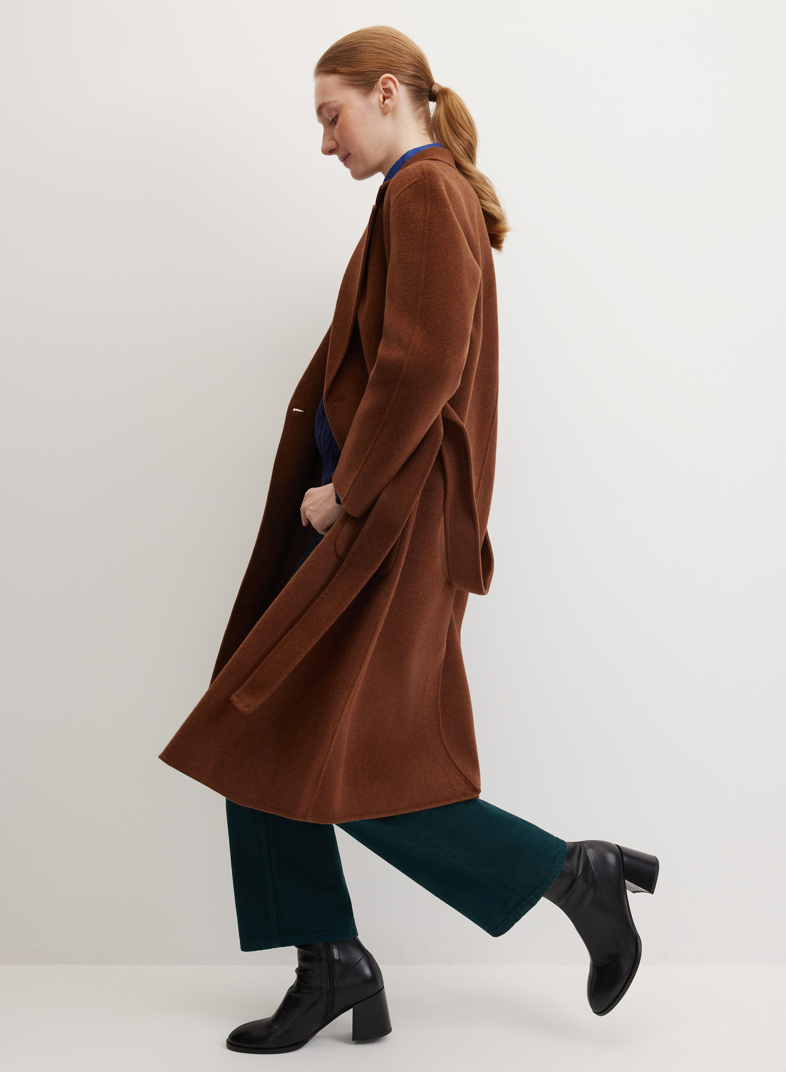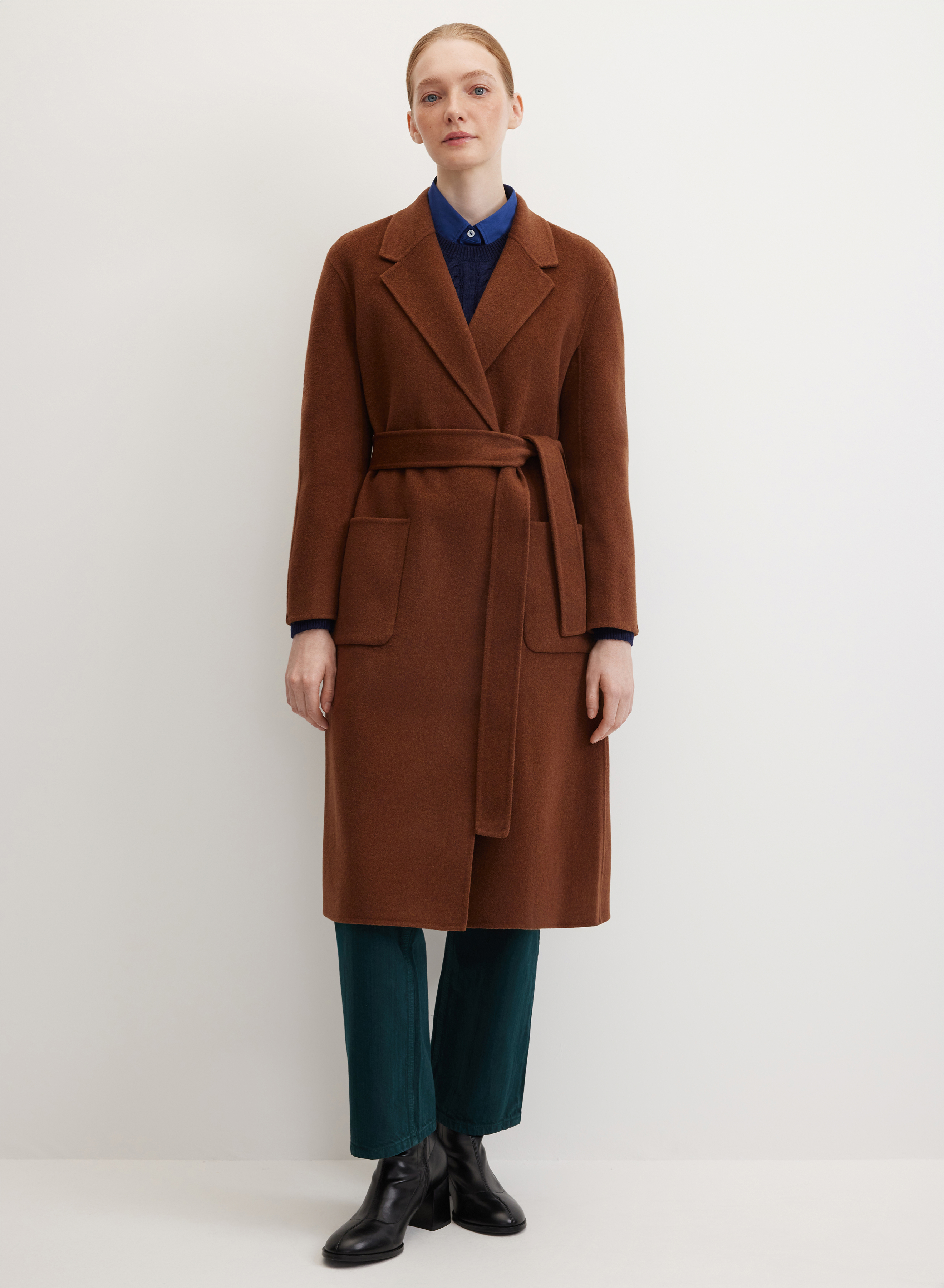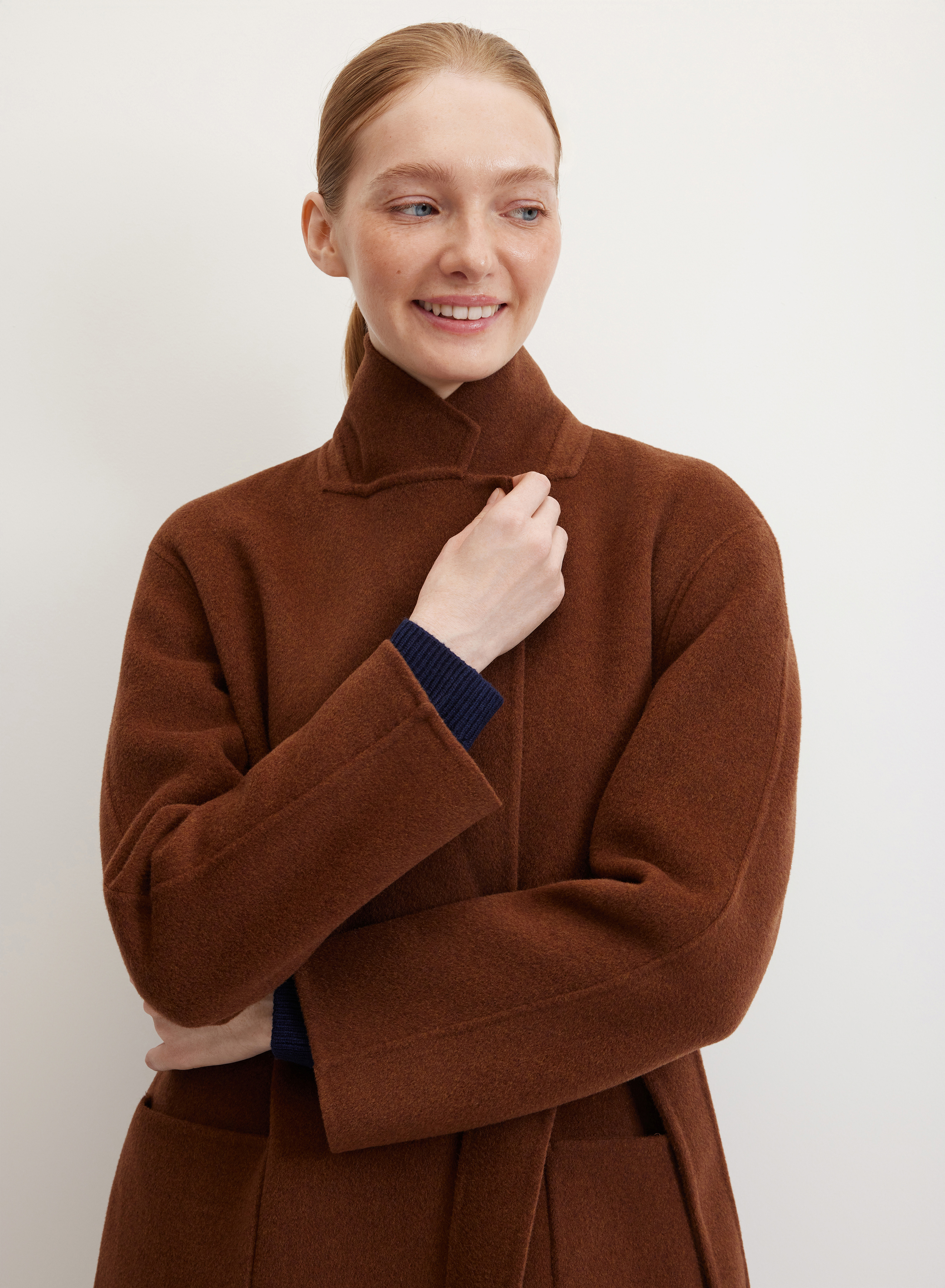 Модель выполнена из премиальной шерсти с добавлением кашемира, который придает изделию исключительную мягкость и нежность. Бережно окутывая теплом, ткань защищает от холодного воздуха и ветра, обеспечивая комфорт в непогоду. Шелковистая подкладка способствует красивой посадке изделия по фигуре.