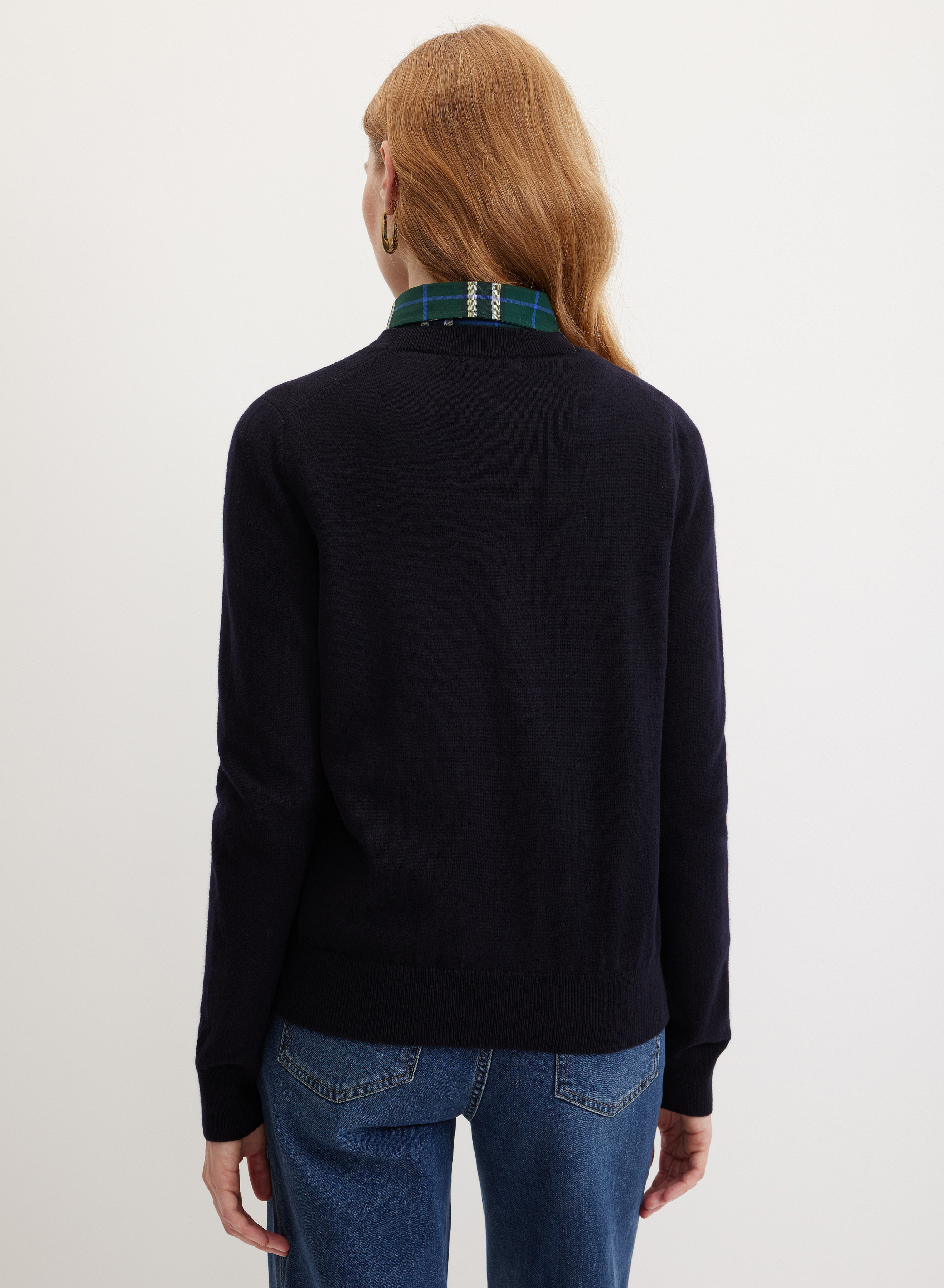 Джемпер изготовлен из премиальной шерстяной пряжи с едва заметным благородным блеском. Гладкий материал нежно облегает фигуру, поддерживая ощущение комфорта и тепла.