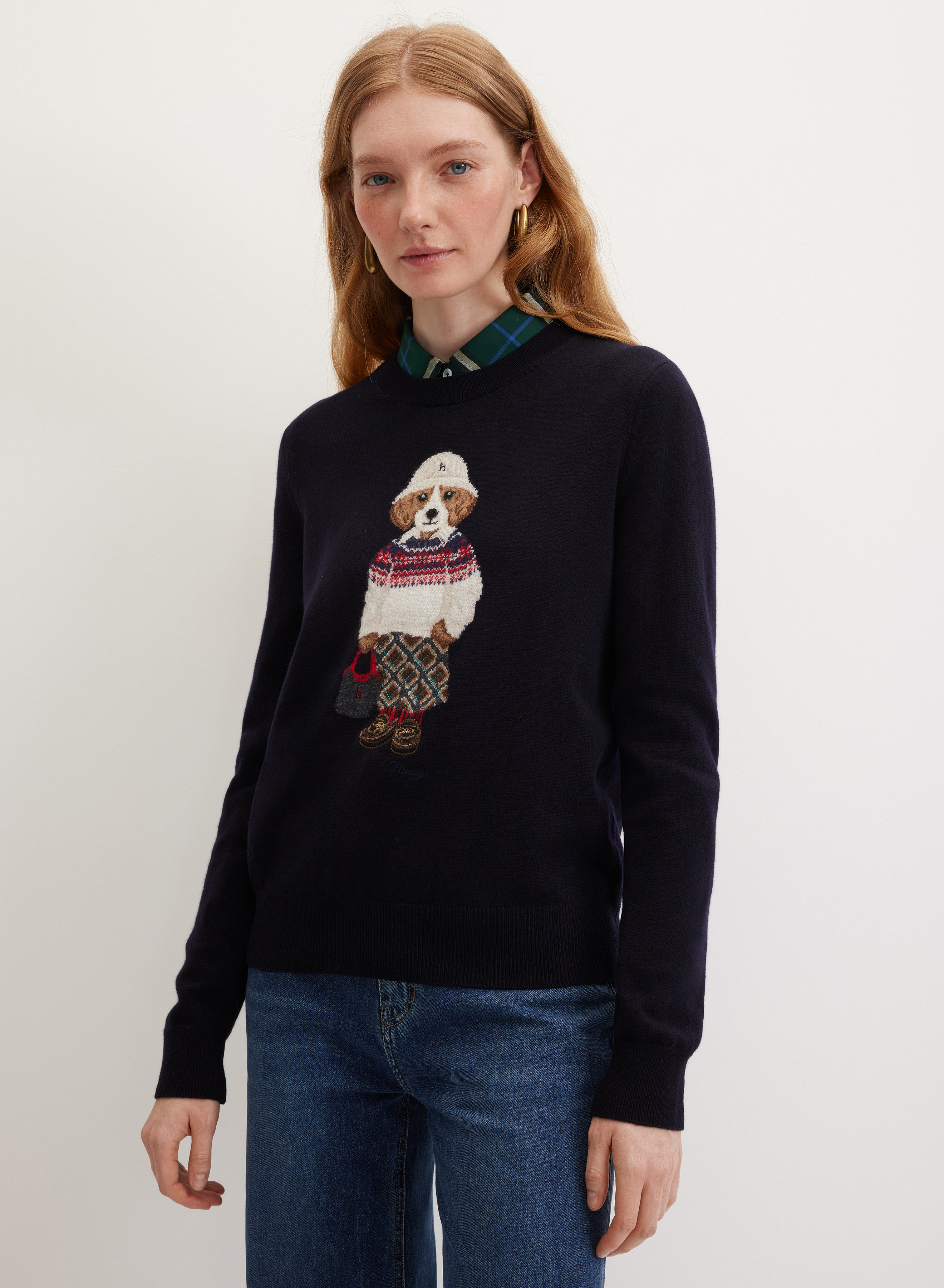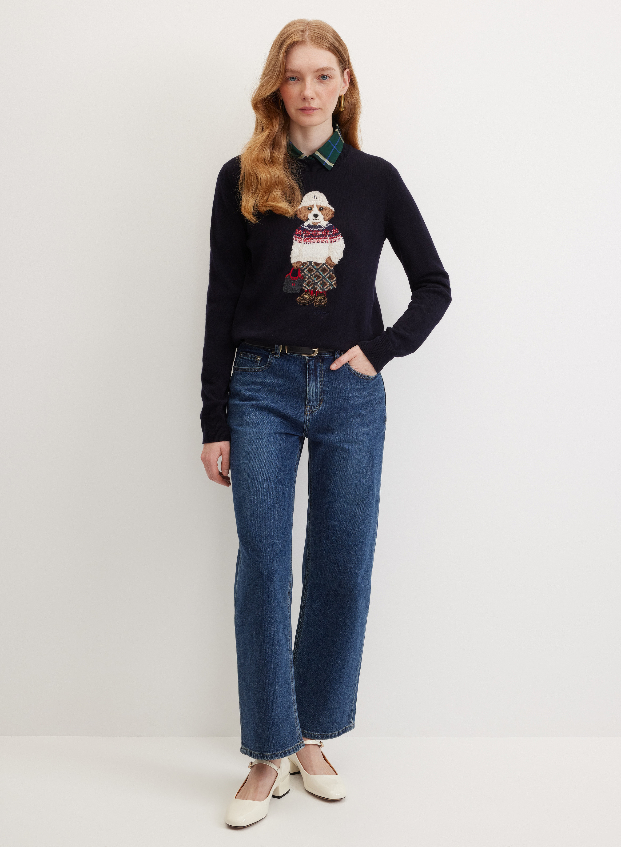 Джемпер классического кроя с округлым вырезом горловины и длинными рукавами. Эластичные манжеты и ворот обеспечивают комфортную посадку по фигуре. Цветной дизайнерский принт в области груди привлекает внимание и освежает образ.