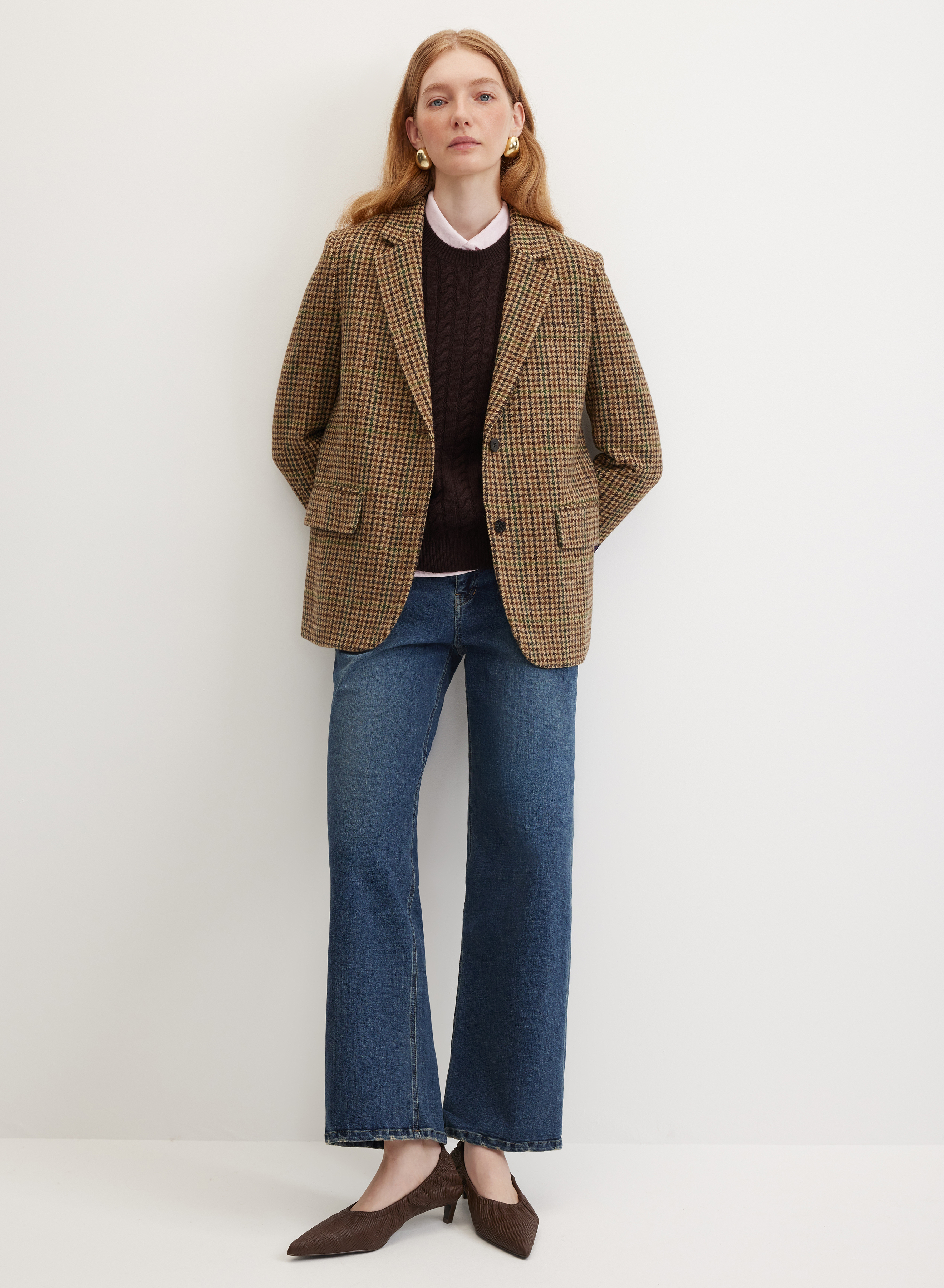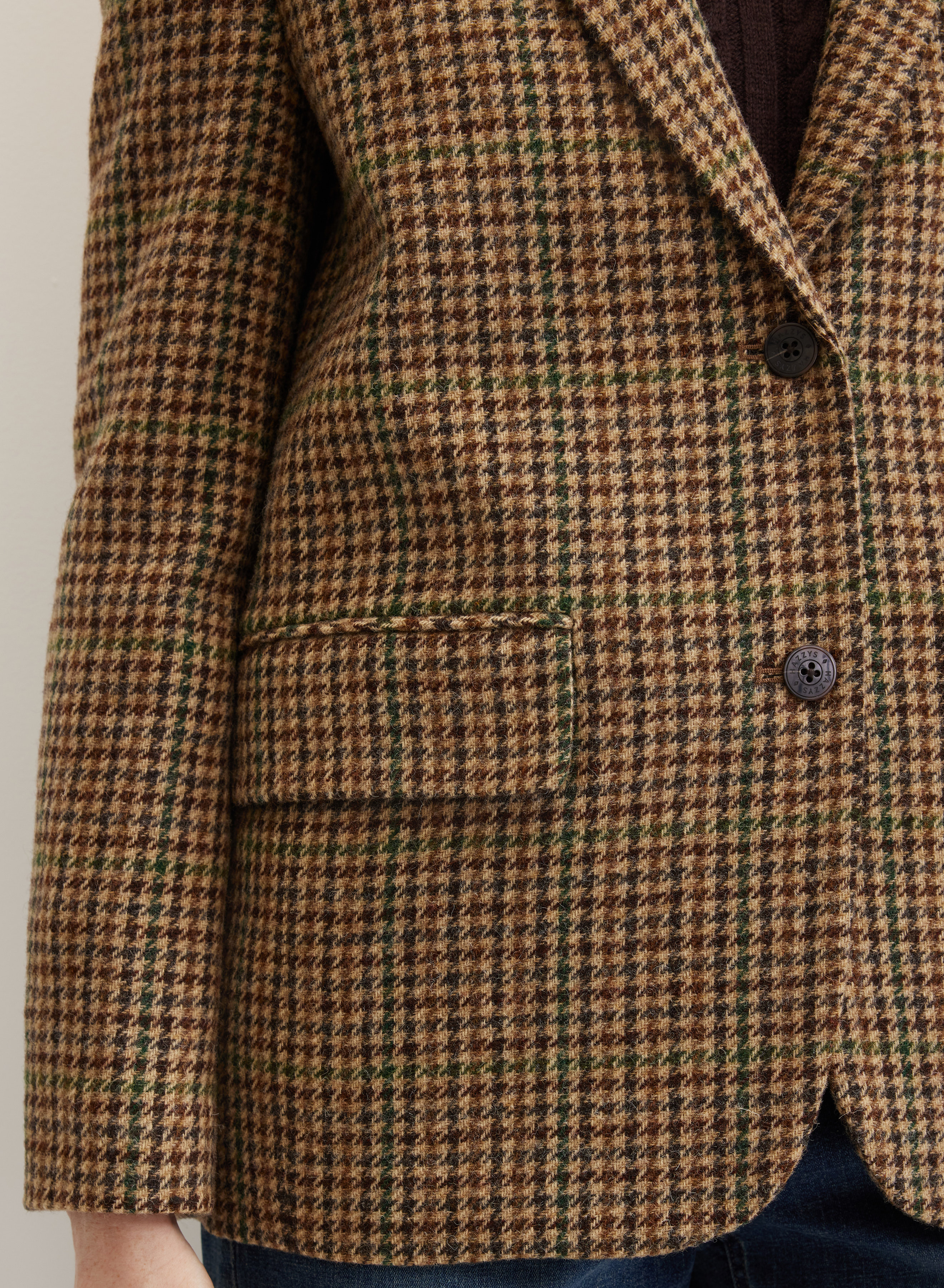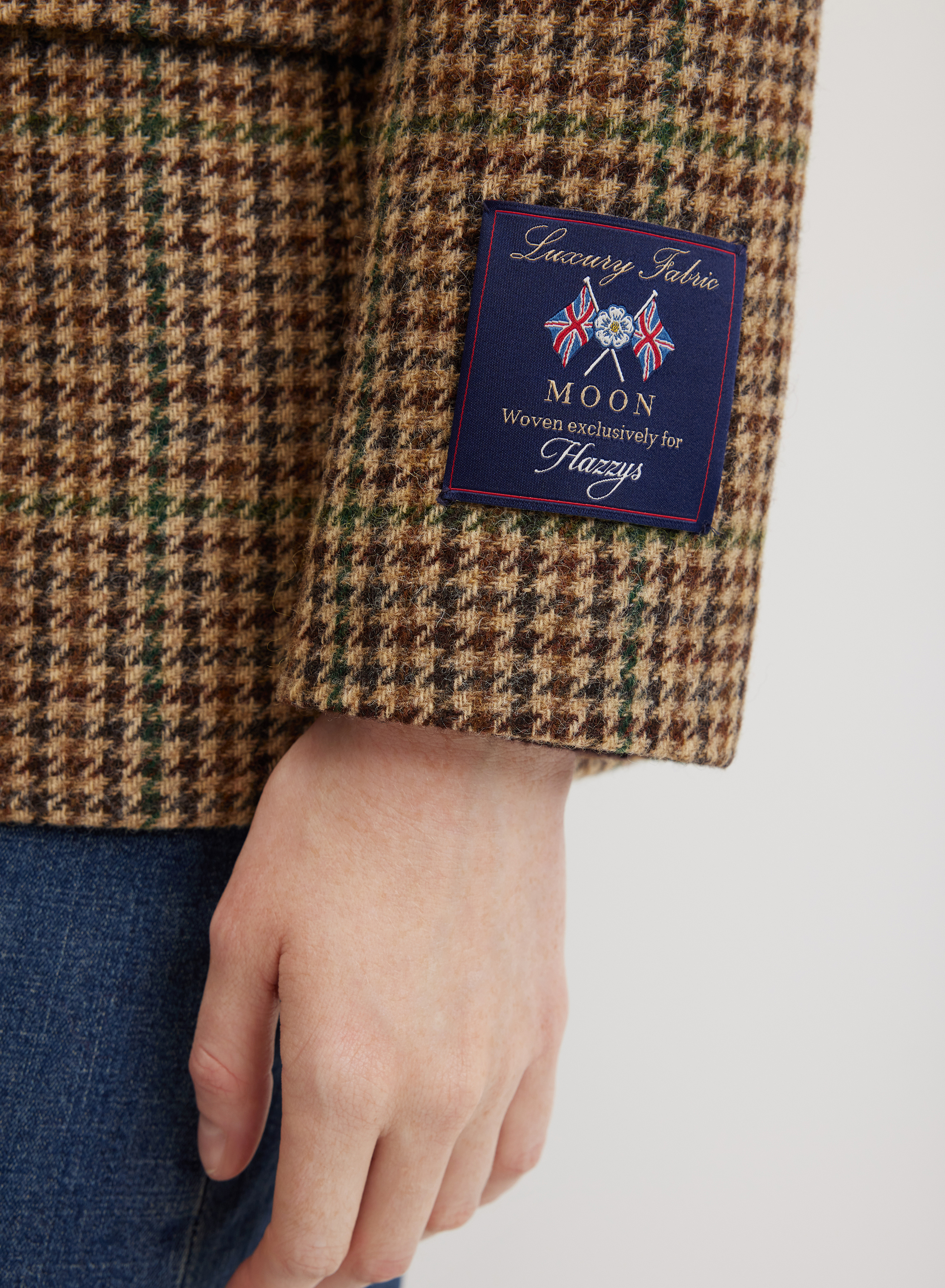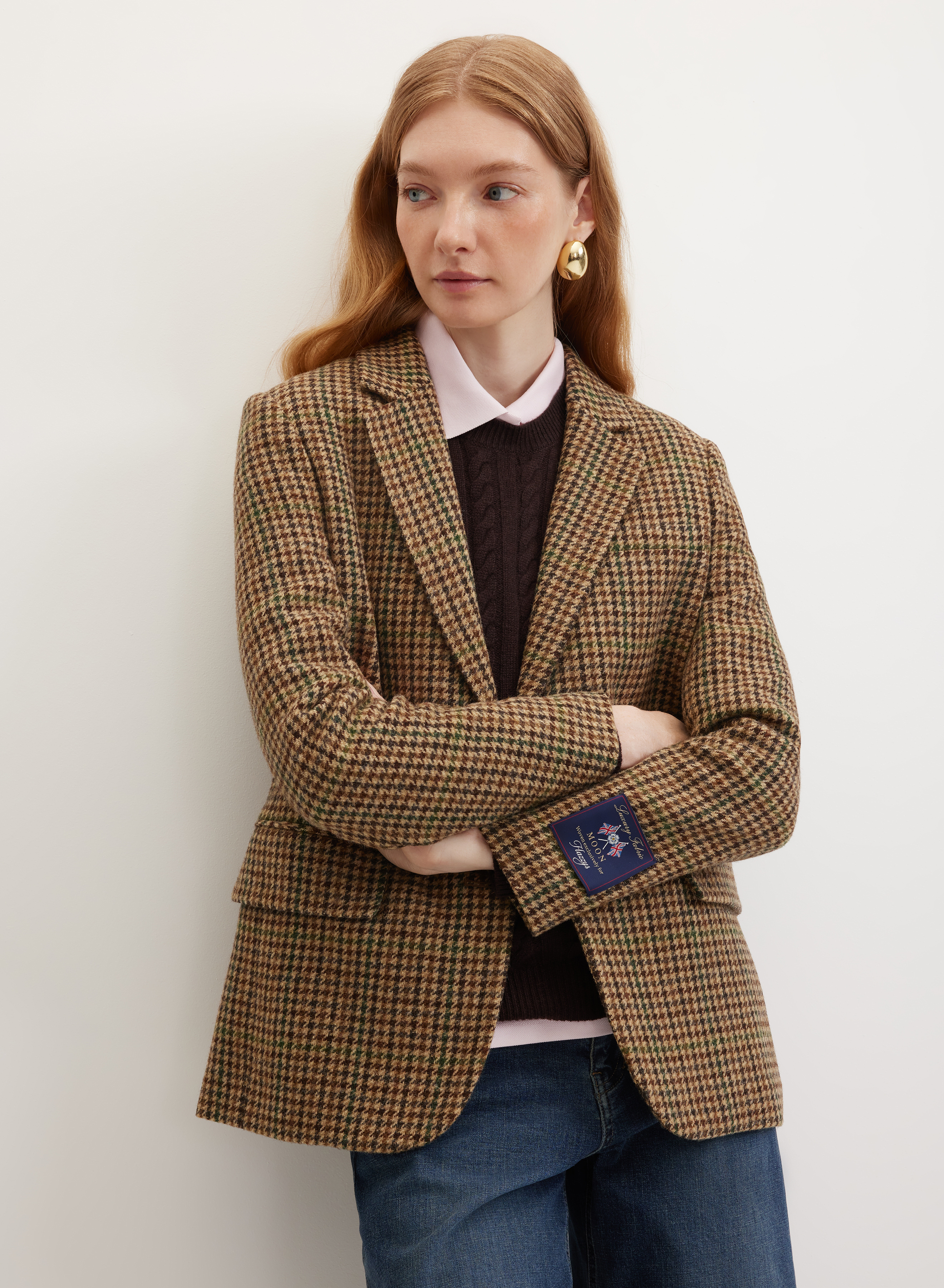 Изделие выполнено из премиального шерстяного твида, сотканного на фабрике Moon (Западный Йоркшир, Англия). Нежная и приятная к телу ткань поддерживает комфорт и сохраняет тепло в прохладные дни. Атласная подкладка с внутренним карманом обеспечивает красивое прилегание по фигуре.
