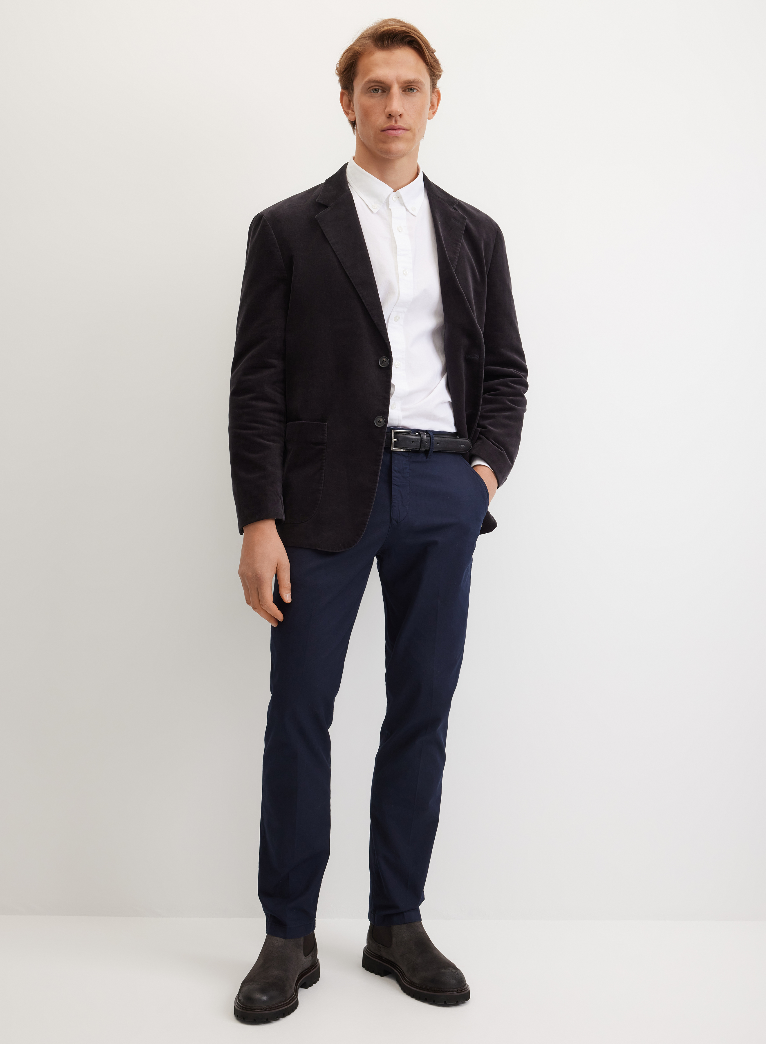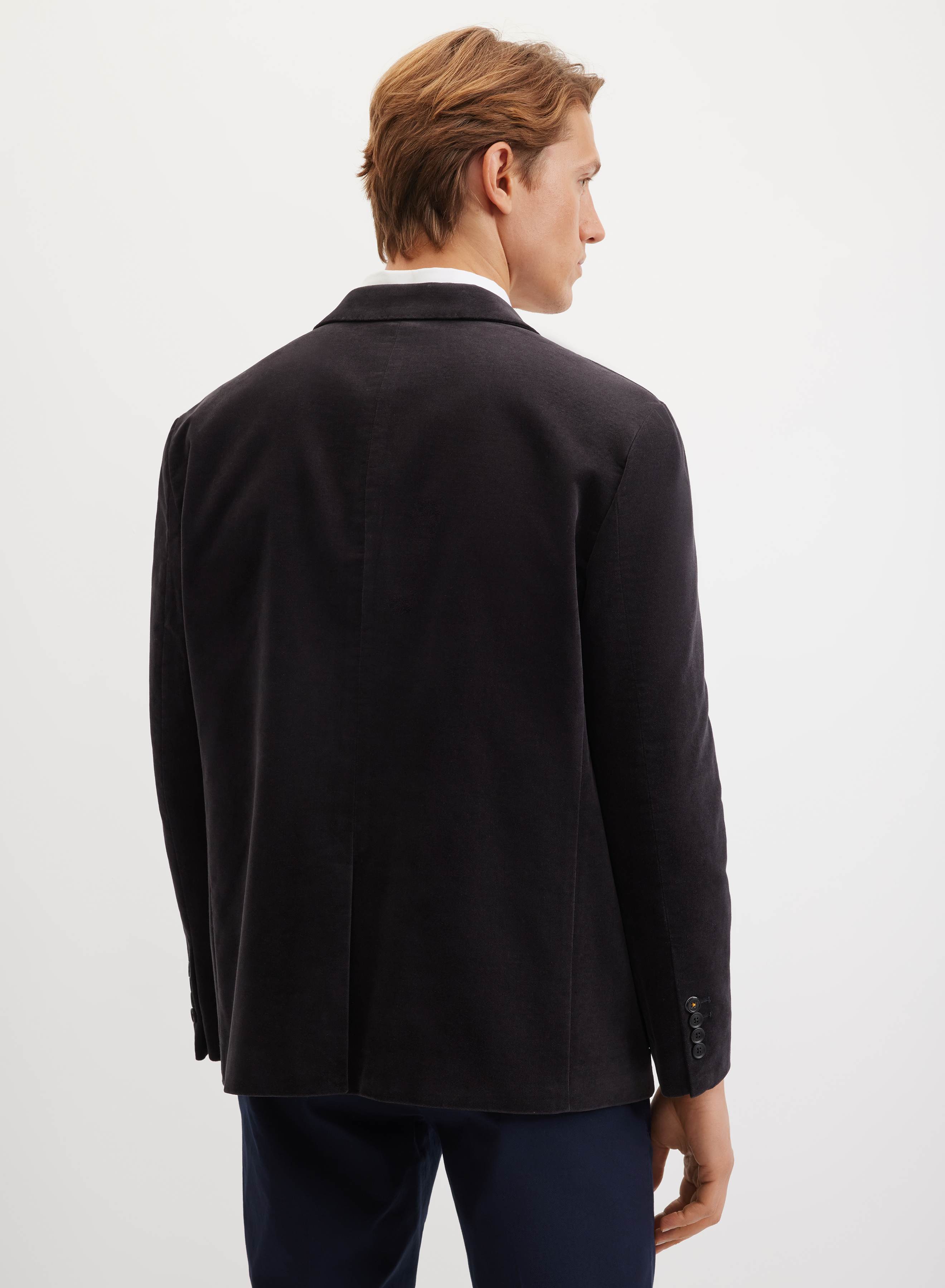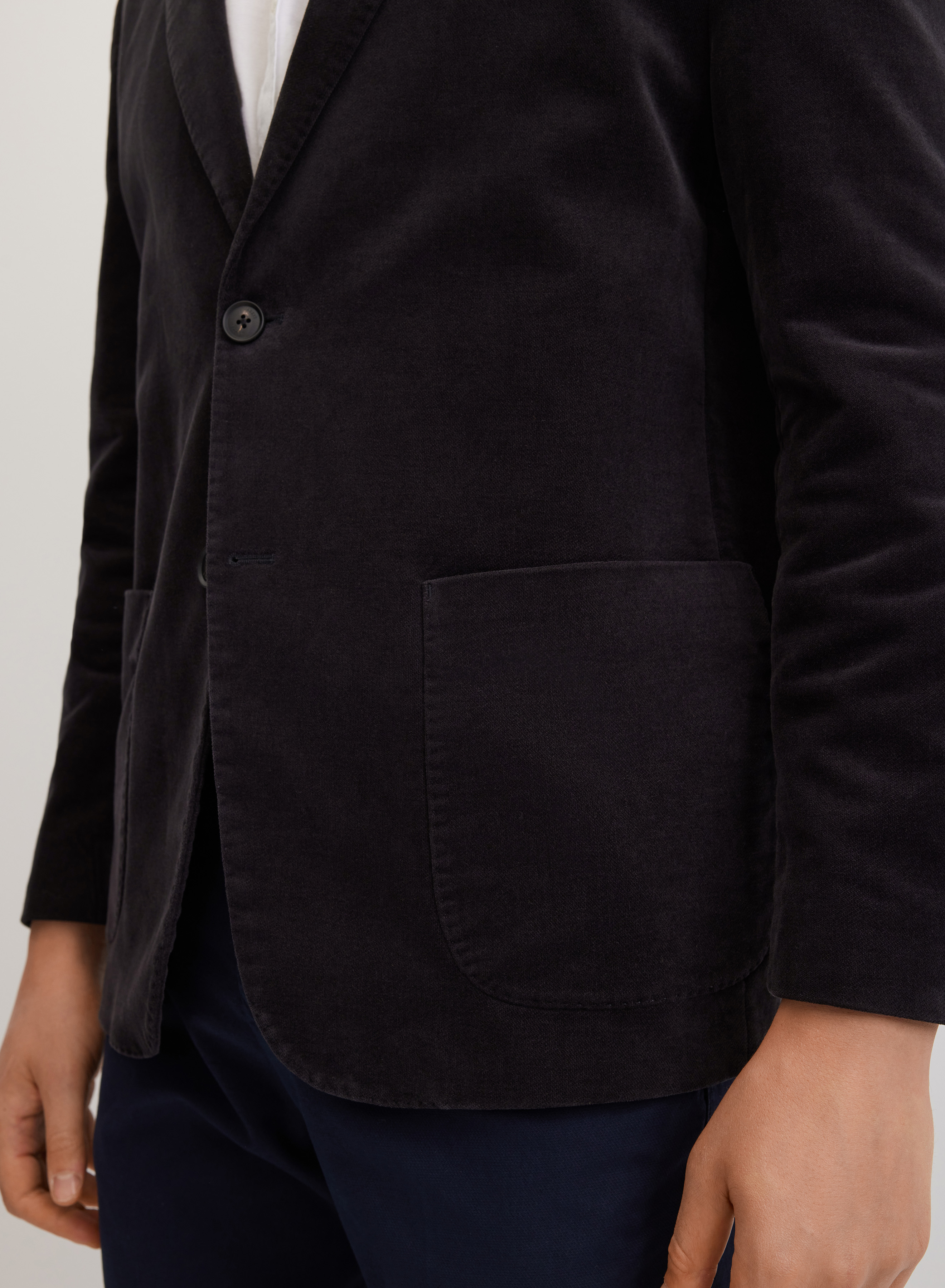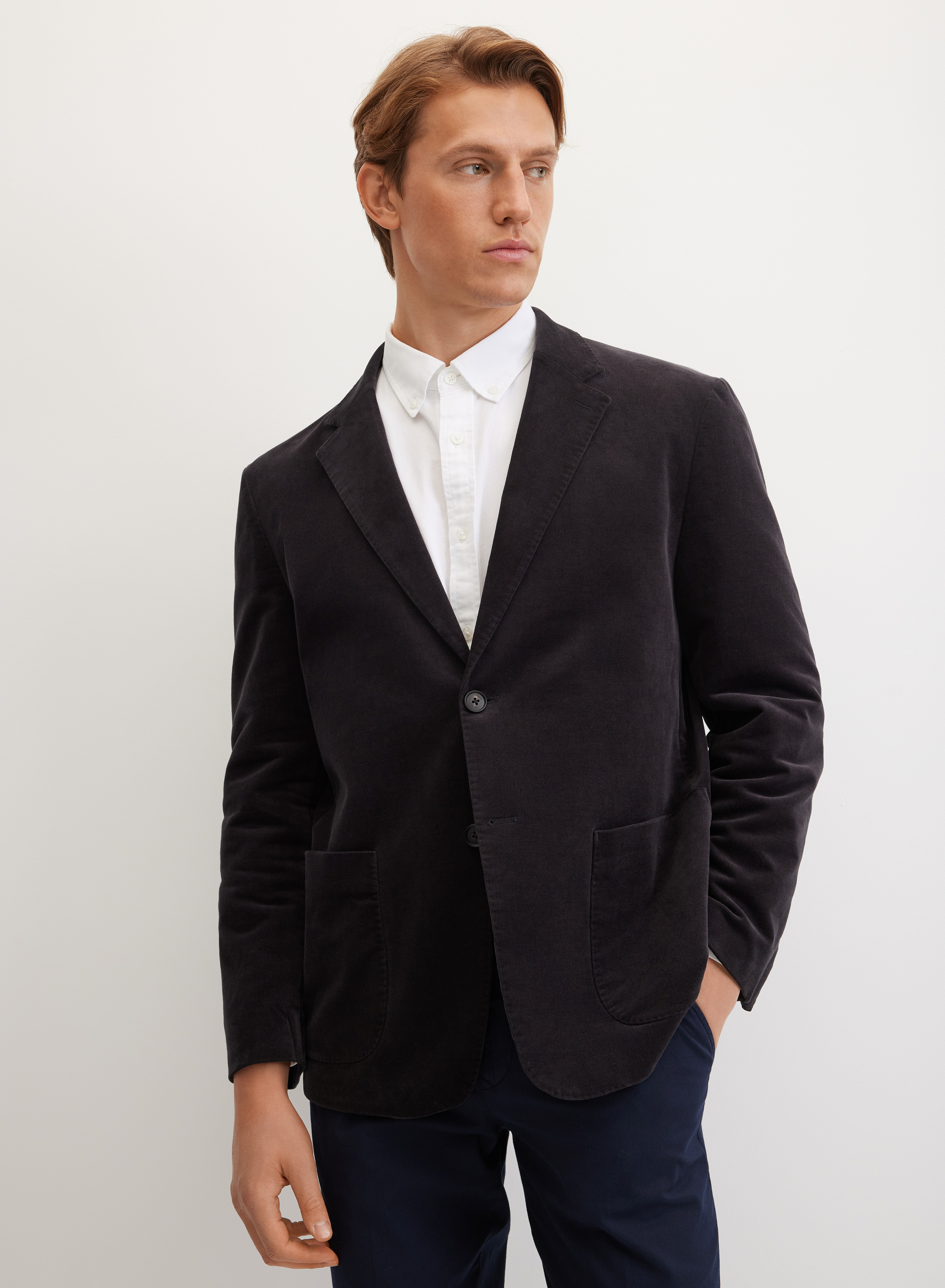 Однобортный пиджак на подкладке с фактурой замши и накладными карманами