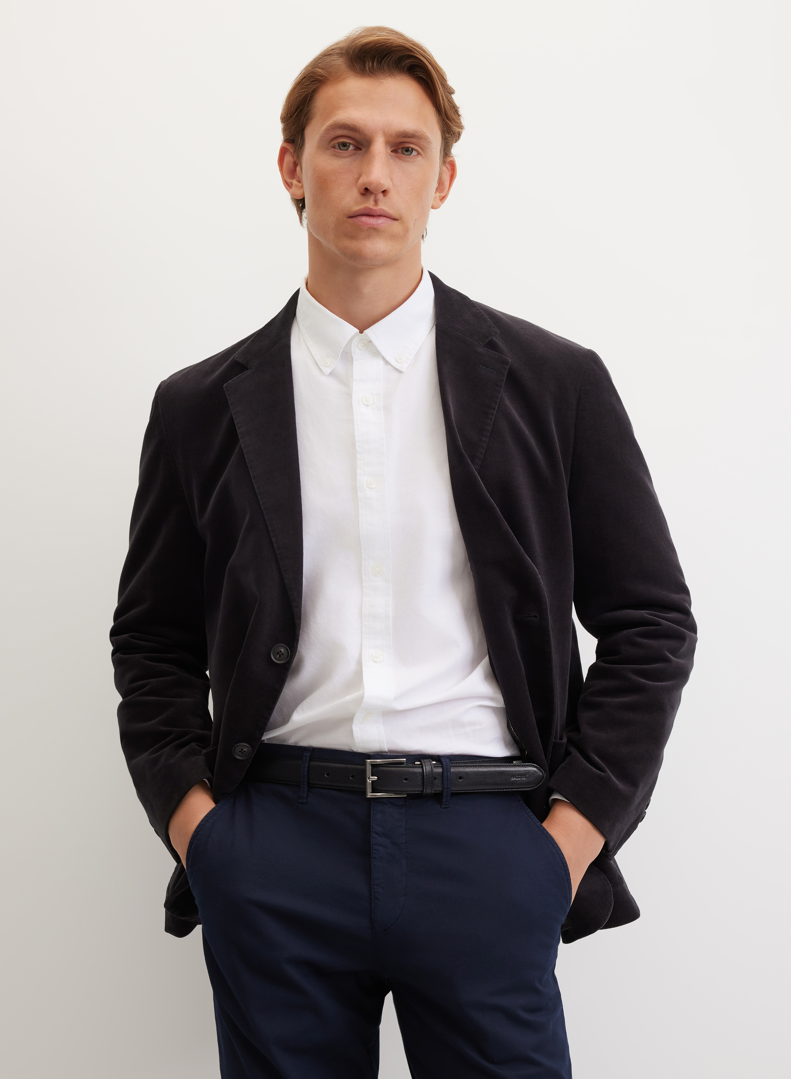 Пиджак легко интегрируется в осенне-зимний гардероб, составив интересные комплекты с классическими брюками из вельвета, чиносами и джинсами. Образ можно дополнить жилетом, тонкой водолазкой, хлопковой рубашкой, свитером или простой плотной футболкой.