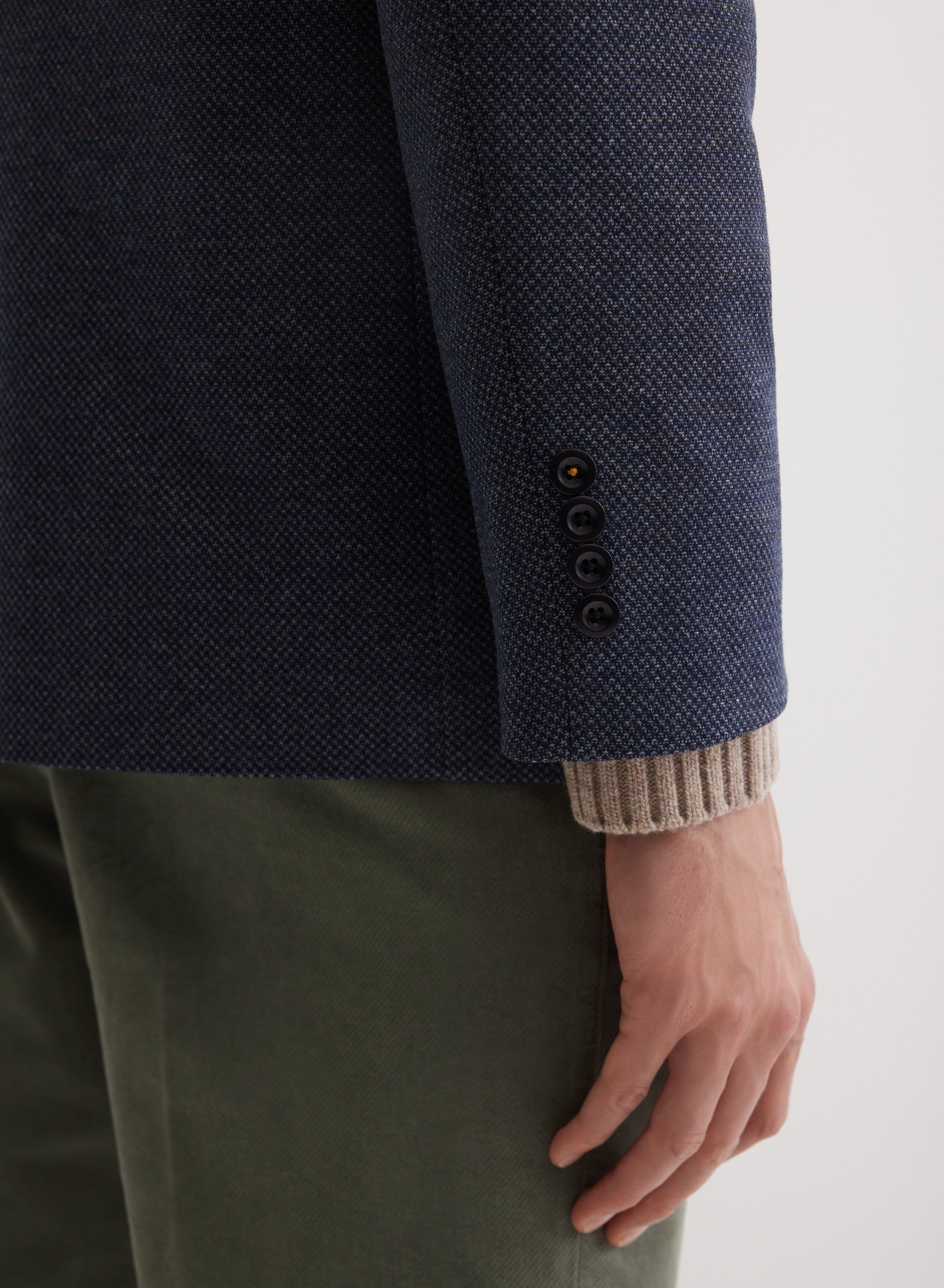 Пиджак из костюмной ткани с плотным переплетением хорошо сохраняет форму и отличается долговечностью. Подкладка из приятного на ощупь скользящего материала комфортна в ношении.