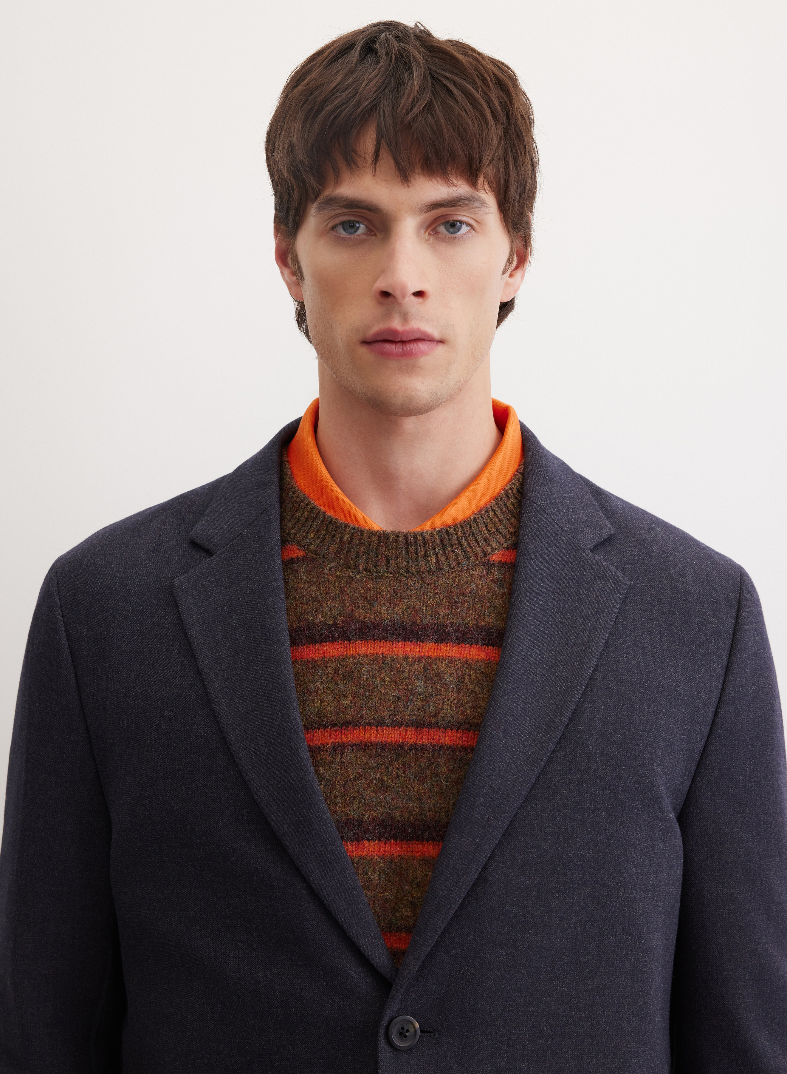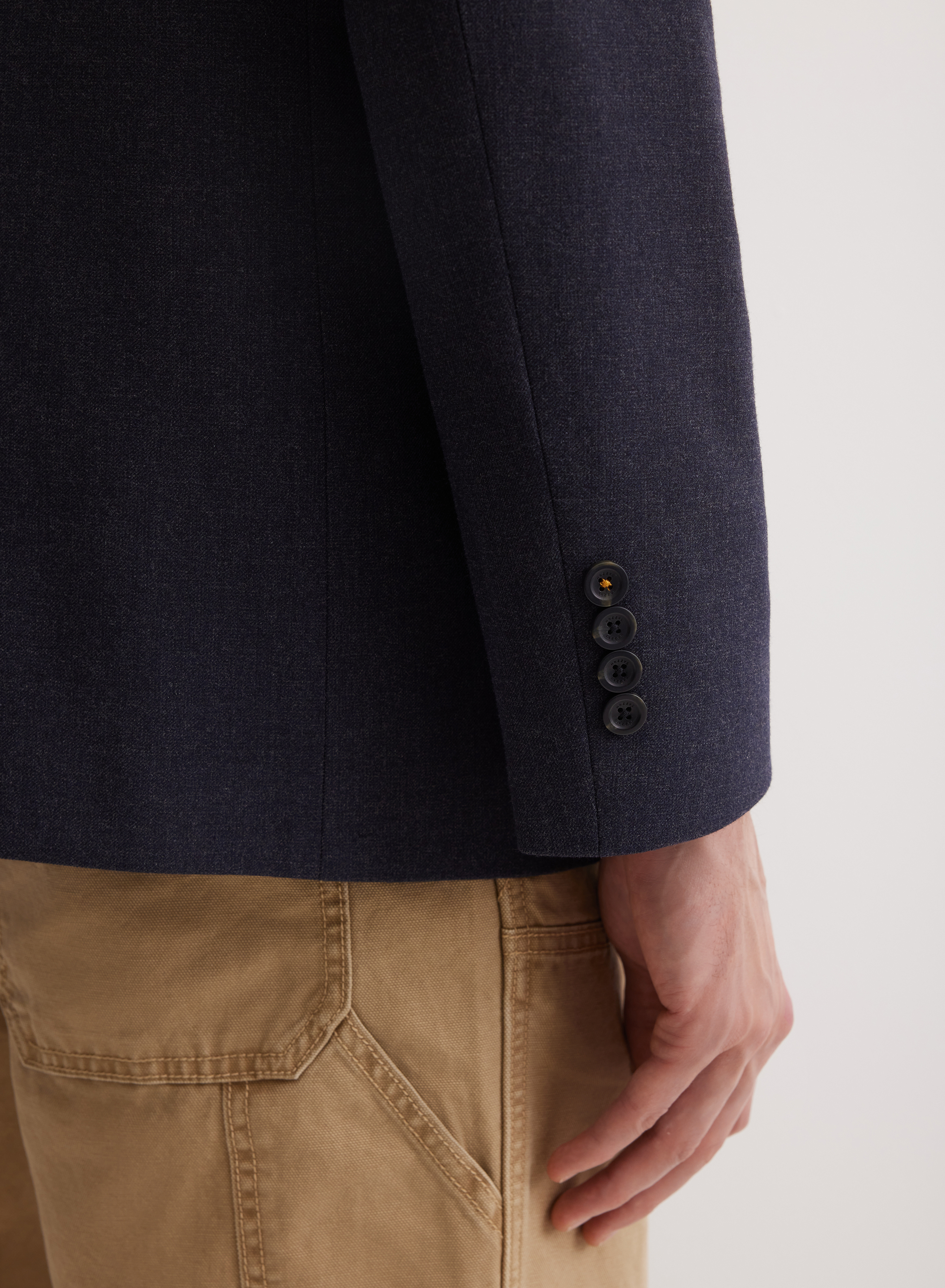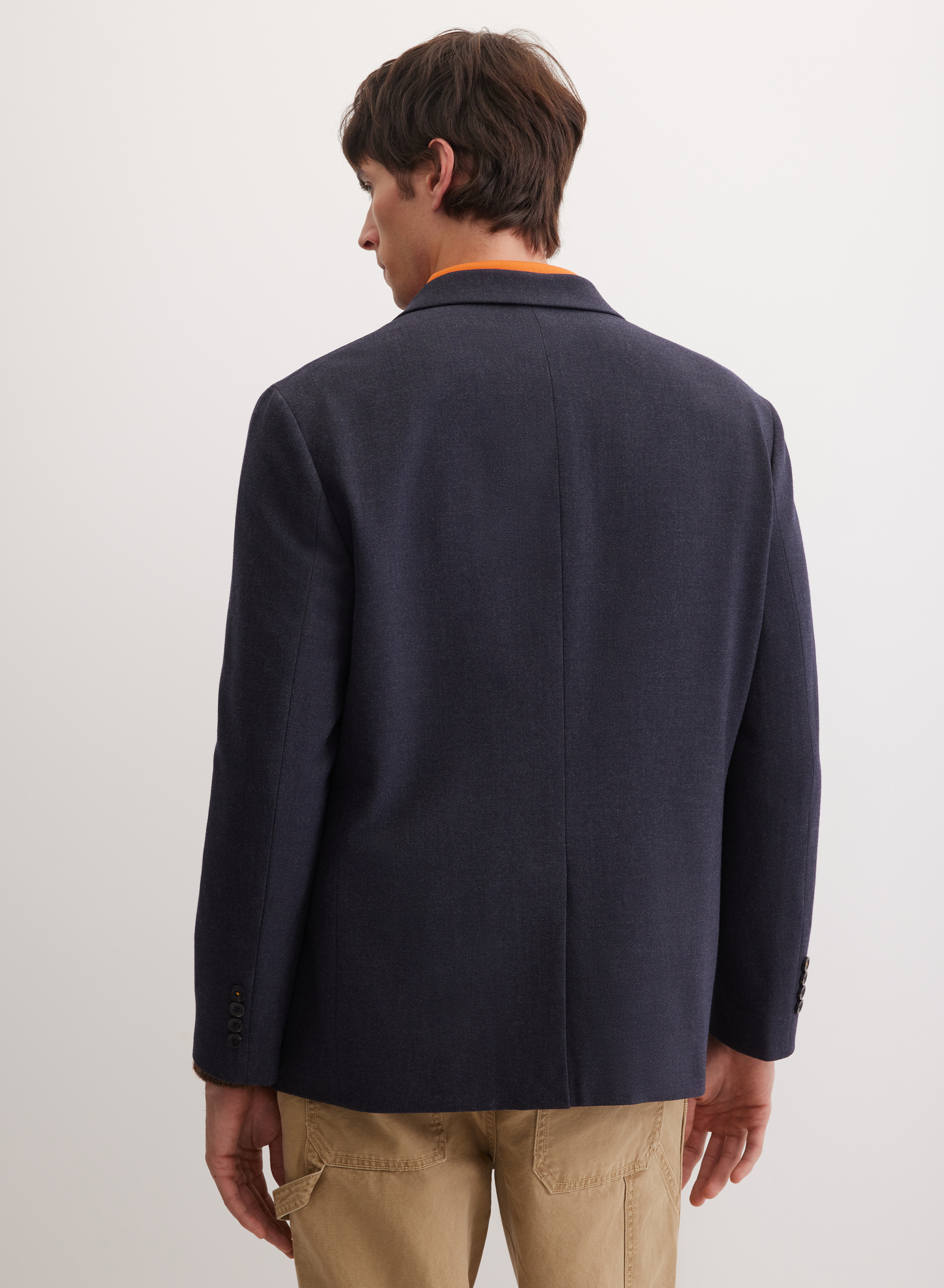 Однобортный пиджак прямого силуэта с классическими деталями кроя. Модель имеет центральную застежку на две пуговицы и два передних накладных кармана. Слегка спущенная линия плеч обеспечивает комфортную посадку. Удобство при движении добавляет шлица в среднем шве.