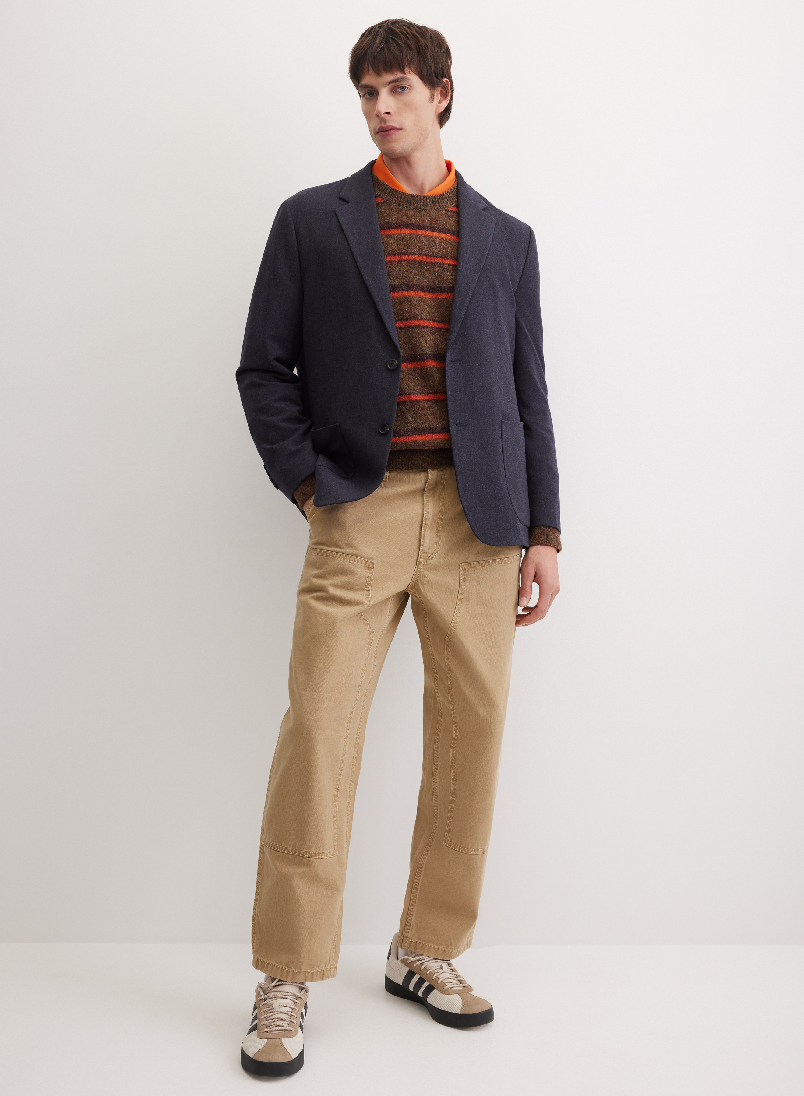 Пиджак гармонично сочетается с классическими брюками и джинсами, а также комбинируется с рубашками и лонгсливами. Модель подходит для создания разных образов — от офисного до повседневного.