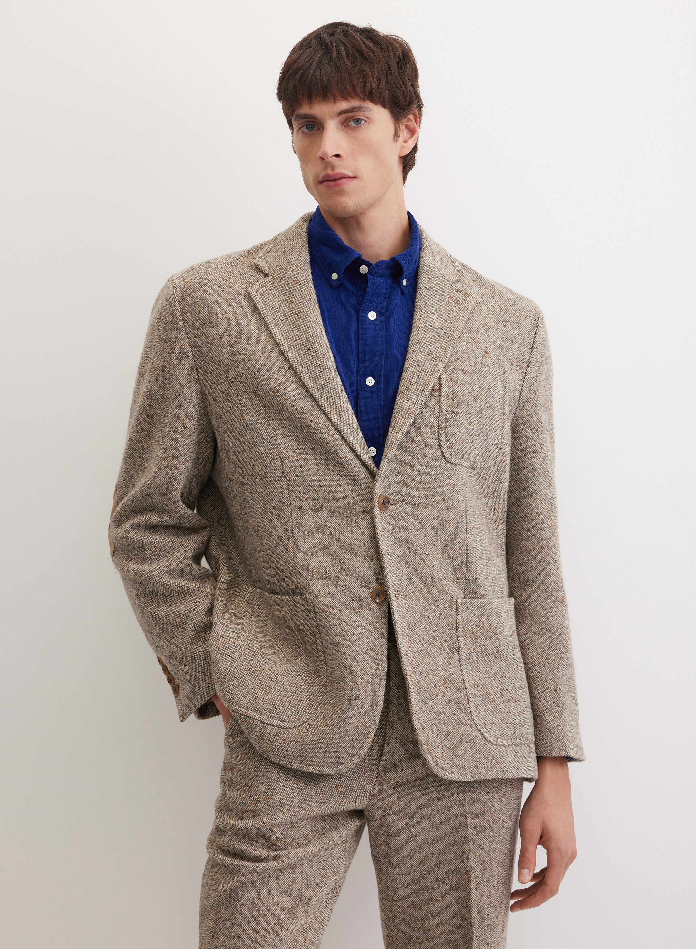 Пиджак с накладными карманами и контрастной подкладкой