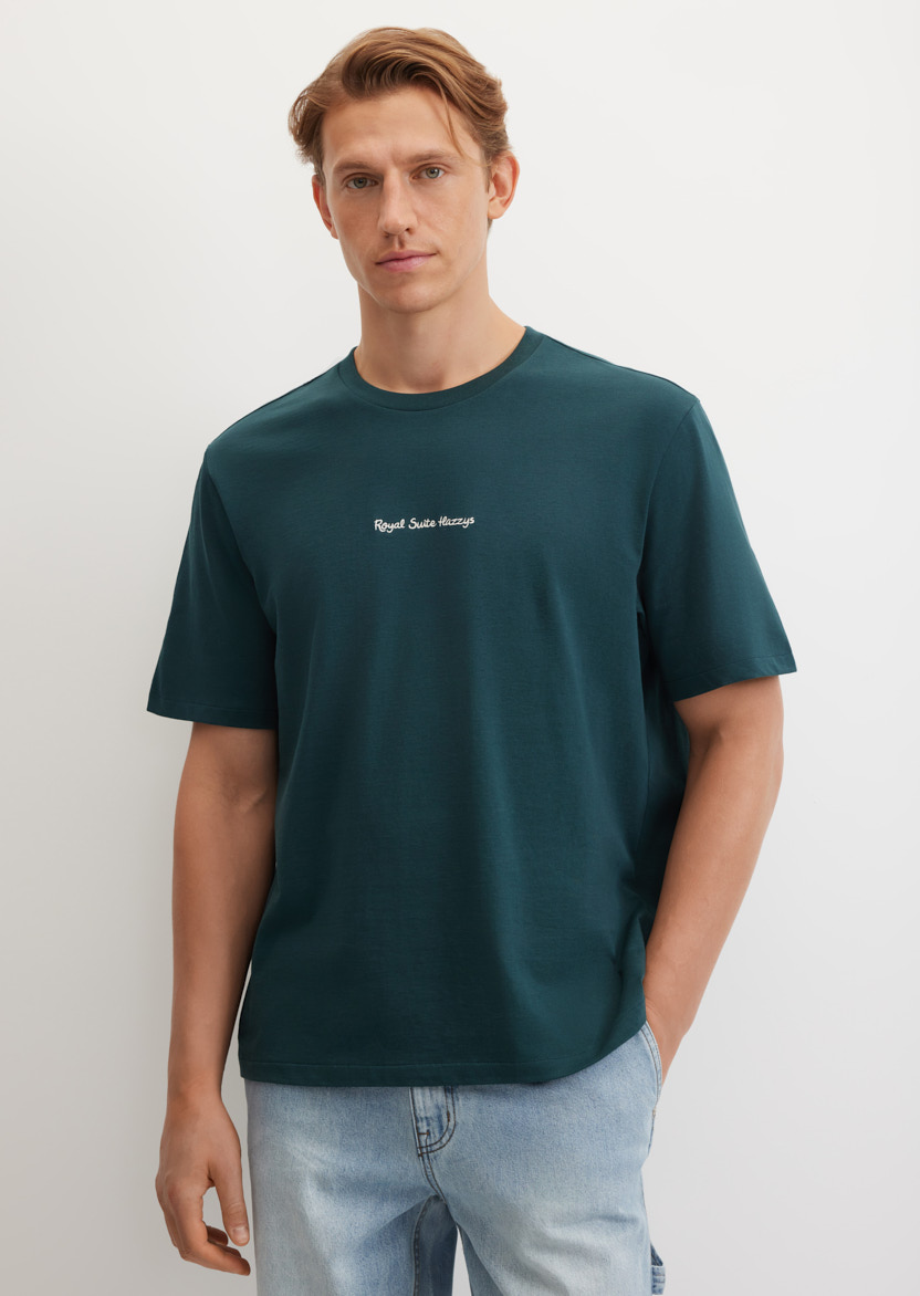 Синяя футболка с принтом на спине