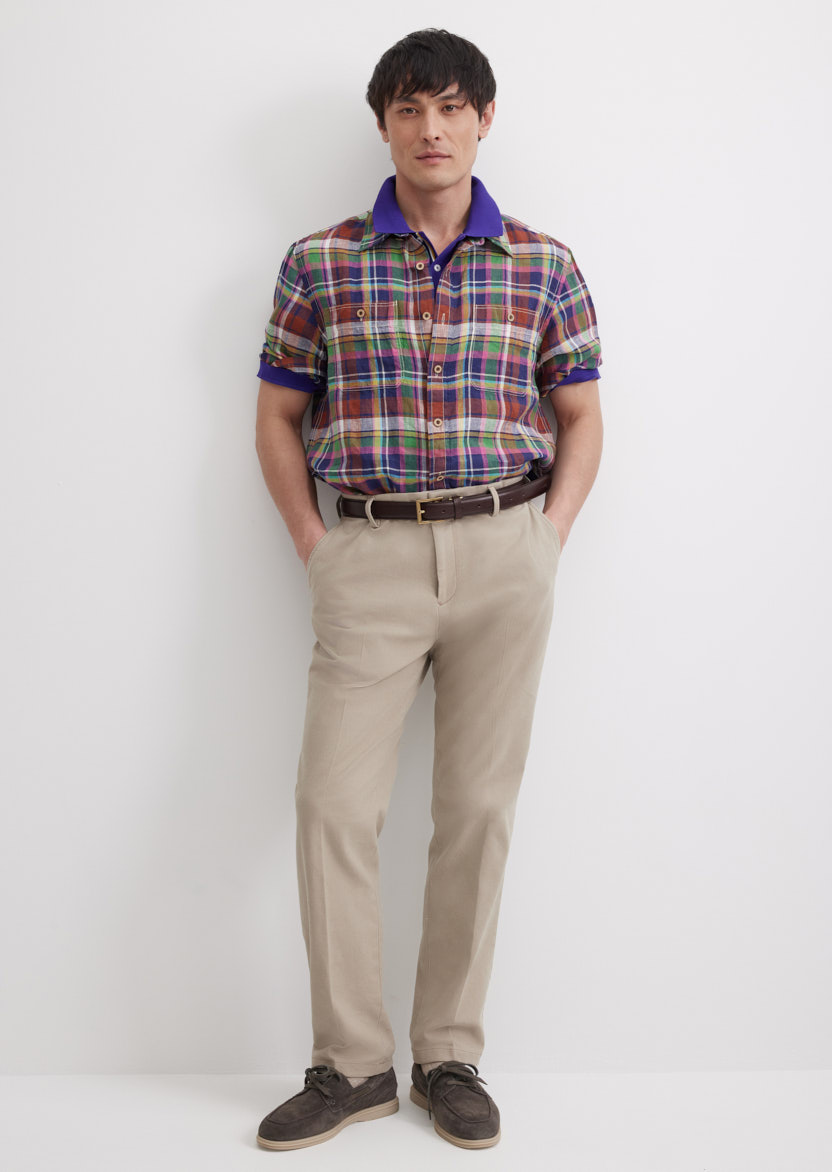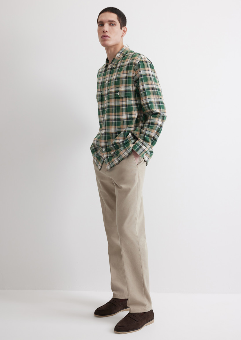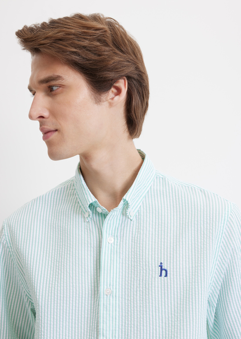 Классическая светло-зеленая рубашка с тонкими контрастными полосками