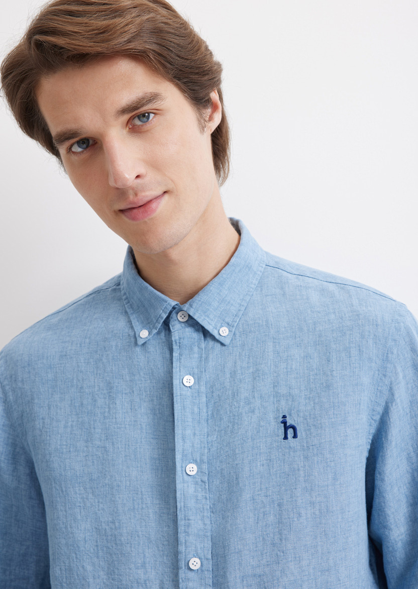 Рубашка с длинным рукавом и аккуратной вышивкой в области груди