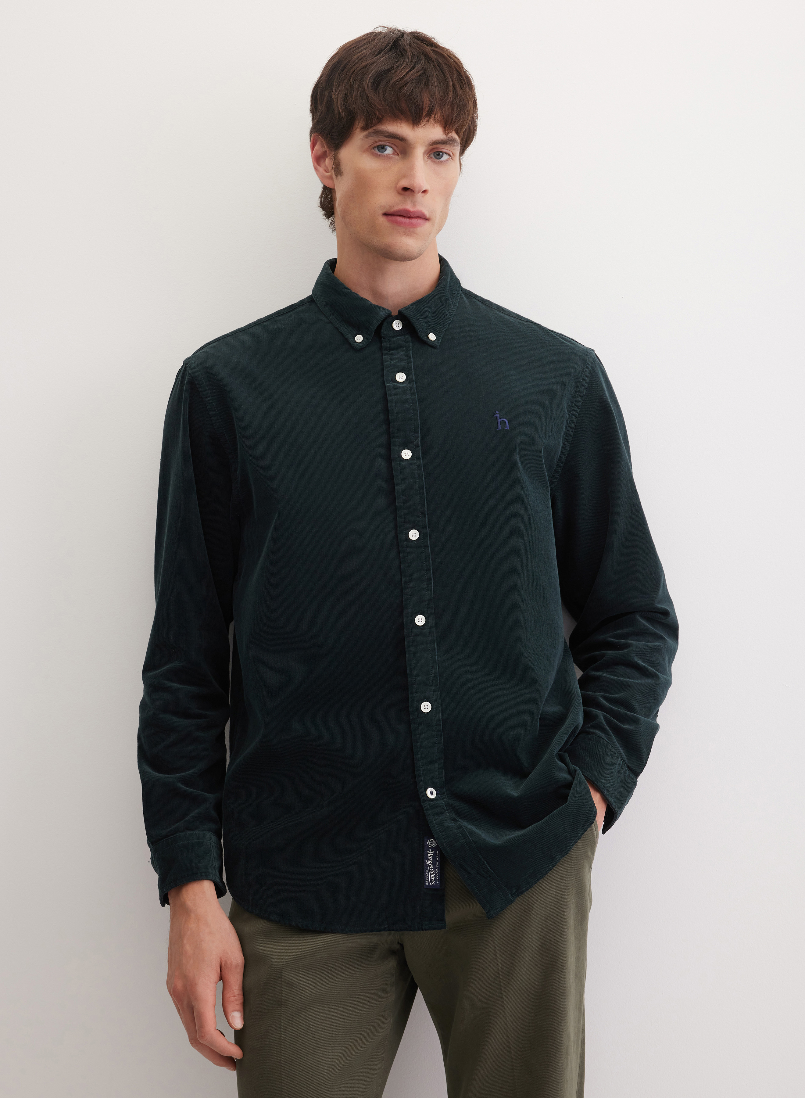Хлопковая рубашка гарантирует высокий уровень комфорта, воздухопроницаемости и приятных тактильных ощущений в течение всего дня. Манжеты оформлены контрастной строчкой, декоративными миниатюрными пуговицами и фигурными разрезами.