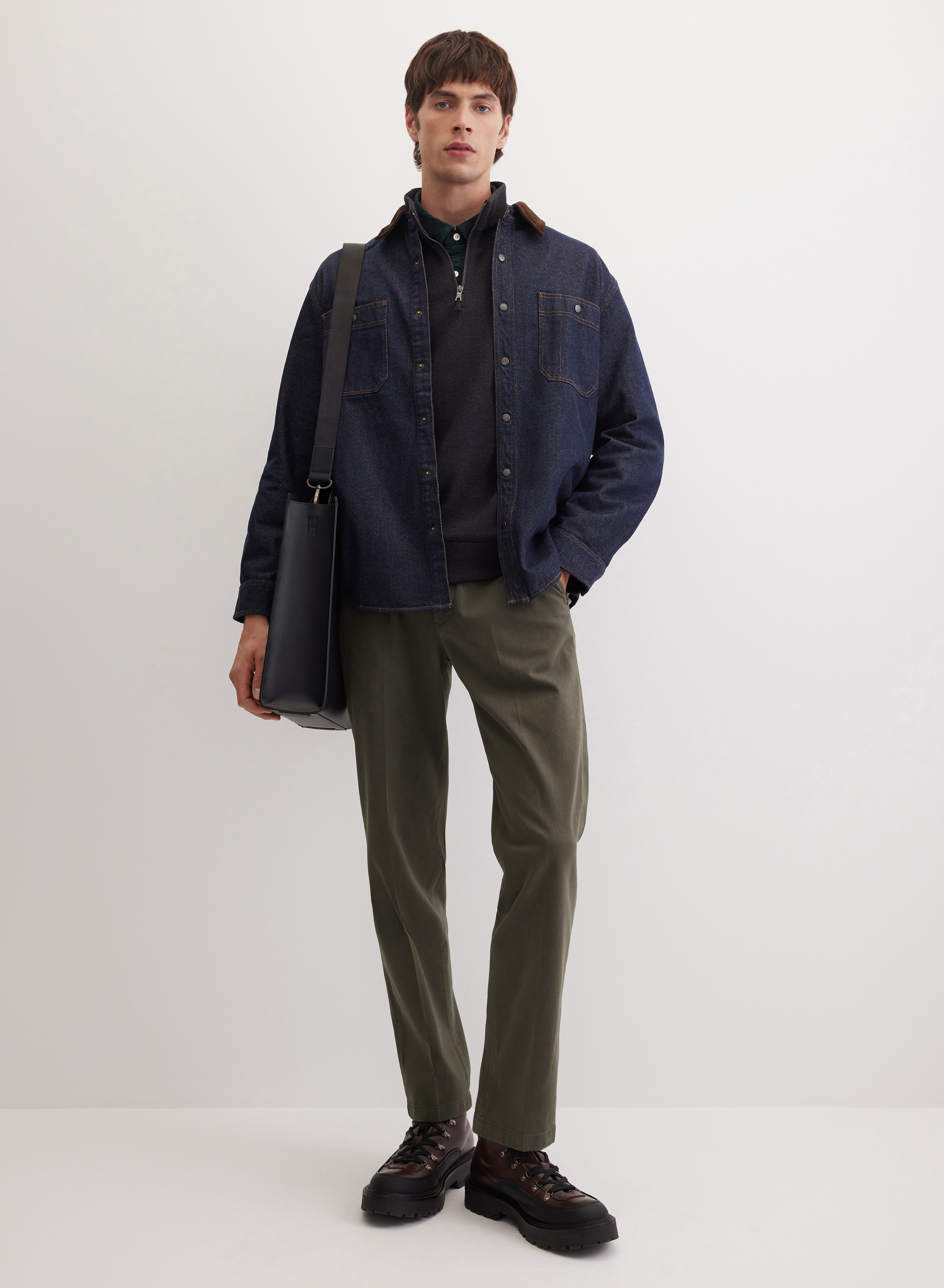 Модель создана из мягкого хлопка с легкой текстурой. Эффект «под деним» достигается за счет особого переплетения нитей и тонировки. Ткань надолго сохраняет аккуратный внешний вид и обладает отличной воздухопроницаемостью.