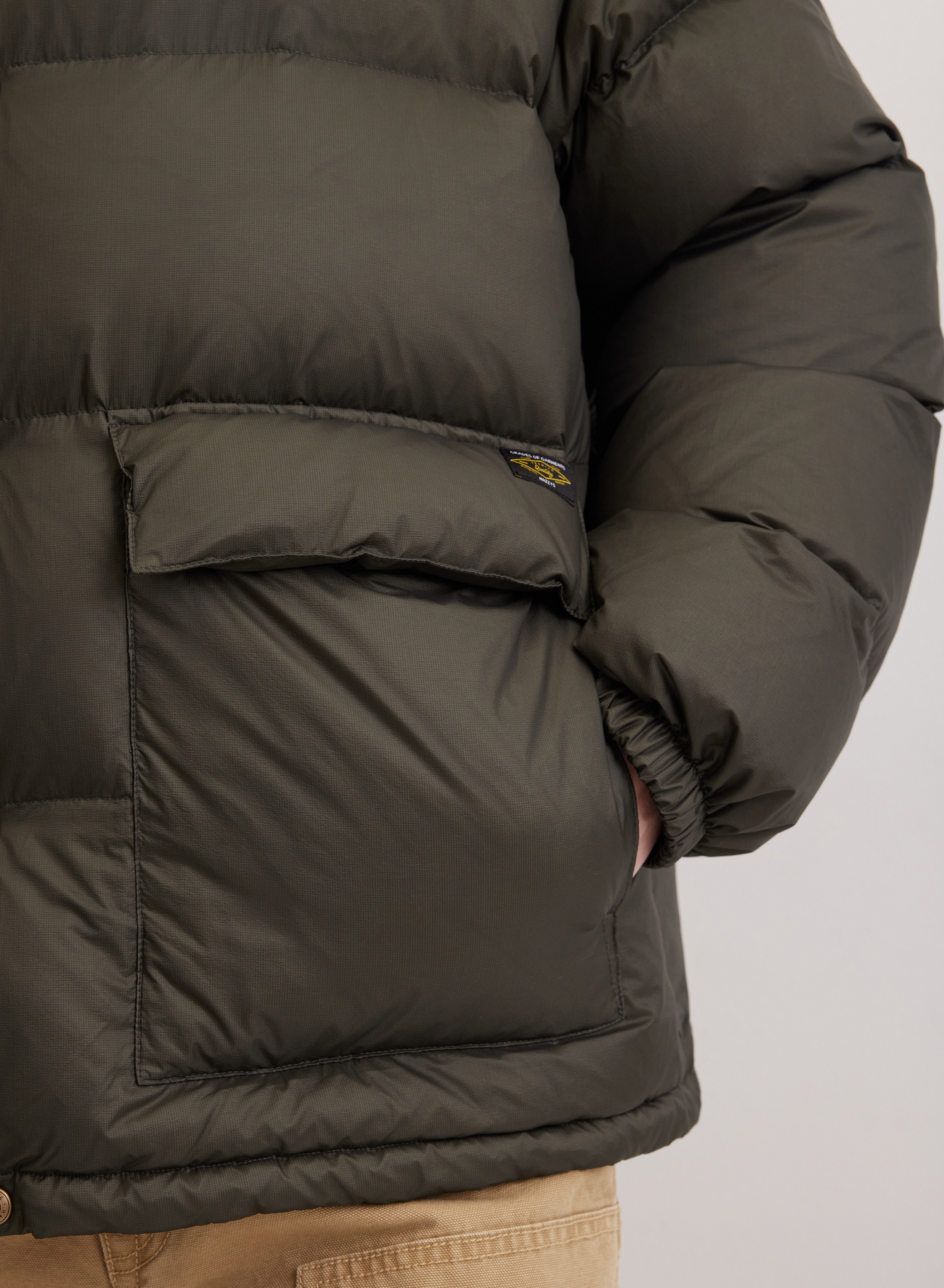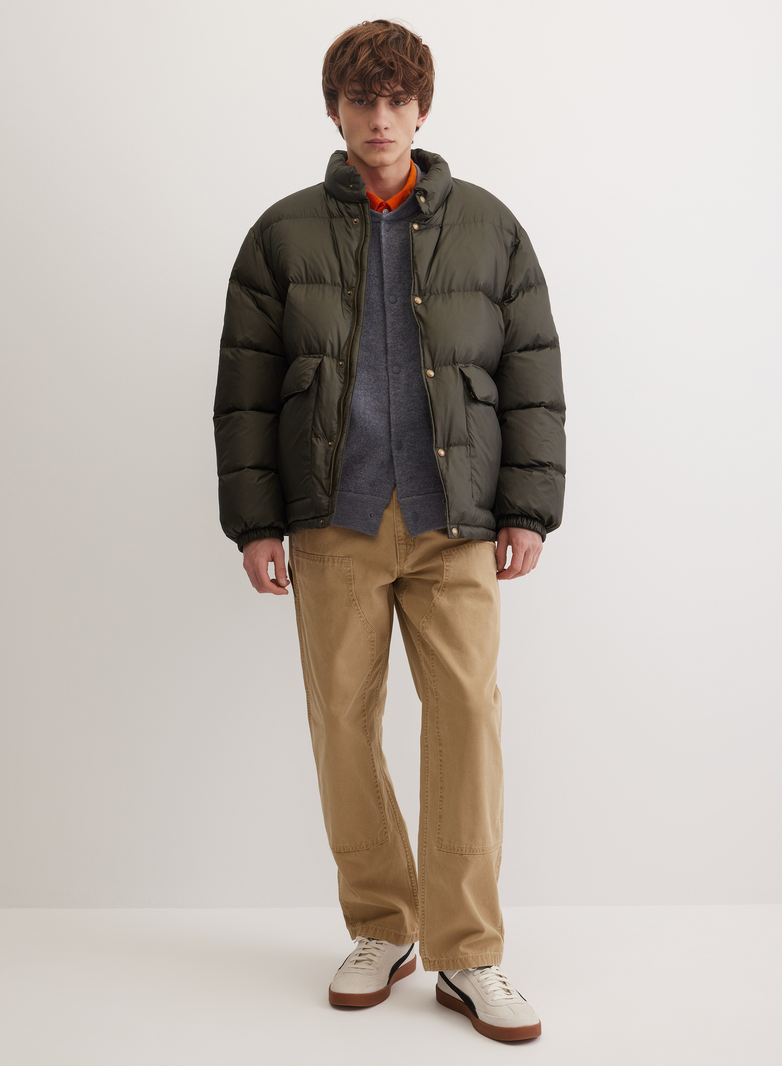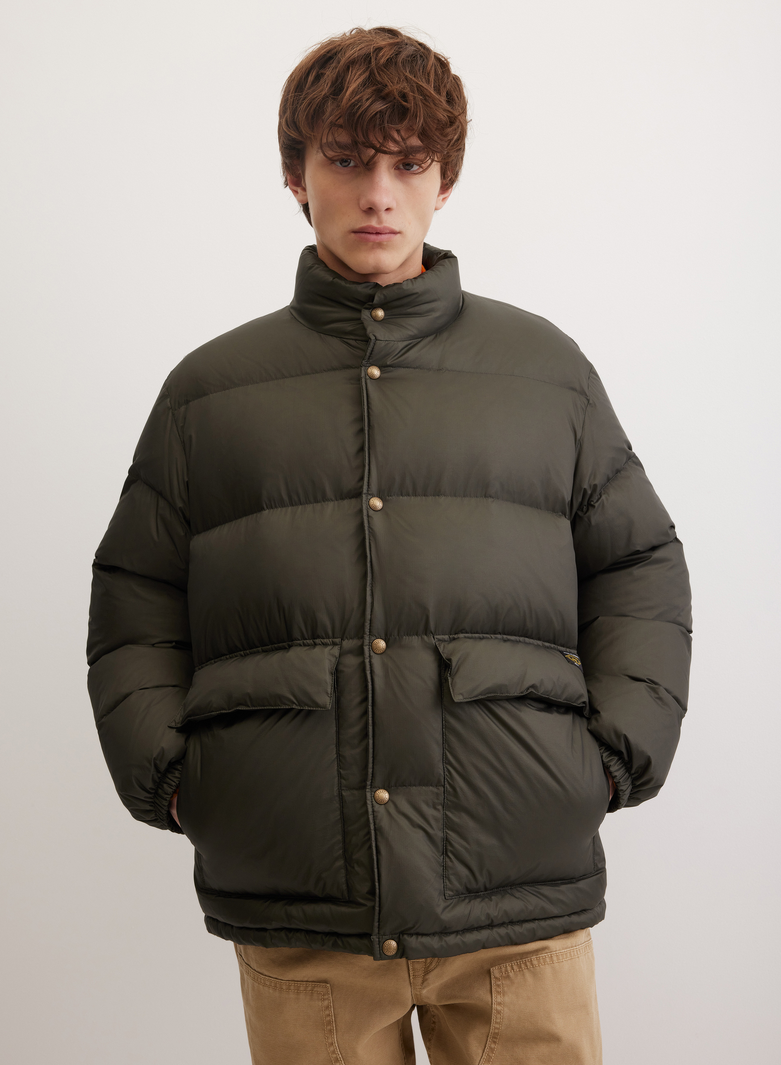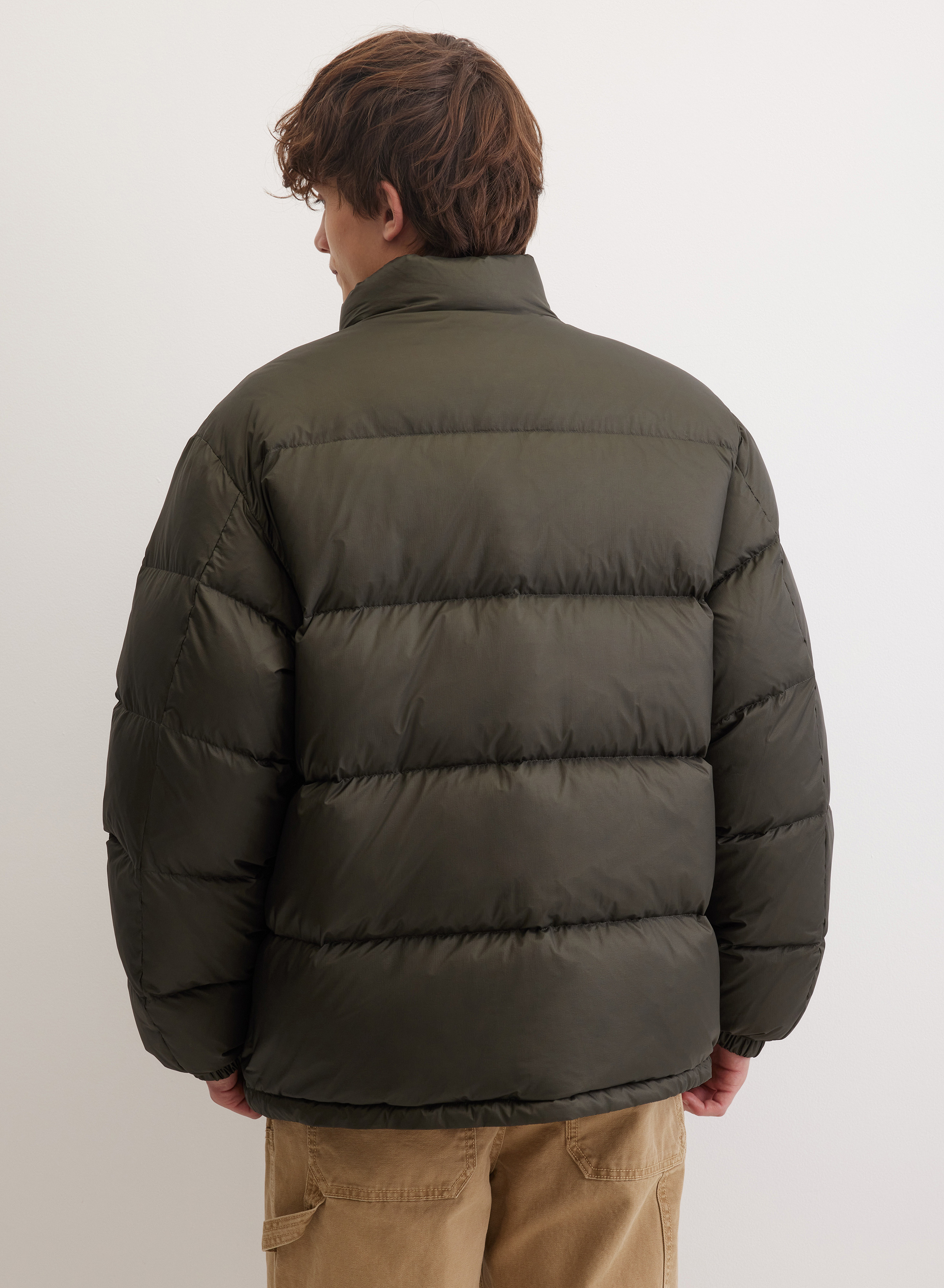 Легкий стеганый пуховик с воротником-стойкой эффективно защищает от ветра. Модель с застежкой на молнии дополняют кнопки для плотной фиксации. Два накладных кармана обеспечивают функциональность и практичность. Прямой силуэт с равномерной стежкой и манжетами на резинке надежно удерживает утеплитель внутри.