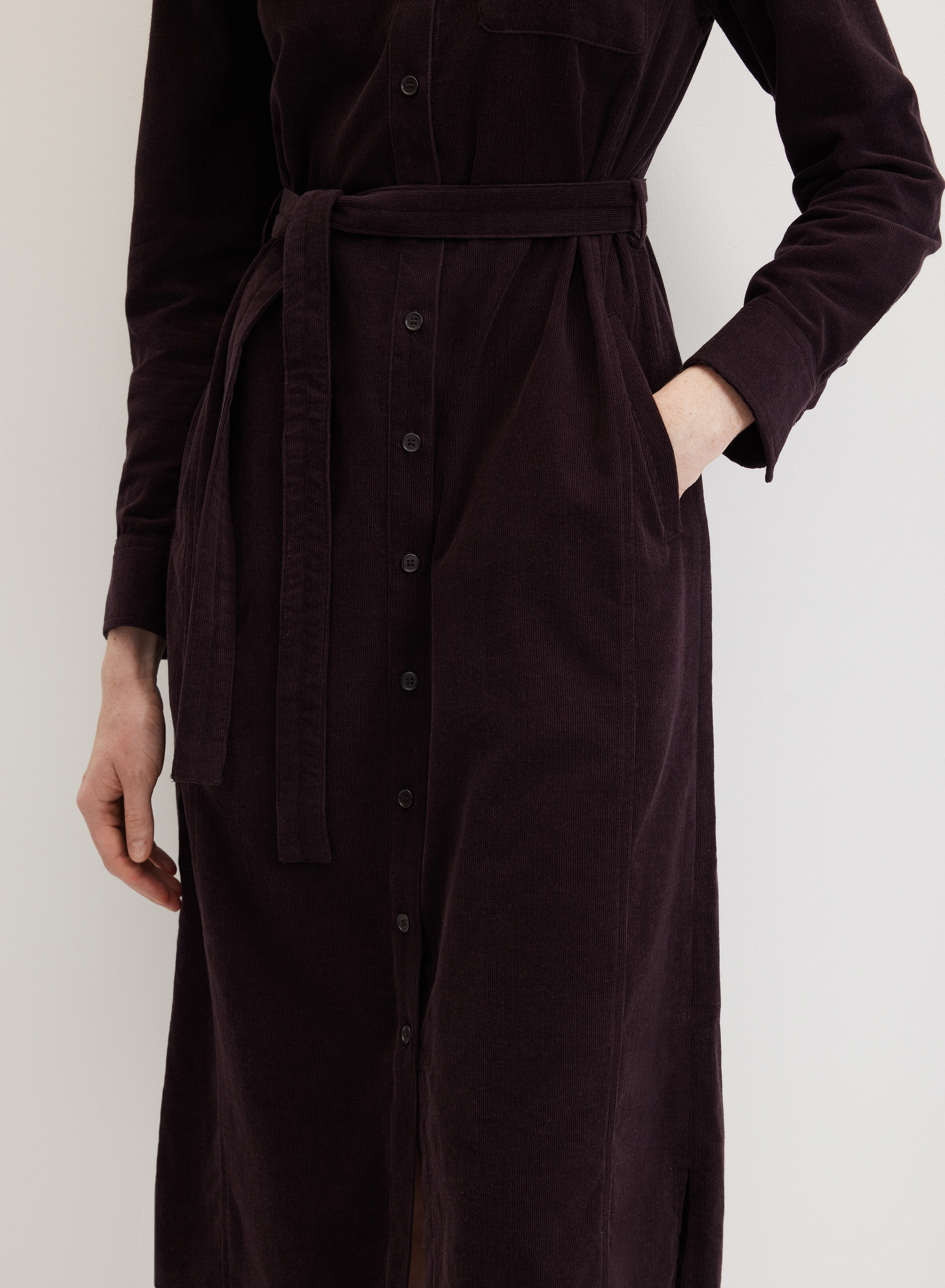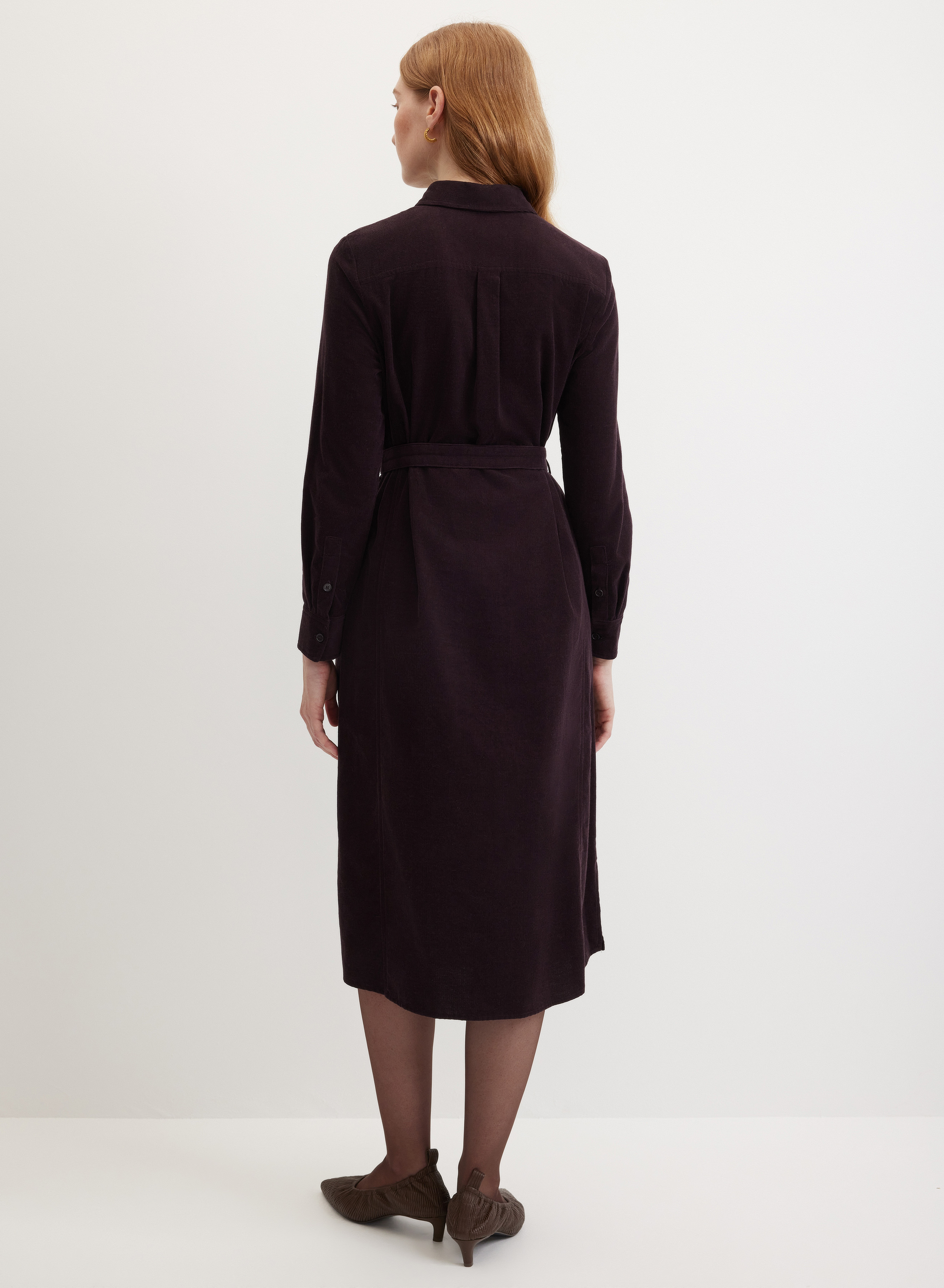 Теплое платье-рубашка длины миди с поясом