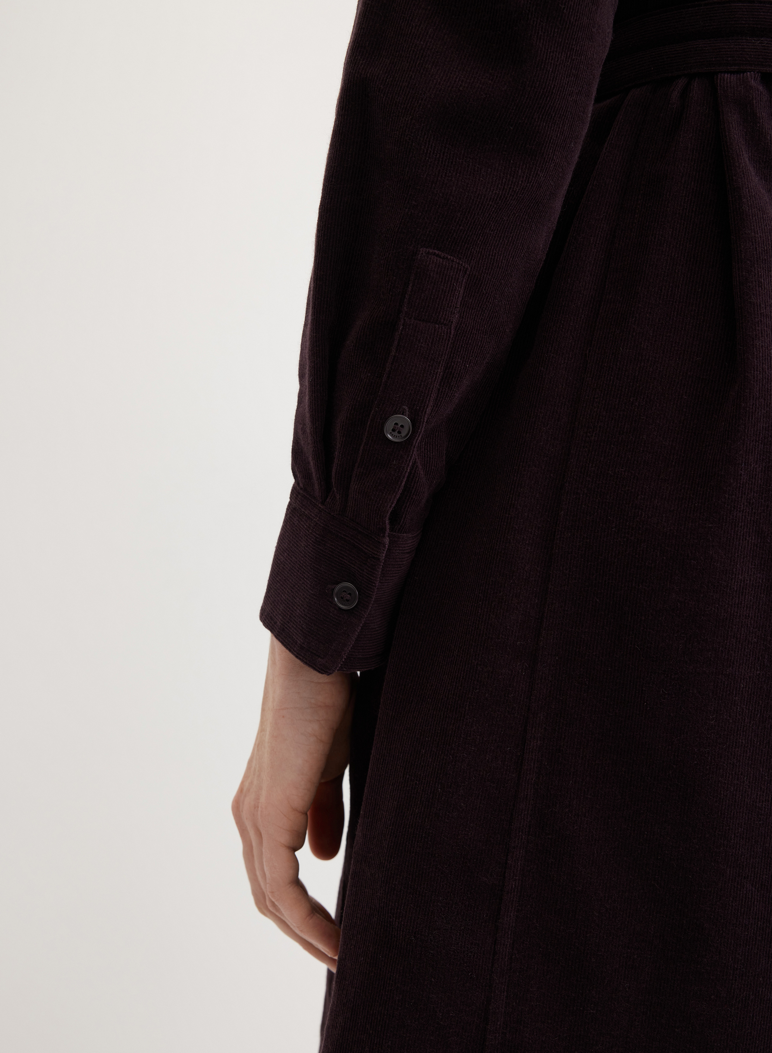 Модель выполнена из плотной хлопковой костюмно-плательной ткани с бархатистой фактурой. Добавление кашемира и шерсти придает материалу особую нежность и согревающие свойства, обеспечивая комфорт и тепло в прохладные дни.