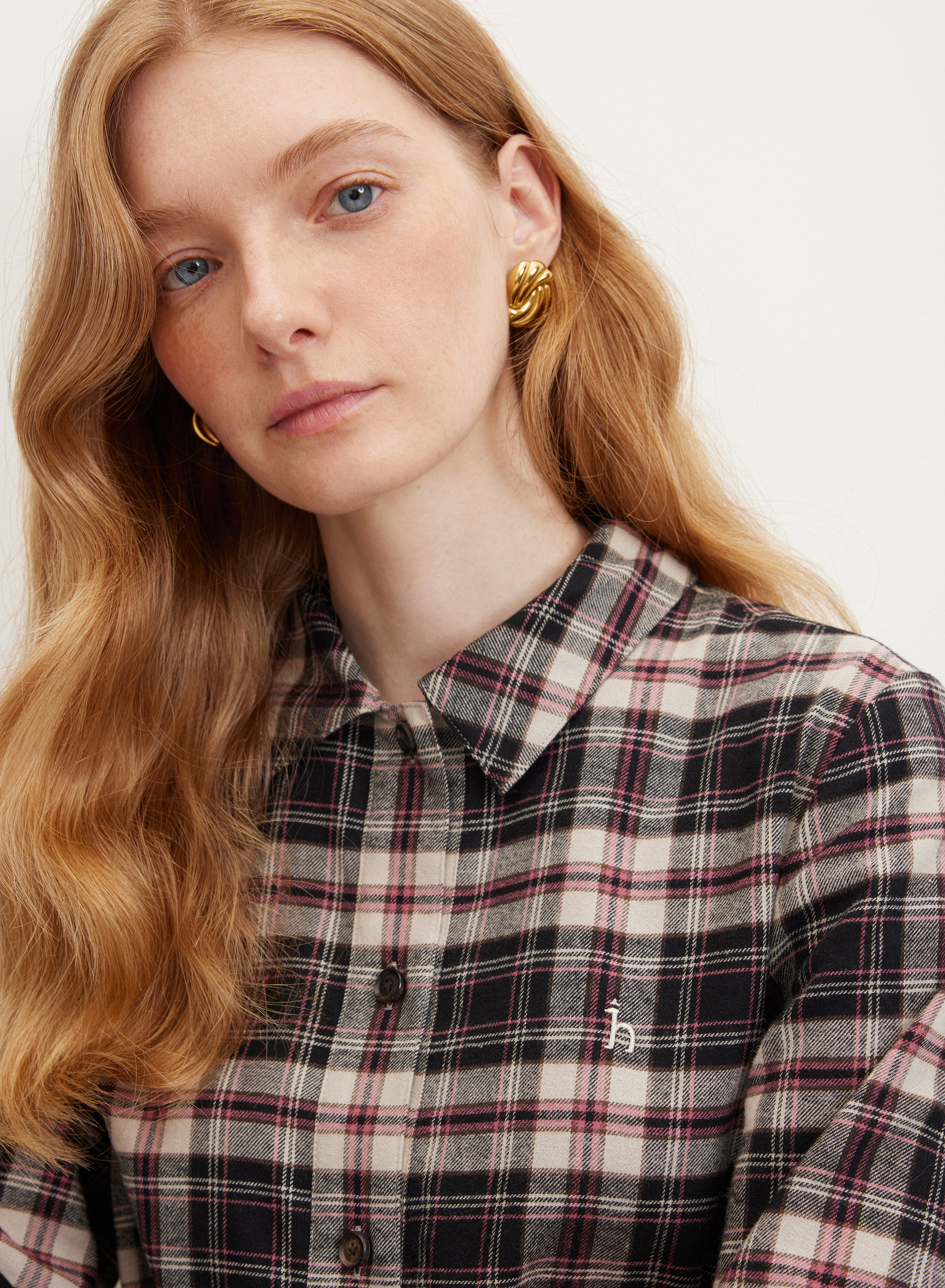 Модель выполнена из мягкого хлопка средней плотности. Ткань отлично держит форму, позволяет коже дышать и сохраняет свежесть в течение всего дня. Оригинальный принт-клетка придает образу индивидуальности.