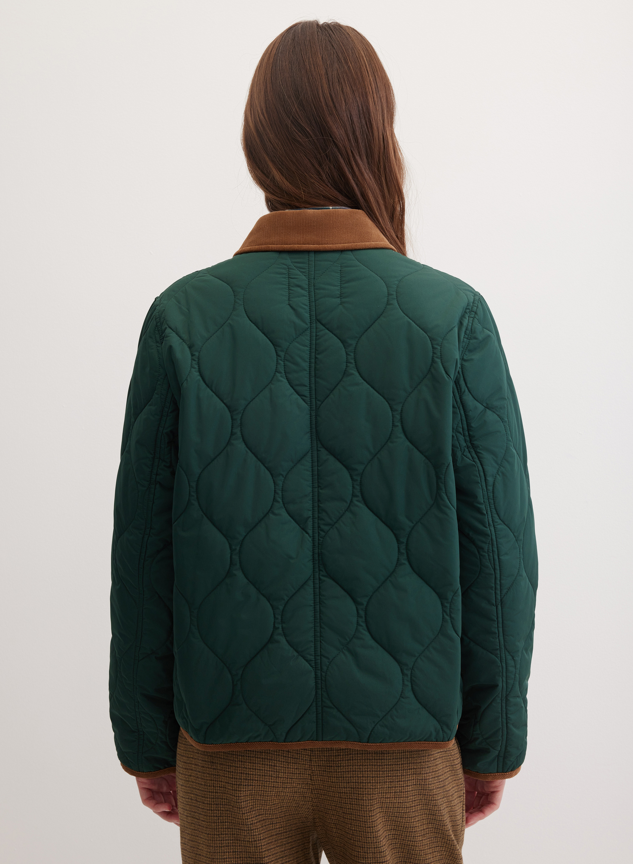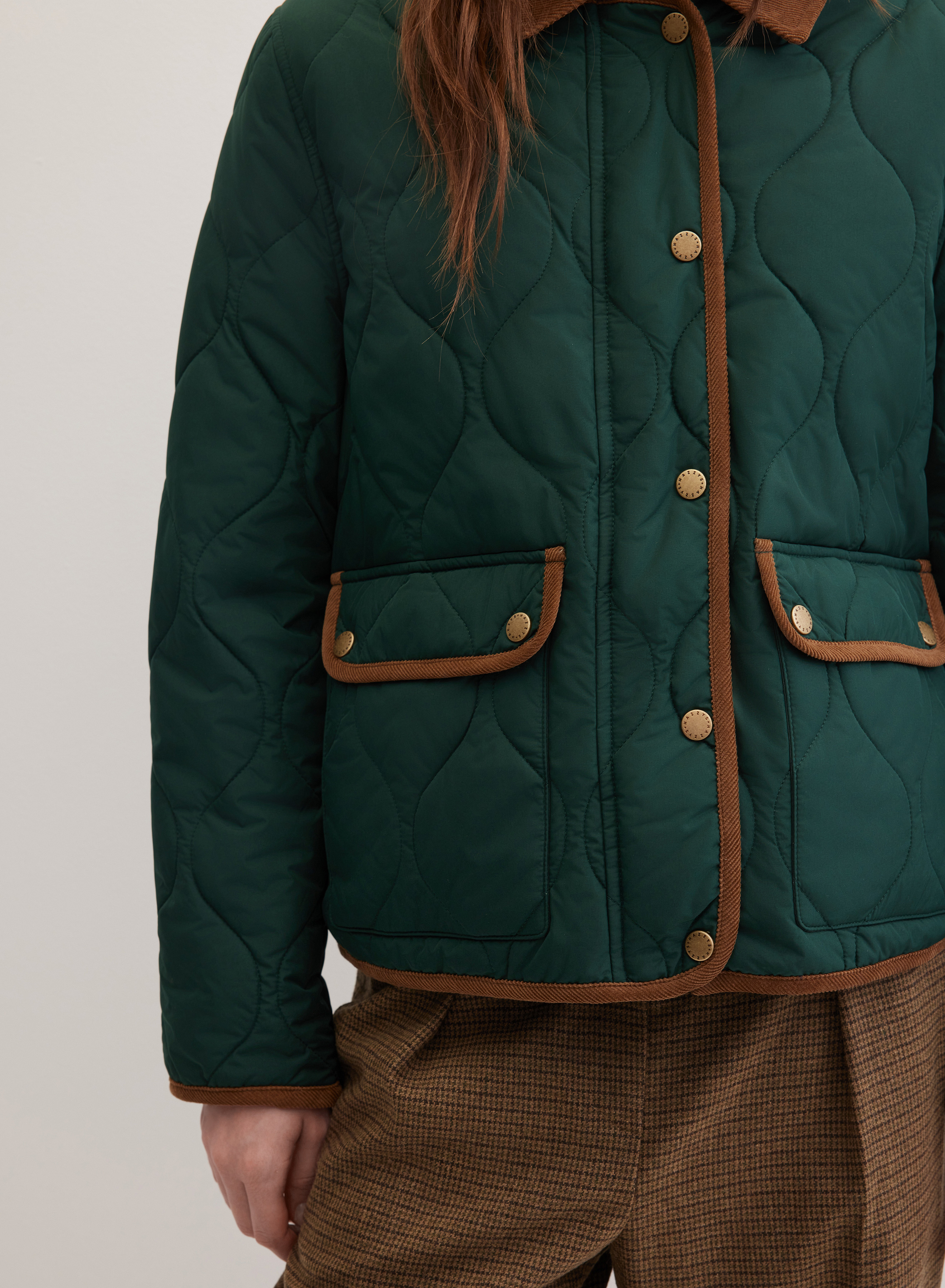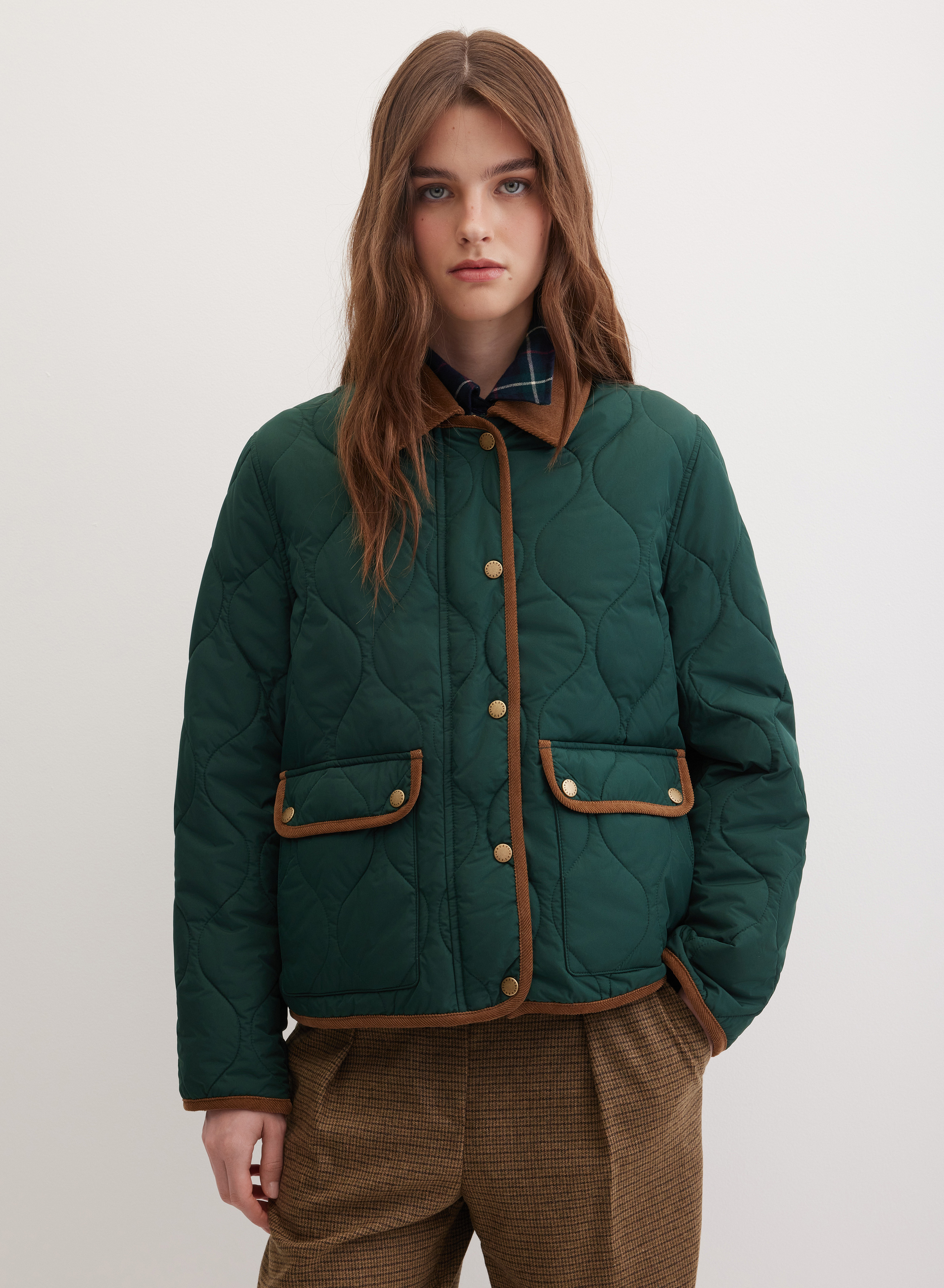 Модель выполнена из стеганой курточной ткани приятной шелковистой текстуры, которая хорошо защищает от осадков и сохраняет тепло в переменчивую погоду. Легкая контрастная подкладка улучшает комфорт при носке.